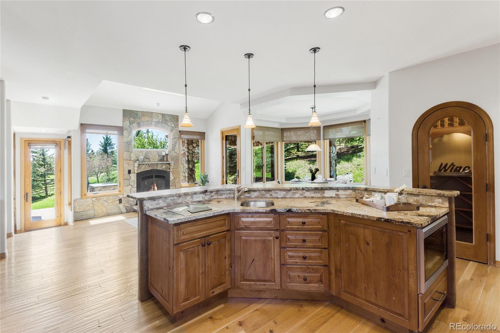Wow, what a location! Backs to acres of open space! Stunning 2 story home situated on 1.094 acres with high end finishes throughout. Gourmet kitchen with Alder cabinetry and Wolf range, Sub-Zero refrigerator and leathered granite. Copper farmhouse sink, steam oven, built in beverage and freezer drawers. Temperature controlled wine refrigerator! Hand Honed Hickory, wide plank flooring. All new Anderson windows! 3 bedrooms upstairs including primary bedroom with sitting room and 5 piece bathroom with heated floors. Main floor bedroom with attached full bathroom - perfect for guests. Unbelievable private location with multiple flagstone patio’s. Perfect outdoor entertaining including covered patio, built-in gas and wood BBQ, gas firepit and newer salt water hot tub, steps from the exercise room. Serene location and plenty of wildlife! New custom front door being installed. Walk-out basement including theater room with all electronics, bedroom/exercise room and attached 3/4 bathroom with steam shower. Enjoy acres of open space and trails just outside the back door. Willow Springs has hundreds of trails for residence use. Red Rocks Country Club with 18 hole golf course, restaurant, bar and pool. Amazing home!