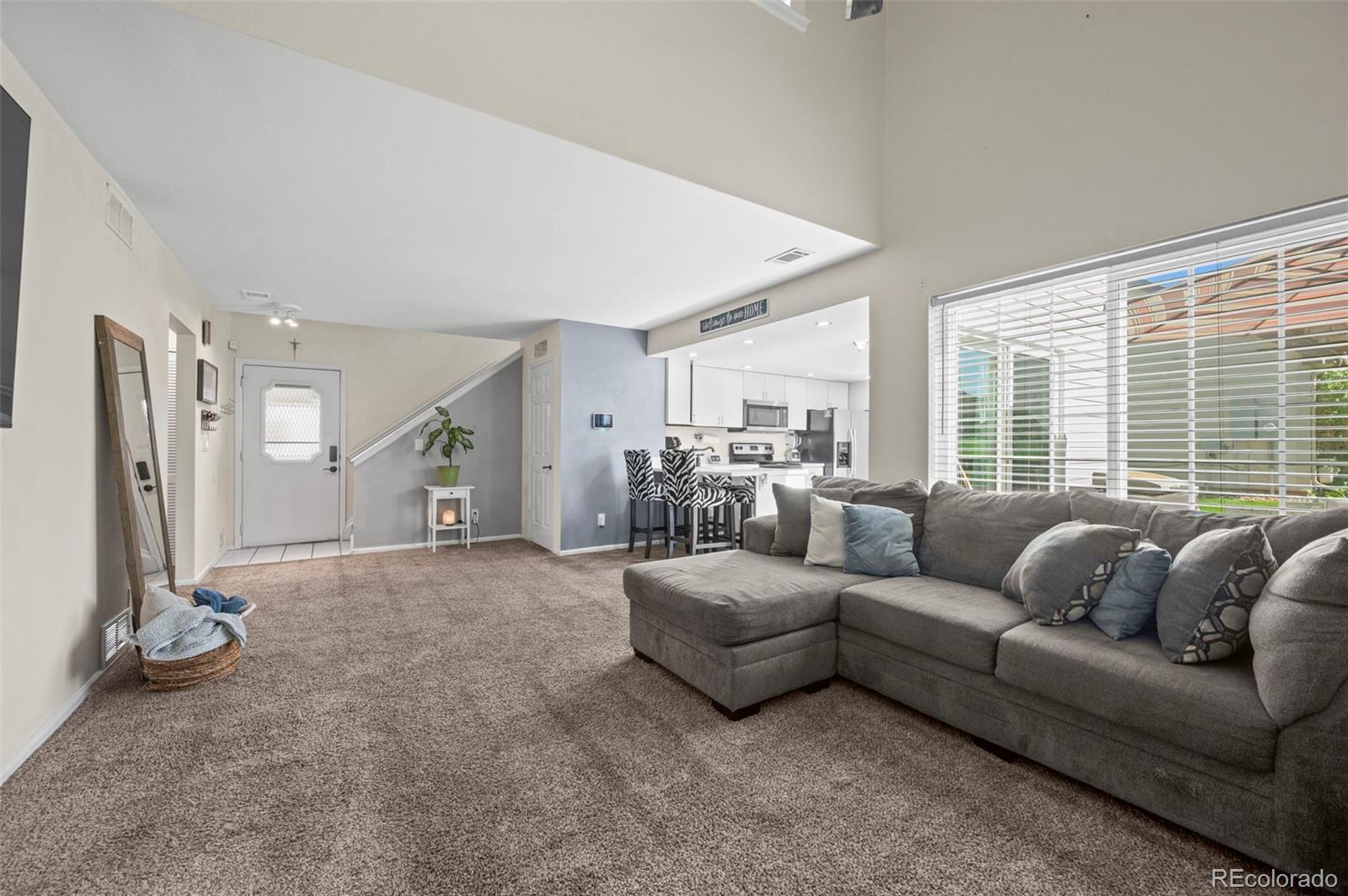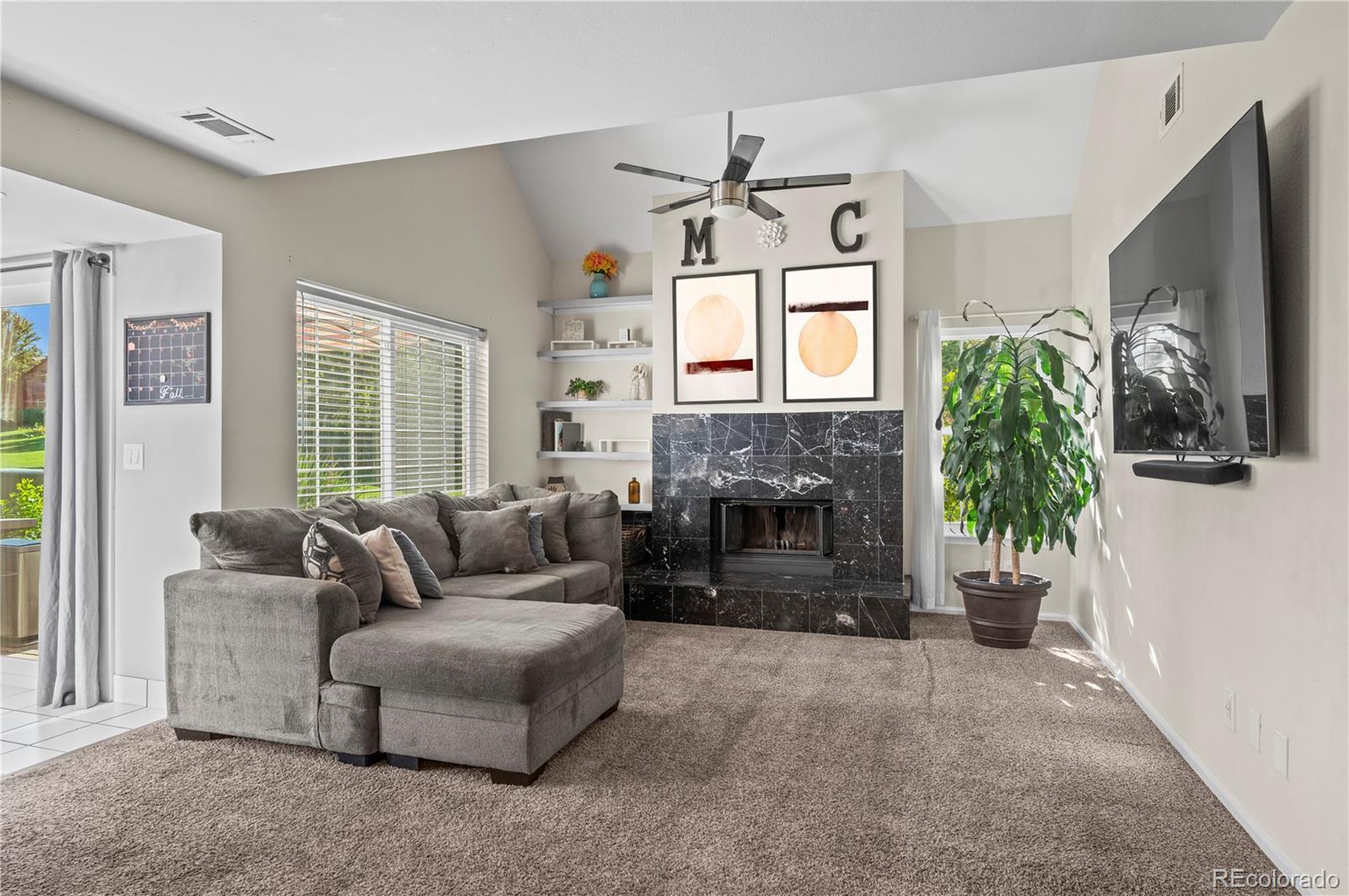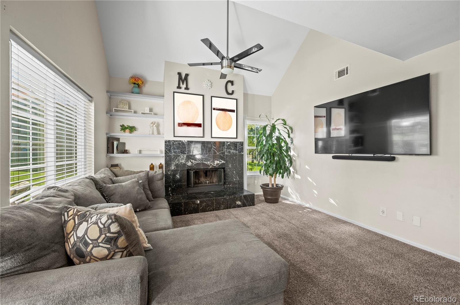 Welcome to this charming two bed two bath townhome in the desirable Heather Ridge South community, perfectly positioned along the 9th hole of the Heather Ridge Golf Course. This inviting home offers a light-filled open floor plan with vaulted ceilings. When you enter, you are greeted by a spacious family room where a cozy fireplace creates the ideal spot to relax. Large windows all around the main floor bring in abundant natural light. The kitchen is equipped with the essential appliances and the perfect spot for your dining room table. The kitchen flows out to a private patio which opens to serene views of the golf course, making it a wonderful space to entertain guests or enjoy peaceful evenings outdoors. On the main floor, there is a guest bedroom with a separate full bathroom. Upstairs, you'll find a primary suite that spans the entire second level with an ensuite primary bath and generous sized walk-in closet. Beyond the home itself, the location is a true highlight. This townhome is just steps from the community pool and surrounded by walking trails, open space, and plenty of recreational opportunities. There is light rail access, shopping, dining, and entertainment are all nearby, providing everything you need just minutes from your door. With new energy efficient windows throughout, one of the largest homeownership expenses has been taken care of for you. There is a reserved parking space right out front. Enjoy lock and leave living with the HOA providing services such as water, trash, sewer, and insurance. Whether you’re seeking a low-maintenance lifestyle, a golfer’s retreat, or simply a serene place to call home, this Heather Ridge South gem combines comfort, convenience, and community in one perfect package. Don’t miss your chance to make it yours!