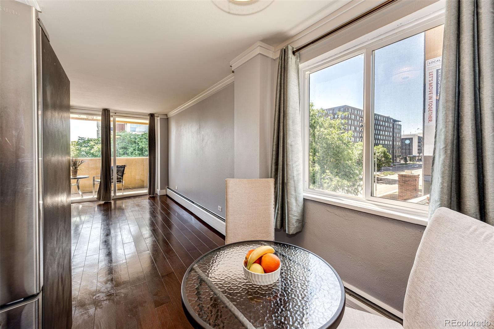 Desirable area in Congress Park!! Urban living in an excellent location, steps away from all conveniences, restaurants, Bars, AMC, and Trader Joe's. Move in ready! 1 Large bedroom + 1 full Bath. Oversize living room for entertaining. Private covered balcony just off the living room. All appliances included. Extra storage with 3 closets not including the spacious bedroom closet. HOA covers Heat, Water and Sewer. Game room/clubhouse on the main level. Coin Op Laundry to the Right of the front door, just steps away from your unit. One reserved parking space (use only).