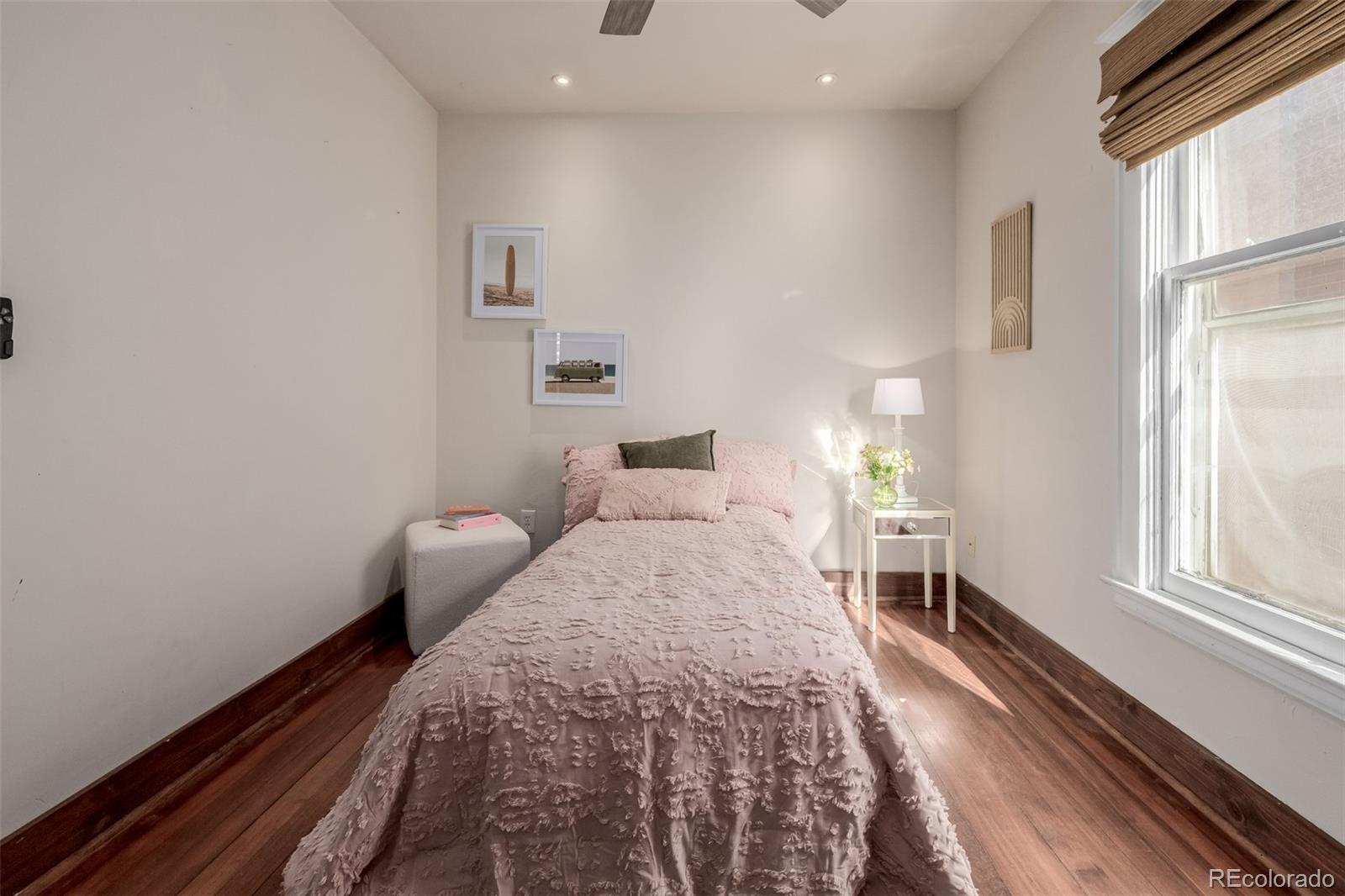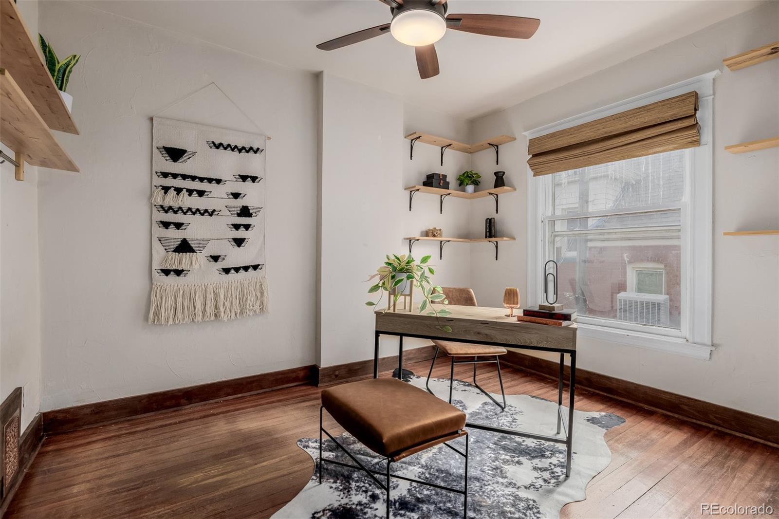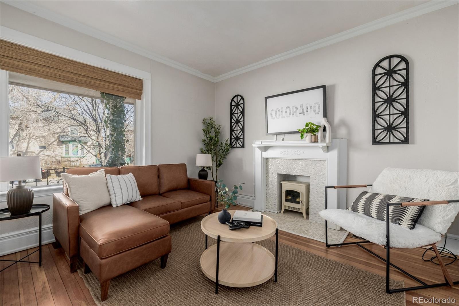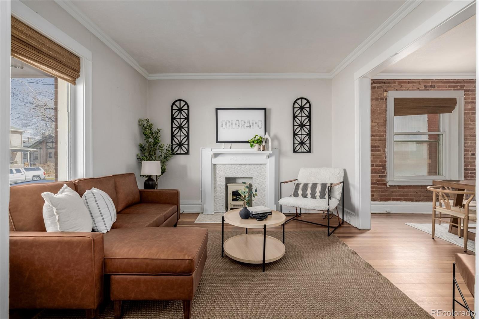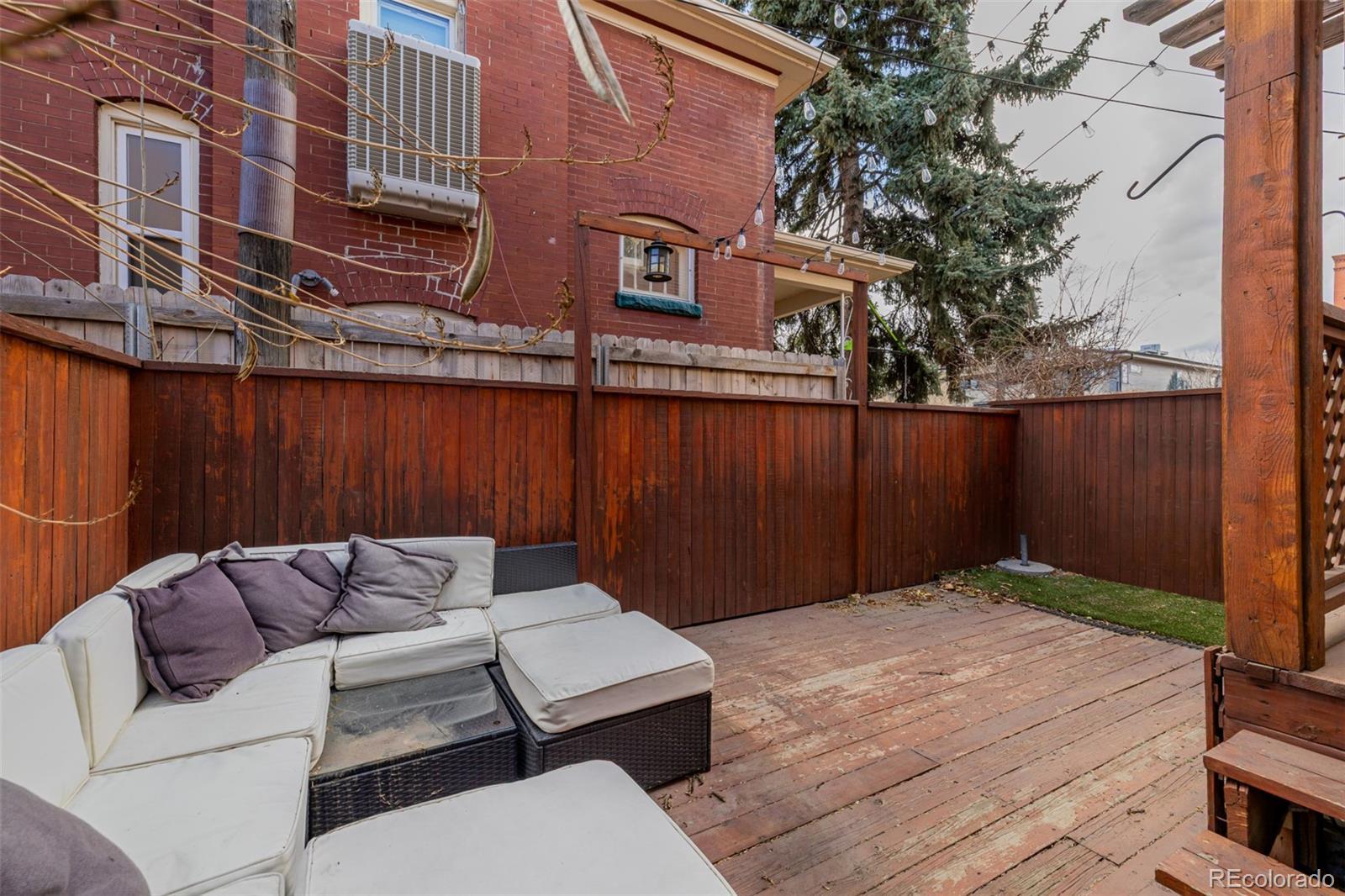 Step into style, comfort, and freedom from HOA dues in this beautifully maintained attached two-level condo — enjoy all the benefits of homeownership without the extra monthly fees. A welcoming front porch sets the tone, leading into a hallway foyer accented by rich wood flooring, thick baseboards, and elegant lighting. The main level features a convenient powder room, a spacious living room anchored by a cozy fireplace, a formal dining space highlighted by a striking brick accent wall, and a well-appointed kitchen with granite countertops, stainless steel appliances, and crisp white cabinetry. Upstairs, you’ll love the layout — all three bedrooms are thoughtfully situated on the same level, creating a functional and connected living space. The updated full bathroom adds a modern touch. The unfinished basement offers incredible storage capacity, a dedicated laundry area, and endless potential for a workshop, home gym, or future finished living space — without sacrificing storage. Out back, enjoy a fully fenced deck patio perfect for relaxing or entertaining, plus plentiful street parking for guests. Located in an incredibly walkable pocket of the city, you’re just minutes from City Park, the Denver Zoo, the Museum of Nature and Science, Sun Market, and dozens of local restaurants, shops, and breweries in Uptown. Urban convenience, practical layout, generous storage, and no HOA costs — this one checks all the boxes.