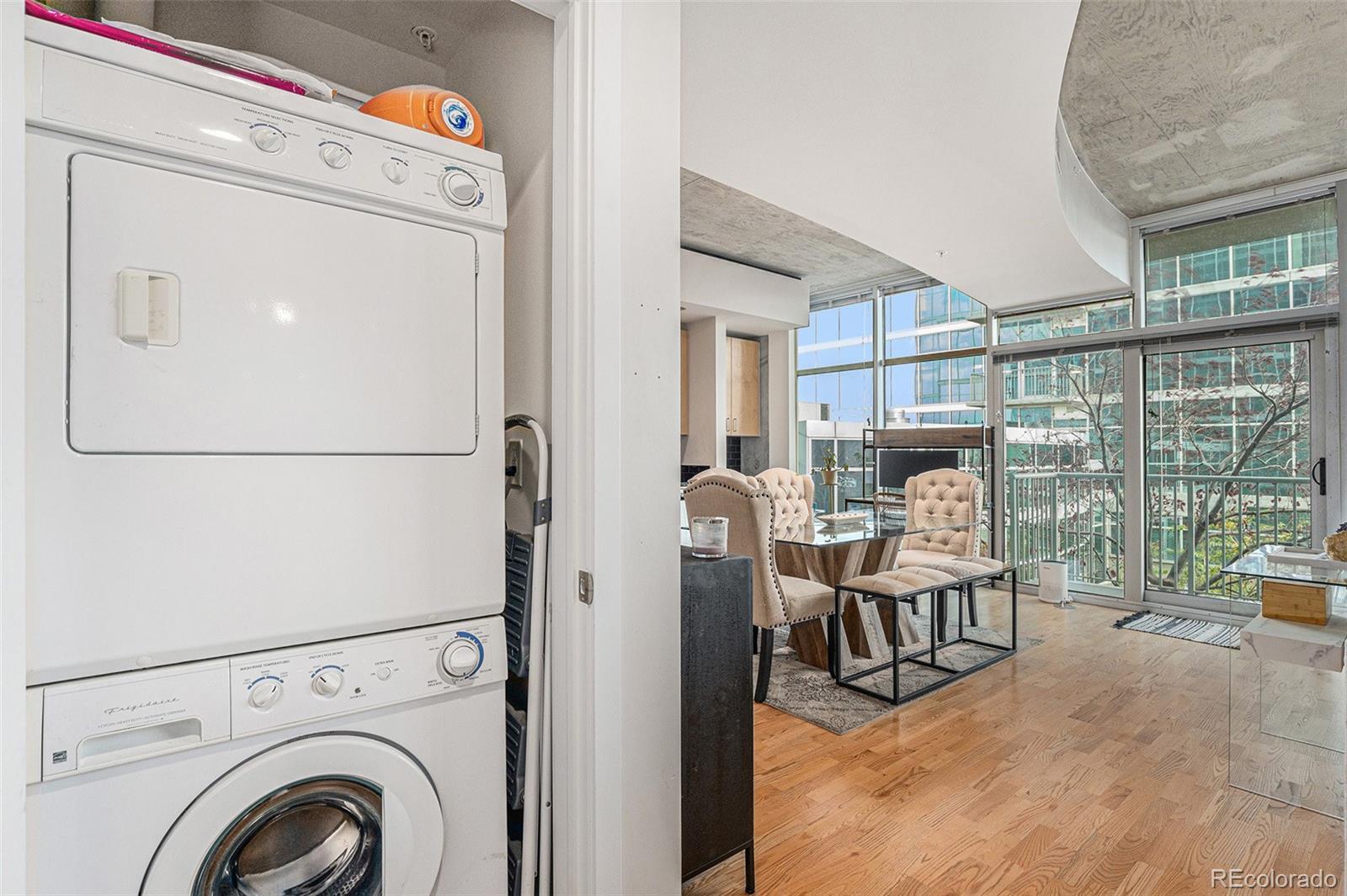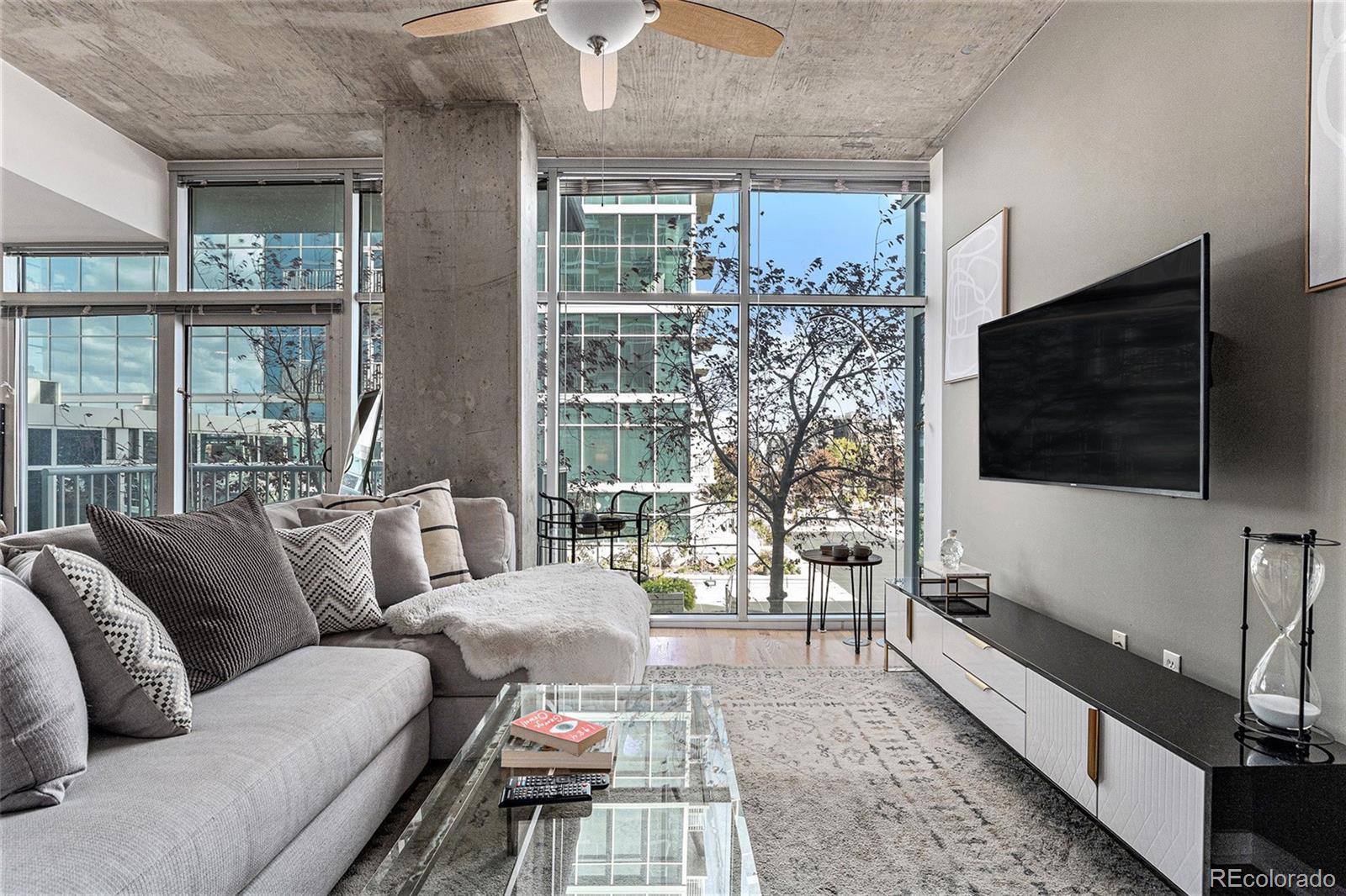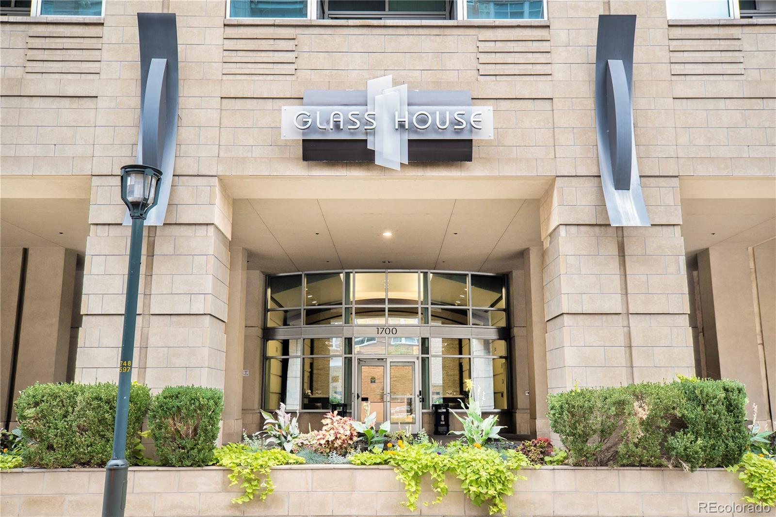 BEST PRICE FOR GLASS HOUSE! Enjoy modern urban living and sophistication at its finest right in the heart of Denver! This chic 1-bedroom, 1-bathroom residence boasts 901 square feet of thoughtfully designed open living space, complete with central AC and floor to ceiling windows to provide expansive city views directly over the gardens and pool in Denver's popular Riverfront Park. Revel in culinary adventures in a modern kitchen adorned with sleek granite countertops, stainless steel appliances and elegant hardwood floors. The spacious living area provides for entertaining or enjoying time with family and friends and opens to a private balcony, perfect for unwinding. Enjoy the convenience of in-unit laundry, ample storage, dedicated covered parking and storage unit. Building amenities elevate lifestyle living with a concierge, doorman, communal pool, remodeled club house on the 8th floor, and state-of-the-art gym. From this location residents are just steps away from river front park, union station, shopping, dining and entertainment in lower downtown or the lower Highlands and allows easy access to I-25 and I-70. The building is pet friendly and furnishings in the unit are negotiable, this contemporary haven is ready to welcome you home!