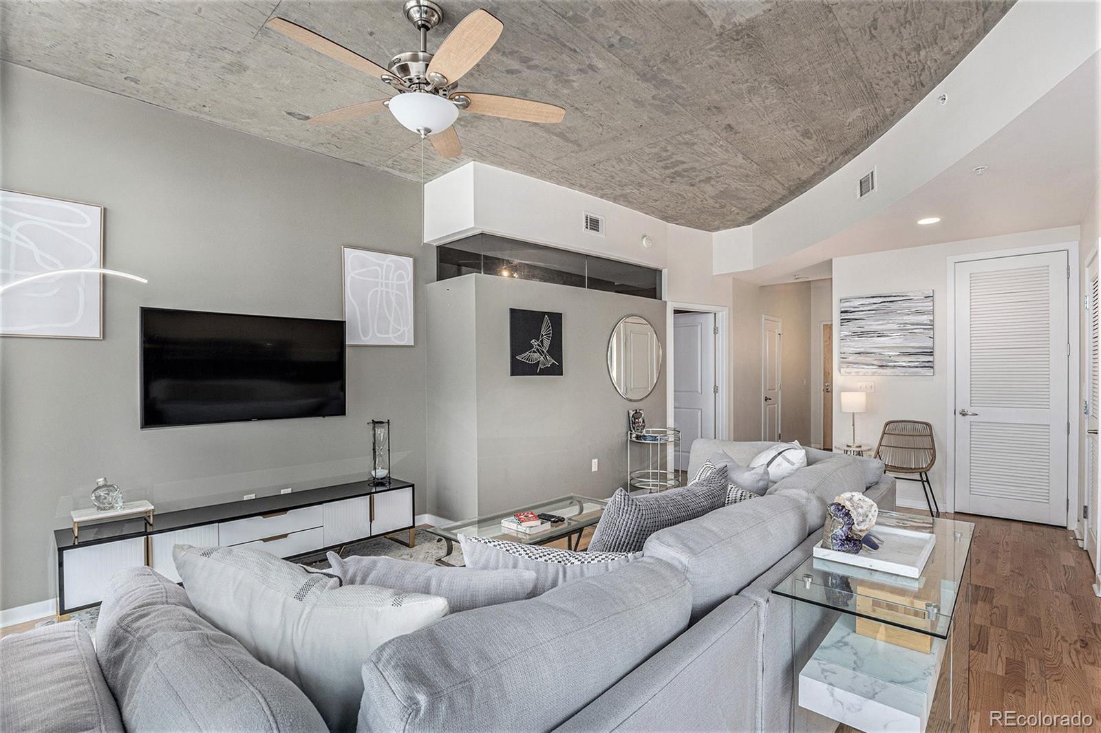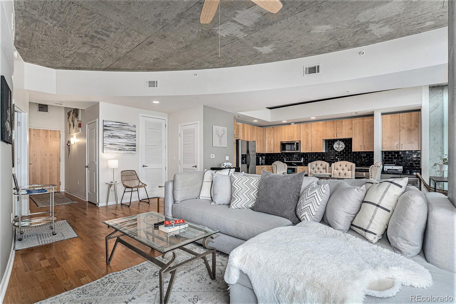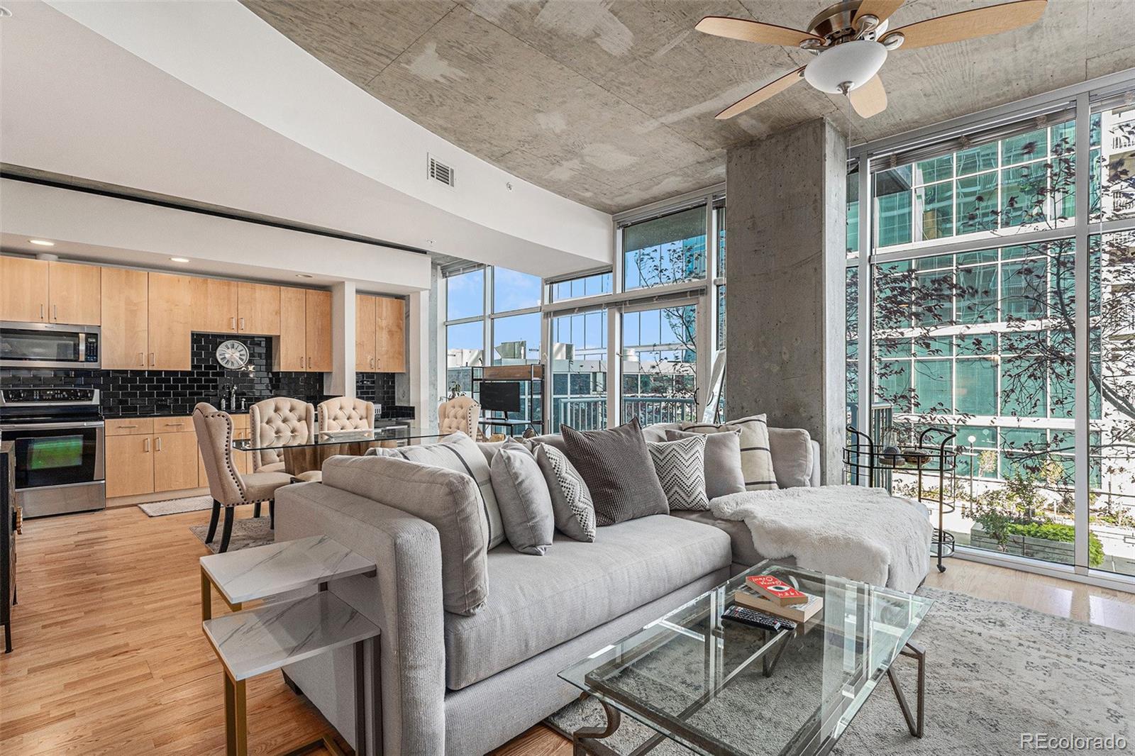 BEST PRICE FOR GLASS HOUSE! Enjoy modern urban living and sophistication at its finest right in the heart of Denver! This chic 1-bedroom, 1-bathroom residence boasts 901 square feet of thoughtfully designed open living space, complete with central AC and floor to ceiling windows to provide expansive city views directly over the gardens and pool in Denver's popular Riverfront Park. Revel in culinary adventures in a modern kitchen adorned with sleek granite countertops, stainless steel appliances and elegant hardwood floors. The spacious living area provides for entertaining or enjoying time with family and friends and opens to a private balcony, perfect for unwinding. Enjoy the convenience of in-unit laundry, ample storage, dedicated covered parking and storage unit. Building amenities elevate lifestyle living with a concierge, doorman, communal pool, remodeled club house on the 8th floor, and state-of-the-art gym. From this location residents are just steps away from river front park, union station, shopping, dining and entertainment in lower downtown or the lower Highlands and allows easy access to I-25 and I-70. The building is pet friendly and furnishings in the unit are negotiable, this contemporary haven is ready to welcome you home!