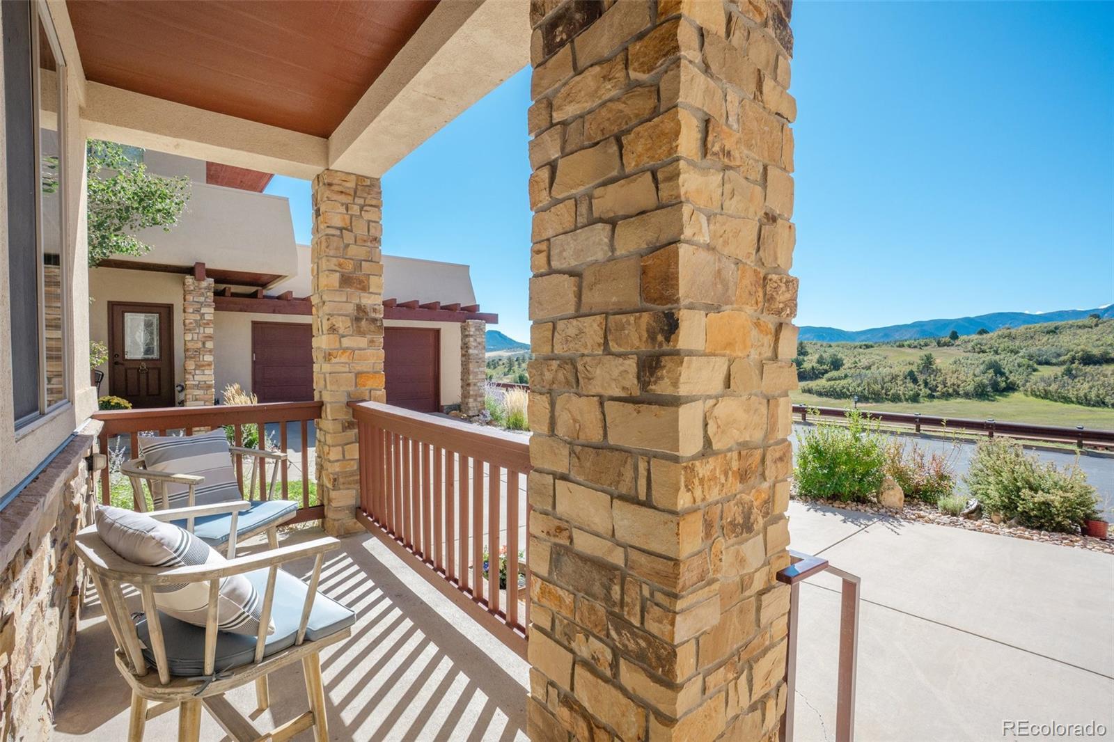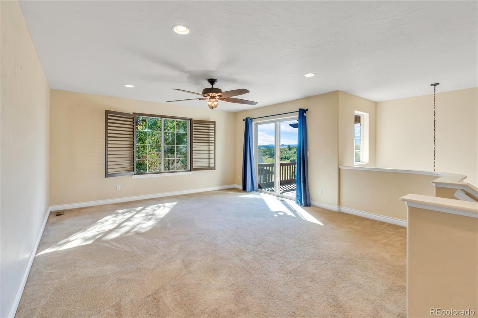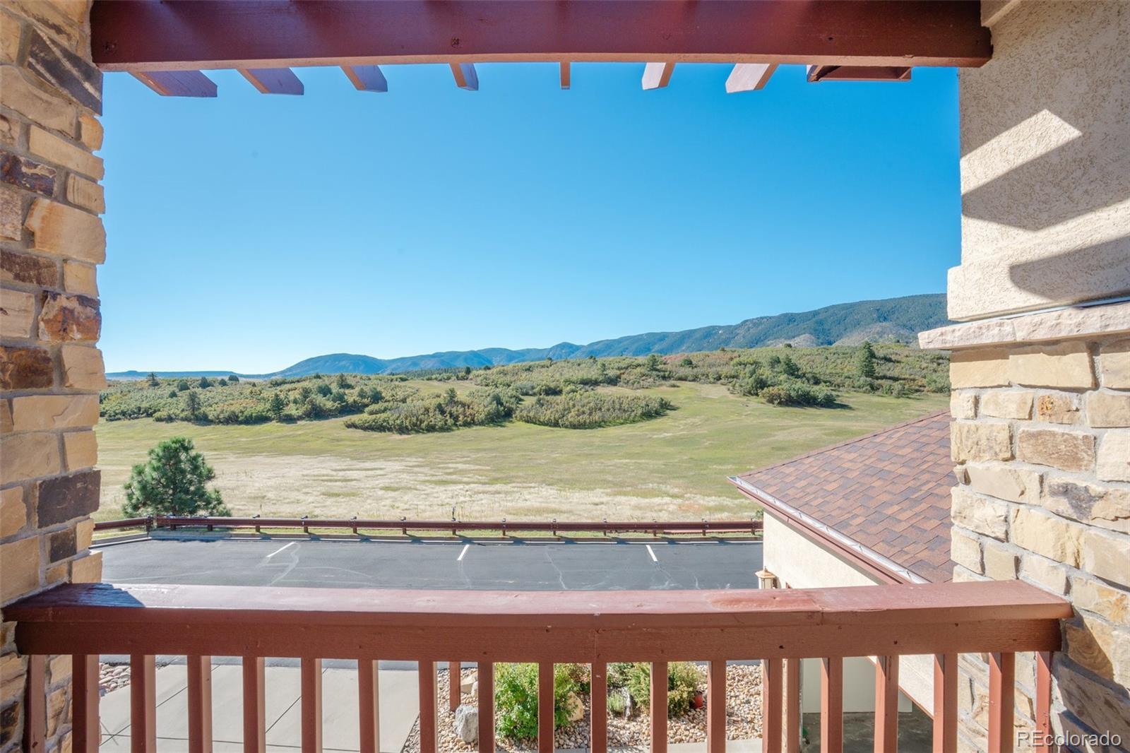Welcome home to breathtaking Colorado views! From the moment you enter the foyer with its soaring two-story ceiling, you’ll feel the spacious elegance this home offers. The inviting living room features plush carpeting, custom wood shutter window coverings, a cozy gas fireplace with tile surround, and ceiling fan. The updated kitchen is a chef’s delight with beautiful LVP flooring, stunning quartz countertops, stainless steel appliances, center island with seating, and a large pantry. A light-filled dining room with LVP flooring, chandelier, and sliding glass doors opens to the outdoor living space—perfect for entertaining. The main level primary suite offers comfort and privacy with a spacious bedroom, custom shutters, and a luxurious five-piece en-suite bath complete with dual sinks, soaking tub, walk-in shower, and a generous walk-in closet. A second bedroom, full bath, and convenient laundry/mud room complete the main level. Upstairs, the loft is bathed in natural light and provides sliding glass access to an upper balcony showcasing incredible panoramic views. Another spacious bedroom with walk-in closet, ceiling fan, and full bath make this level ideal for guests or family. Whether relaxing indoors or enjoying evenings on the deck or balcony, this home was designed to maximize its stunning mountain and neighborhood views. Low-maintenance community with no yard work required, this home lets you focus on the finer things in life. Only 1/2 mile from the award-winning Perry Park Country Club, accessible by golf cart, allowing you to take in the stunning scenery along the way. View the aerial video here: https://sites.listvt.com/vd/215420641 3D Tour here: https://my.matterport.com/show/?m=wmMgxWZSXgU