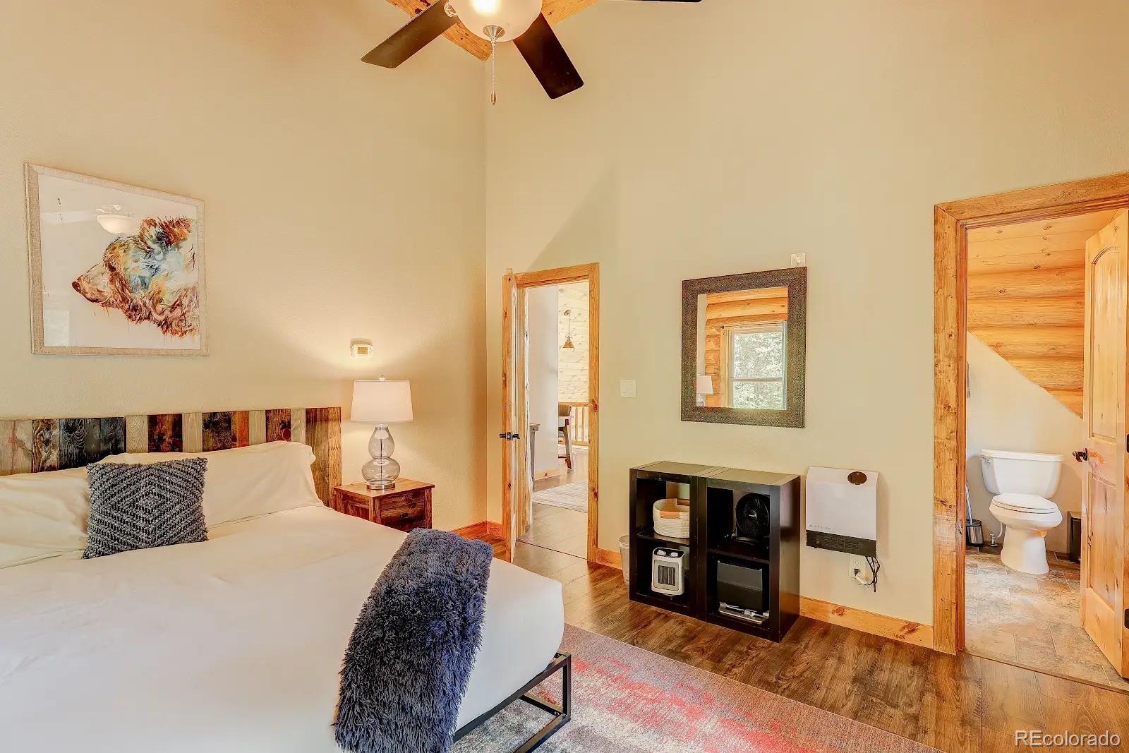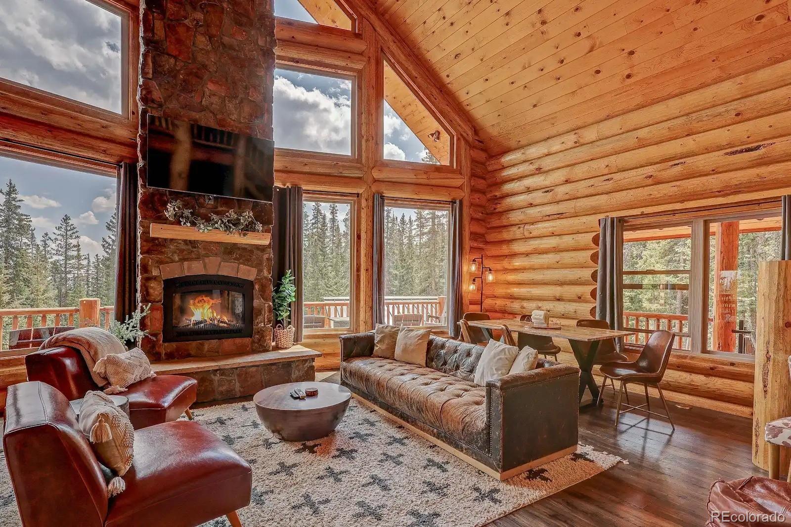 This exclusive mountain chalet is perched on three private, dividable lots, offering a rare blend of luxury, privacy, and true Colorado mountain charm. Sold turnkey and fully furnished, the home is a proven top-five grossing Airbnb in Fairplay, with over three years of $100K+ income ($123K in 2022, $96K in 2023, $106K in 2024). The great room features a soaring wall of windows, stunning mountain views, a dramatic stone fireplace, and an open kitchen and dining area ideal for entertaining. Whole-home radiant floor heating, a brand-new boiler under warranty, and a new well pump and system provide comfort and peace of mind. Each bedroom is ensuite, offering privacy for owners and guests. The lower level includes a spacious family room with mini-bar and plenty of room for the whole group. Outdoor living shines with a wrap-around deck, hot tub, and sweeping alpine views. A massive detached two-car garage doubles as a game room and storage space for all your mountain toys, and the property also features RV hookups, EV charging capability, and high-speed internet. Conveniently located with easy access to Breckenridge Ski area and a short drive to Old Town Fairplay, this chalet offers unmatched seclusion while delivering an exceptional investment opportunity or private mountain retreat.