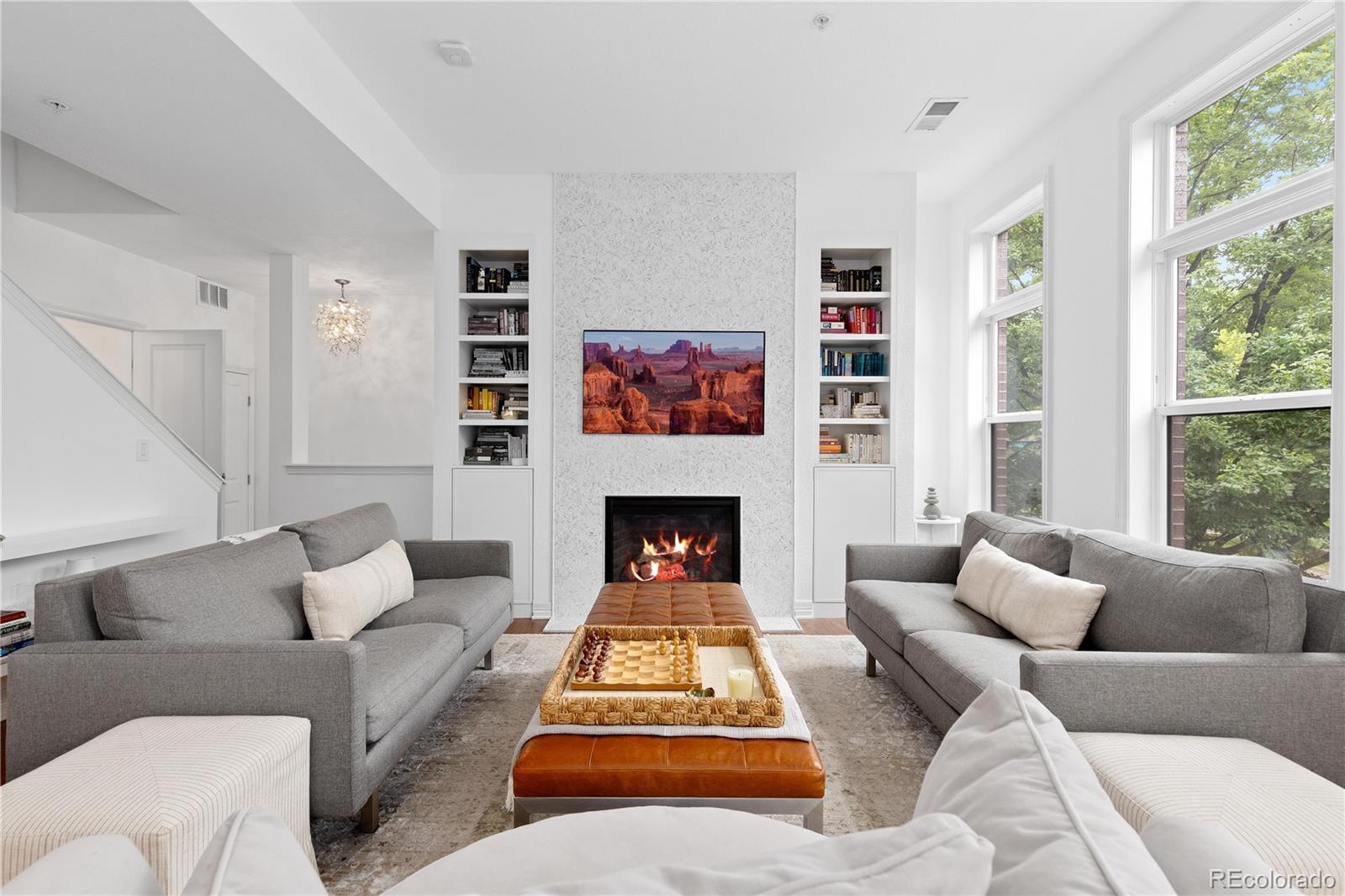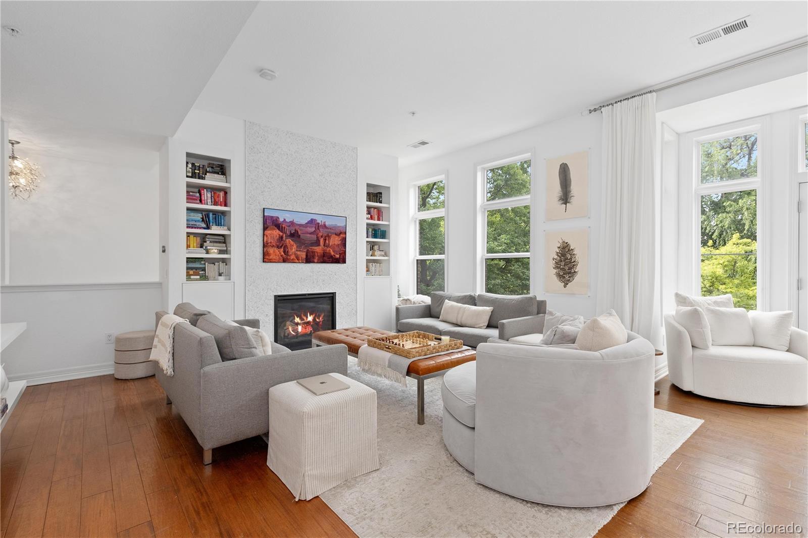 Indulge in sophisticated city living with this exquisite luxury townhome, perfectly positioned directly across from Denver’s iconic City Park! Offering unobstructed views of lush parkland, the mountains, and skyline beyond, this impeccably designed residence blends timeless elegance with refined modern style. Step inside to a private entry that opens to an expansive, light-filled second level where floor-to-ceiling windows frame the view. The open-concept living area boasts custom built-in shelving surrounding a sleek contemporary fireplace, with a charming Juliet balcony that adds a touch of European grace to the dining space. The kitchen is a true culinary masterpiece—outfitted with striking marble waterfall countertops, state-of-the-art Wolf/Sub-Zero appliances, Ruvati workstation/chef prep sink, breakfast bar, and cabinetry designed for both functionality and beauty. Ascend to the upper level to find a serene primary suite, an elegant retreat featuring custom closets, a sunlit window alcove, and a private five-piece spa bath. A spacious guest suite with a private en-suite bath offers luxurious accommodations for all. The crowning feature of this home is the private rooftop terrace—an entertainer’s paradise with breathtaking panoramic views of the city skyline and snowcapped peaks. Whether hosting under the stars or enjoying peaceful mornings, the rooftop experience is unparalleled. Resort-style amenities in this premier building include 24/7 concierge service, a state-of-the-art fitness center, movie/screening room, sauna, pool deck with hot tub, fire pit lounge, wine storage and tasting room, private event club rooms, business center, and ample guest parking. Two deeded parking spaces are included. Just minutes from downtown and steps to the Denver Zoo, Museum of Nature & Science, and premier dining, shopping, and entertainment, this pet-friendly residence offers a rare blend of exclusivity, lifestyle, and location. Welcome to luxury redefined.