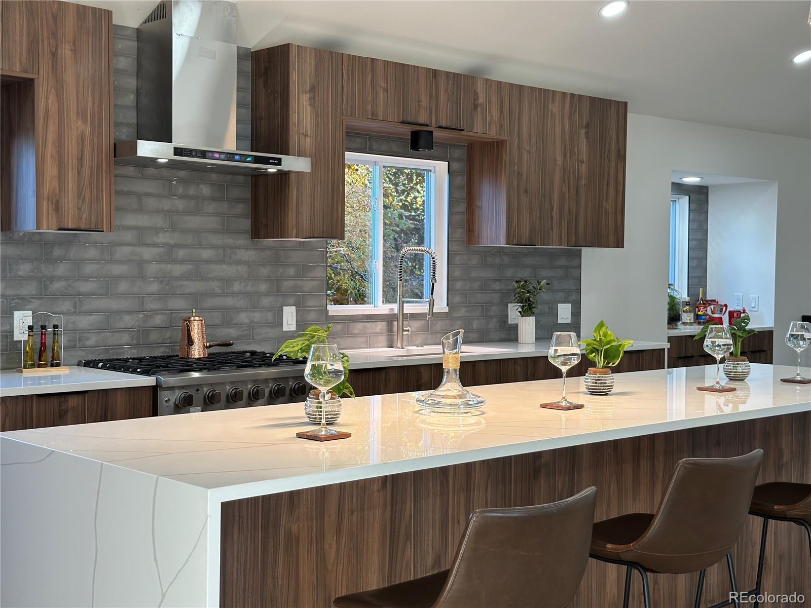 Welcome to 2038 S Hoyt Way — where modern elegance meets Colorado living in Lakewood’s desirable Parkwest Ridge. This beautifully updated 5-bedroom, 3-bath home blends minimalist design with everyday functionality. Entering the home, you’re greeted by an open kitchen and dining area that flow seamlessly together, creating the perfect space for entertaining. The gourmet chef’s kitchen showcases a show-stopping 12-foot Quartz Island, modern finishes, and stainless steel appliances. Continuing from the heart of the home, the expansive living area impresses with skylights, an electric fireplace, and abundant natural light — offering the perfect balance of comfort and sophistication. Sliding glass doors open to the patio, extending your living space outdoors for effortless indoor-outdoor entertaining. The luxurious primary suite includes a spa-like en-suite bath and walk-in closet, while four additional bedrooms provide flexible living options. Enjoy a serene, landscaped backyard and easy access to walking and biking paths, open space. Just minutes from Carmody Rec Center, Foothills Ice Rink, Belmar shopping, and major routes to downtown and the mountains. This home features and includes: all major systems new, LED lighting with nightlight function, smart main entrance door lock, smart thermostat, designer kitchen and bathrooms, smart keypad for garage, smart range hood and bathroom LED mirrors.