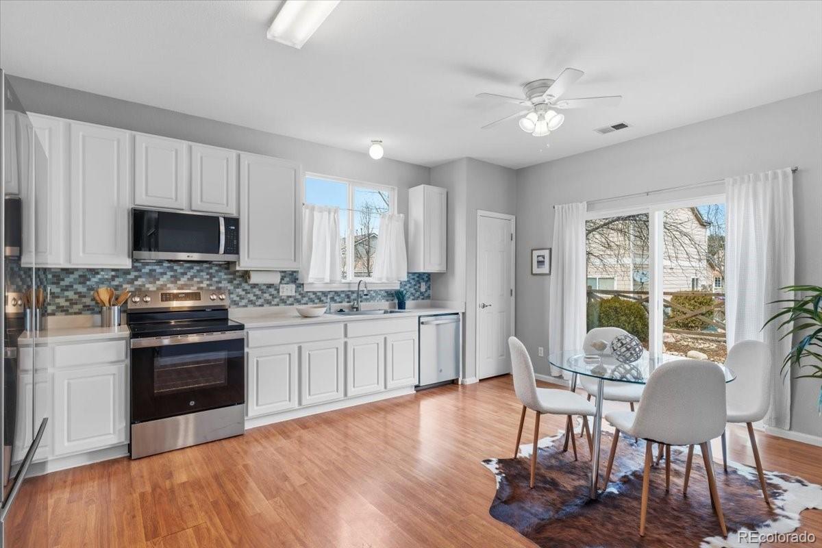 This well-maintained, single-level ranch in Commerce City offers comfortable living with thoughtful updates and exceptional access to everyday conveniences and recreation. It has been wall-cared for with pride of ownership and is move-in ready. Located just minutes from I-76, commuting and travel are simple while still enjoying a small, neighborhood setting. Daily errands are easy with a grocery store only two miles away, and outdoor recreation is abundant with a neighborhood park featuring a playground and open field, plus nearby Villages East Park and Reunion Park for additional green space. Nature lovers will appreciate the extensive trail systems, wildlife viewing, and fishing opportunities at Barr Lake State Park, while fitness and sports enthusiasts can take advantage of the facilities at Bison Ridge Recreation Center just a short drive away. Inside, the home reflects pride of ownership with numerous recent upgrades. The kitchen features a new sink and faucet along with a full suite of new stainless steel appliances including refrigerator, oven, microwave, and dishwasher. Both bathrooms have been refreshed with new toilets and shower heads, and the primary bath also includes a new sink and faucet. Major mechanical updates provide peace of mind, including a new water heater installed in 2023, a professionally serviced HVAC system in November 2025, and a recently cleaned dryer vent. The interior was repainted in 2023, all interior door handles were replaced, and lighting upgrades include a new living room ceiling fan and entry fixture. Exterior improvements completed in 2024 include new front-yard sod, landscaping, plants, and mulch for strong curb appeal. The home also includes a LG smart washer and dryer with storage drawers added in February 2023. With modern updates, functional single-level living, and access to parks, trails, and amenities, this home offers a practical and inviting opportunity in a growing community.