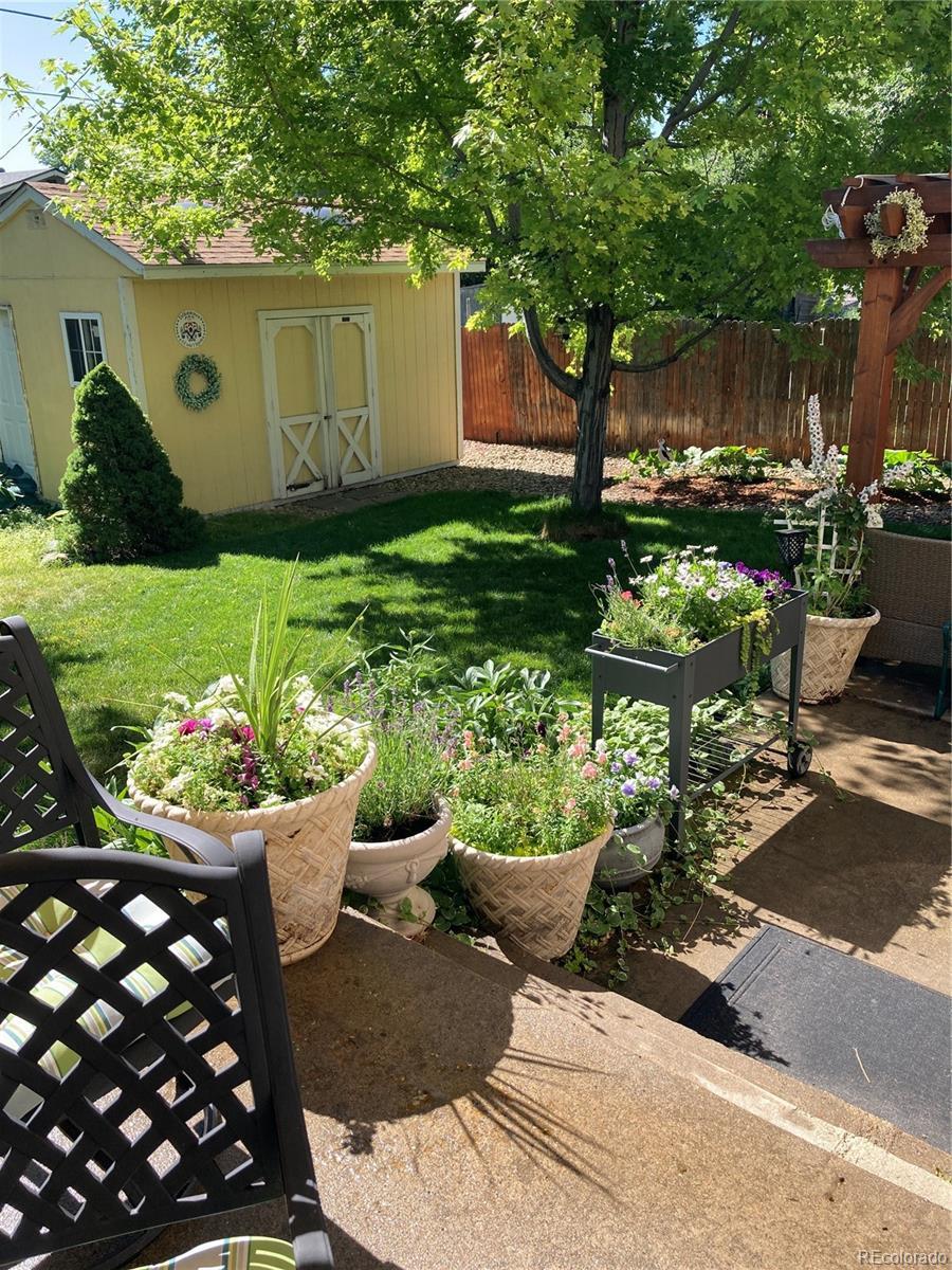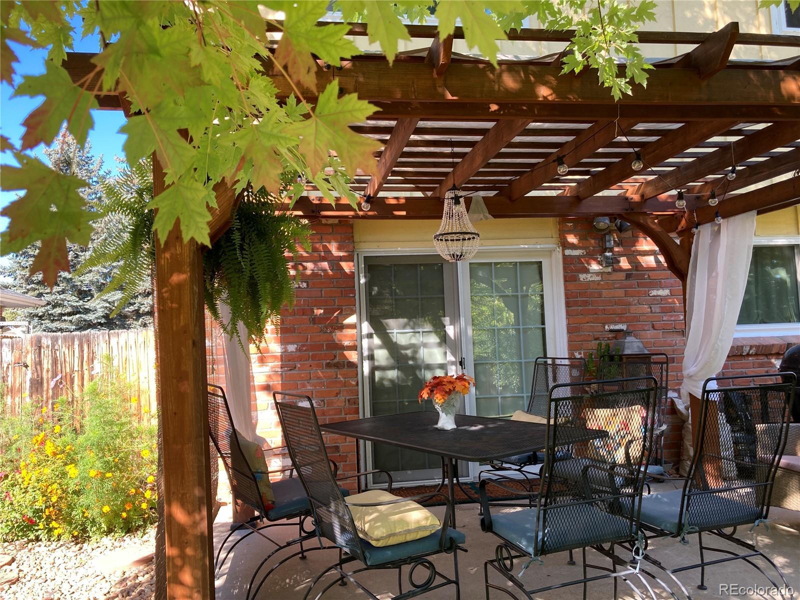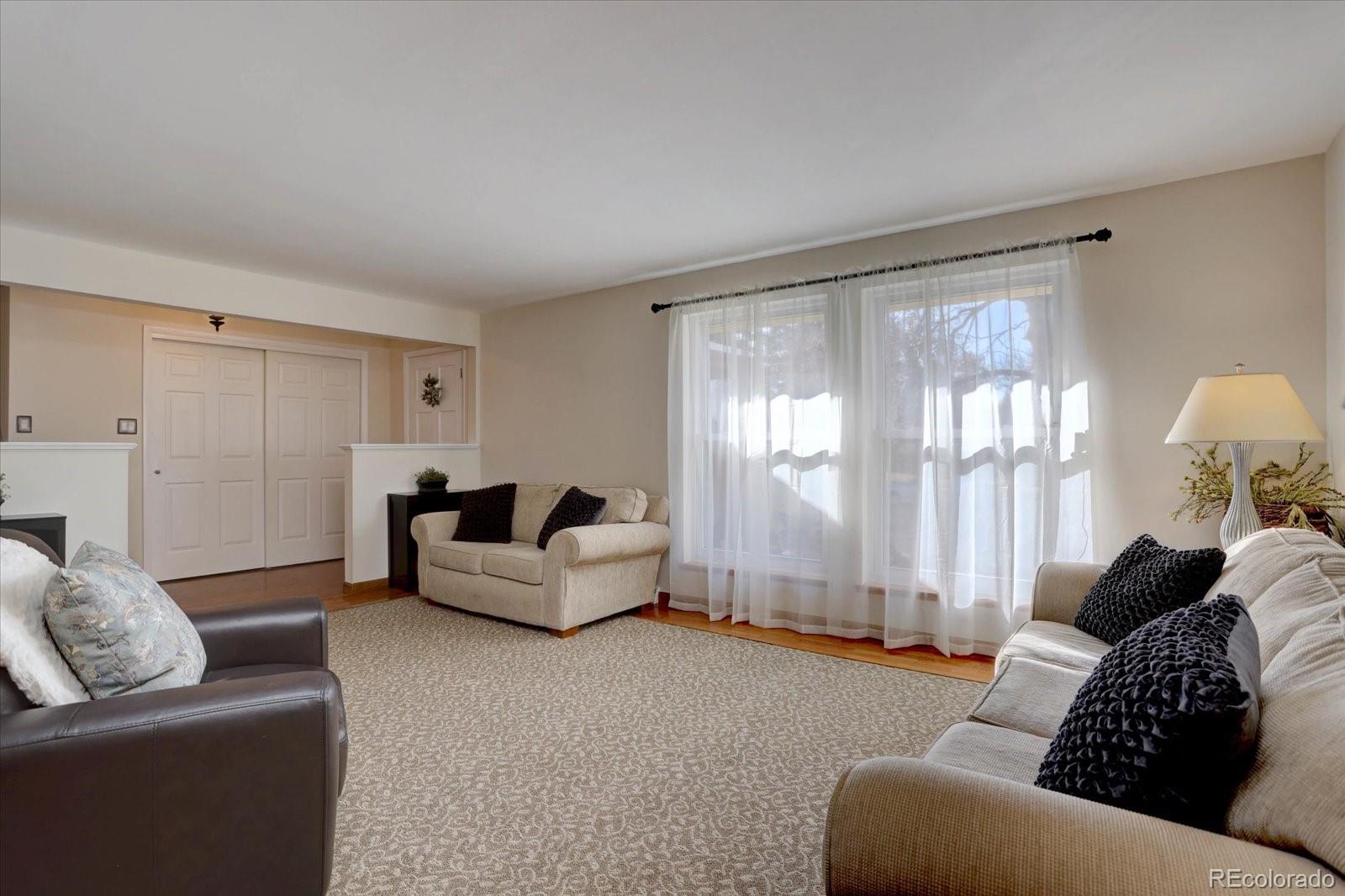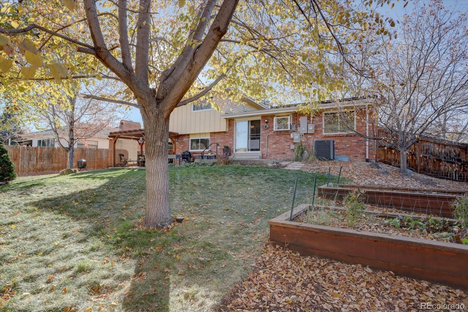 Beautiful and well-maintained 4-level home on a quiet cul-de-sac in highly desirable Leawood. Offering 2,171 finished sq ft plus 455 sq ft of unfinished basement space, this home features 4 bedrooms and 3 baths. Welcoming covered front porch and spacious entry with wood flooring and oversized coat closet. Main level includes a formal living room with abundant natural light and adjacent dining room with wood floors. Spacious kitchen with updated cabinets, laminate countertops, tile backsplash, appliances, garden window, eat-in space and sliding glass door to backyard. Upper level offers primary suite with 3/4 bath, plus two additional bedrooms (one nearly as large as the primary) and full bath. Lower level includes a large family room with tile flooring, gas fireplace, built-in bookcase and French door to patio. Basement is partially finished with a bedroom, storage area, utility room and large unfinished space ready for your vision. Backyard features two patios (one with pergola), large shed with double doors and skylight, playhouse, two raised garden beds and manicured lawn. Owned solar panels – no lease. Outstanding Leawood location with walking trails and parks nearby, close to Clement Park, Johnston Lake, Jeffco schools, Raccoon Creek Golf Course, Southwest Plaza, Historic Littleton, Light Rail and Chatfield State Park. Voluntary civic association offers community events including Easter Egg Hunt, BBQ picnic, clean-up day, garage sales, newsletter and more. A wonderful opportunity!