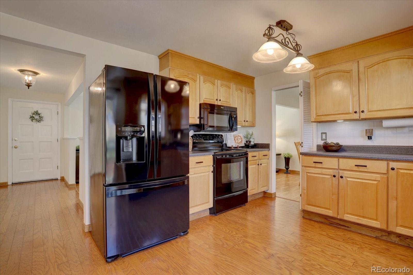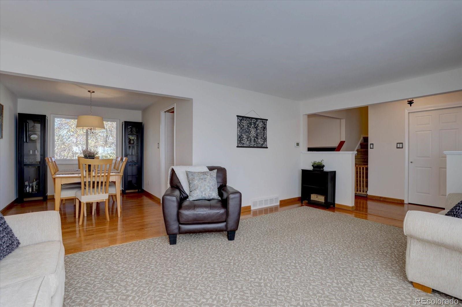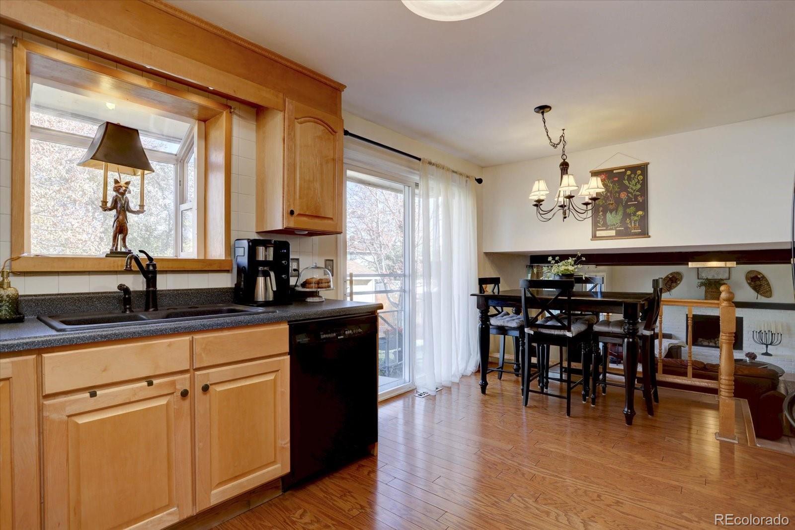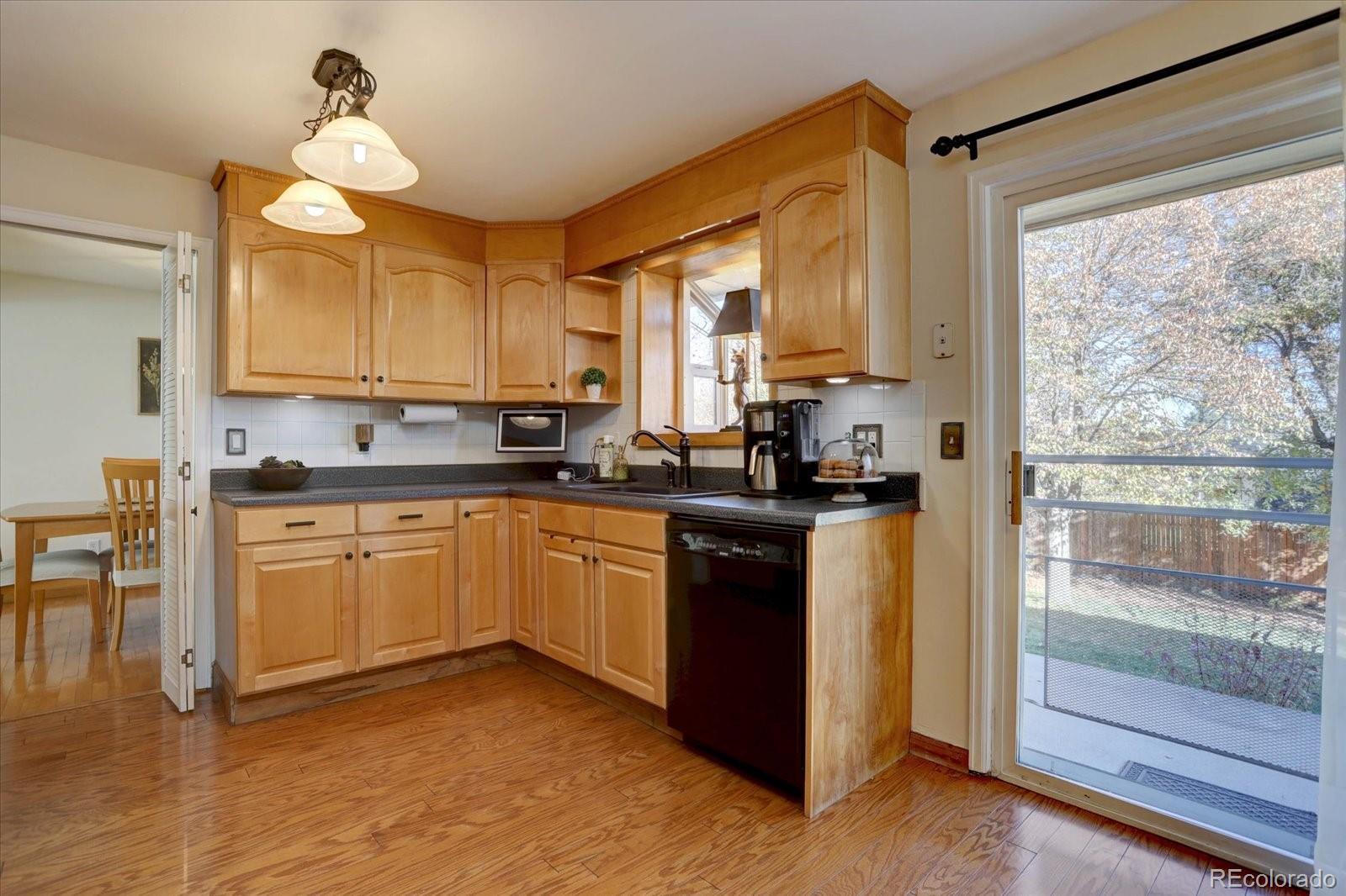 Beautiful and well-maintained 4-level home on a quiet cul-de-sac in highly desirable Leawood. Offering 2,171 finished sq ft plus 455 sq ft of unfinished basement space, this home features 4 bedrooms and 3 baths. Welcoming covered front porch and spacious entry with wood flooring and oversized coat closet. Main level includes a formal living room with abundant natural light and adjacent dining room with wood floors. Spacious kitchen with updated cabinets, laminate countertops, tile backsplash, appliances, garden window, eat-in space and sliding glass door to backyard. Upper level offers primary suite with 3/4 bath, plus two additional bedrooms (one nearly as large as the primary) and full bath. Lower level includes a large family room with tile flooring, gas fireplace, built-in bookcase and French door to patio. Basement is partially finished with a bedroom, storage area, utility room and large unfinished space ready for your vision. Backyard features two patios (one with pergola), large shed with double doors and skylight, playhouse, two raised garden beds and manicured lawn. Owned solar panels – no lease. Outstanding Leawood location with walking trails and parks nearby, close to Clement Park, Johnston Lake, Jeffco schools, Raccoon Creek Golf Course, Southwest Plaza, Historic Littleton, Light Rail and Chatfield State Park. Voluntary civic association offers community events including Easter Egg Hunt, BBQ picnic, clean-up day, garage sales, newsletter and more. A wonderful opportunity!