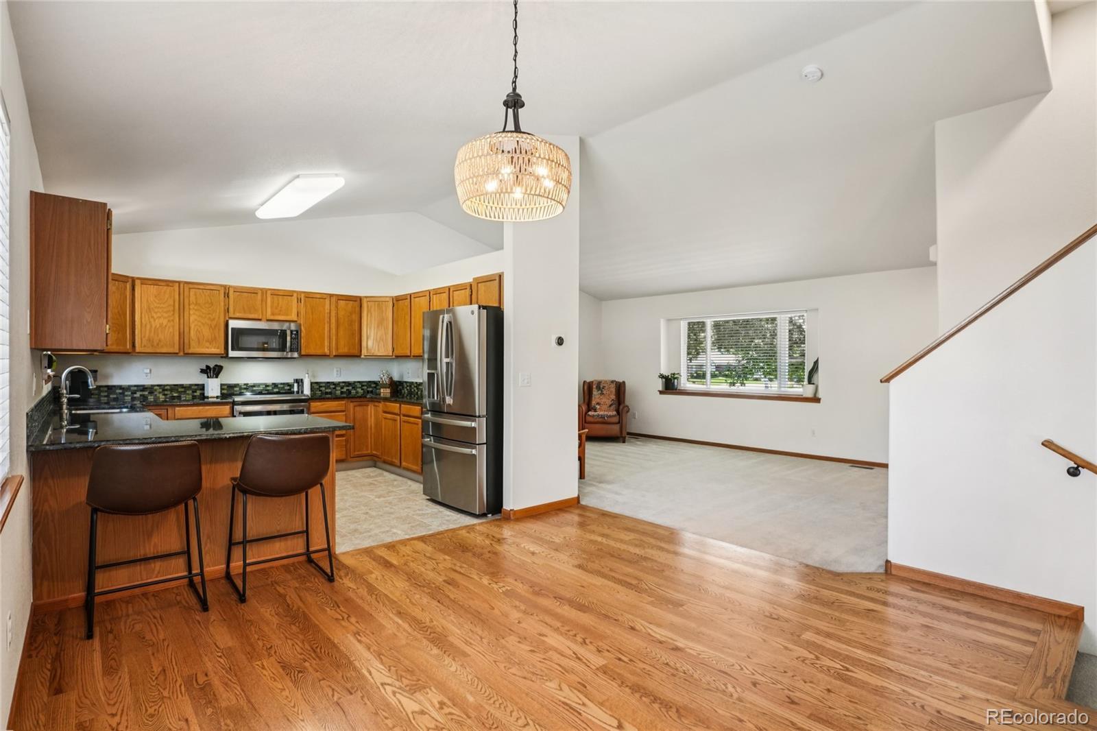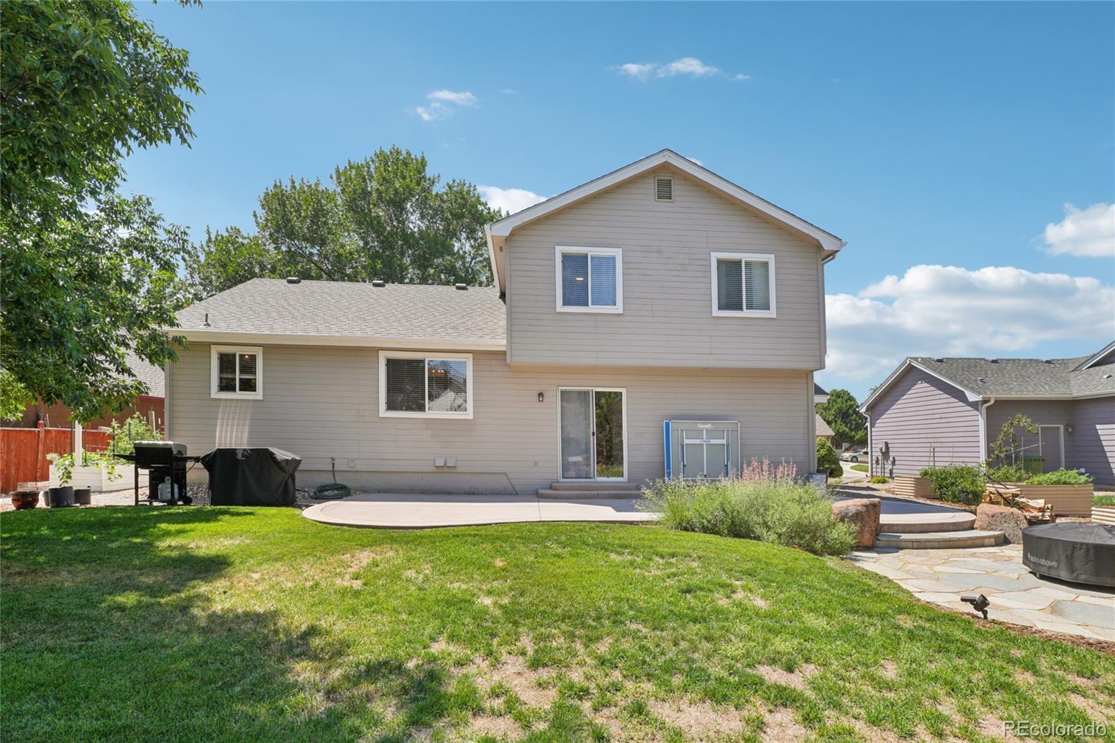 ASSUMABLE VA MORTGAGE, 2.8%! Welcome to this beautifully maintained home in the desirable Seven Lakes community of Loveland! Set on a quiet street with mature trees and charming curb appeal, the inviting front porch sets the tone for the warmth and comfort found throughout the home. Kitchen appliances are NEW, Roof was replaced in 2015, Furnace is from 2010, Active Radon mitigation system installed in 2020. Step inside to a bright, open floor plan with soaring vaulted ceilings and abundant natural light. The kitchen is a chef’s delight with granite countertops, stainless steel appliances, a breakfast bar, and ample cabinetry. Just beyond, the cozy family room offers the perfect space to unwind, with direct access to the backyard patio for seamless indoor-outdoor living. A main floor powder room, laundry room, and access to the attached 3-car garage add everyday convenience. Upstairs, you’ll find a spacious primary suite with vaulted ceilings, a walk-in closet, and a private en-suite bath. Two additional bedrooms and a full bath round out the upper level. The finished basement offers even more room to spread out with a large bonus/family room, an additional bedroom, and a ¾ bathroom—ideal for guests or a home office setup. Step outside into an entertainer’s dream backyard featuring a sunny patio, flagstone patio with pergola and space for a firepit, raised garden beds, fruit trees, and a lush, drought-resistant lawn. Located close to numerous lakes, parks, and trails, this exceptional home combines thoughtful updates, abundant space, and an unbeatable location. Come experience the Seven Lakes lifestyle!