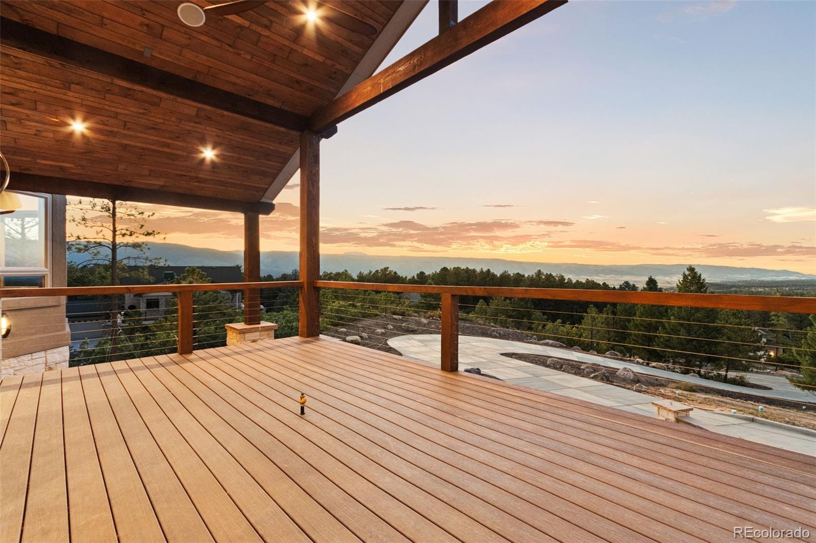 Home is not built, but a model is available to tour with 48 hours notice. Have this custom dream home built on this 2.17 acre lot in a gated community with breathtaking panoramic views! This stunning 5 bedroom, 7 bathroom home will be built with top of the line finishes and timber frame styling boasting massive Douglas Fir beams T&G wood ceilings, cherry cabinets, walnut floors throughout, floor to ceiling windows and so much more! The enormous great room, which is open to the chef's kitchen showcases 16 ft vaulted ceilings with Douglas Fir beams, a floor to ceiling natural limestone fireplace and a large deck to enjoy the views. The bright and airy chef's gourmet kitchen features top of the line Wolf and Viking professional grade appliances, a large butlers pantry, quartzite countertops and an enormous center island and breakfast bar. The spacious master retreat showcases a double sided gas fireplace, enormous windows, walnut floors and a private deck to enjoy your morning cup of coffee. The luxurious master bath boasts heated marble floors, freestanding jetted tub, enormous shower w/body jets and a massive walk-in closet. Enjoy the beautiful home office with a gas fireplace and picture windows with views. The upper level guest apartment is perfect for multi generational living featuring a private entrance, lots of windows to enjoy the mountain views, walnut floors, a coffee bar, a large walk in closet and a full private bathroom. The stunning walkout lower level has a spacious family room with a wet bar which is perfect for entertaining your family and friends. Every bedroom is a suite with a full private bathroom giving your guests privacy while being pampered in this luxurious setting.This one of a kind lot overlooks the prestigious Perry Park Country Club and Pike National Forest. Enjoy the feeling of mountain living yet only be a mere 35 minutes from the DTC or 25 minutes away from the numerous dining and shopping amenities in Castle Rock and Colorado Springs.