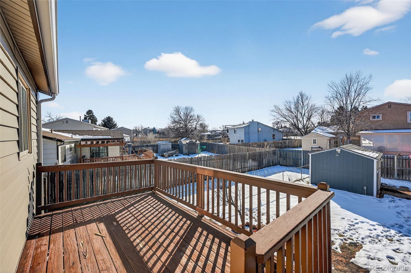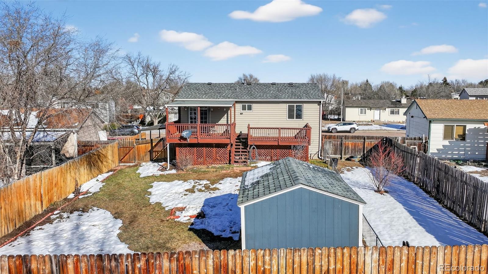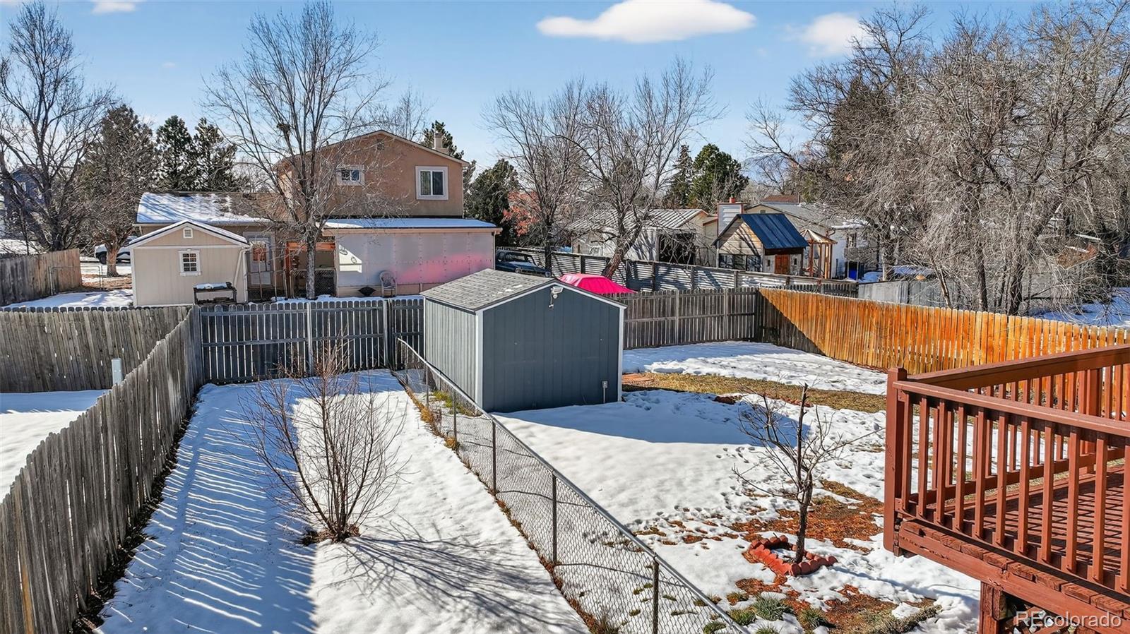 Welcome to this inviting 3-bed 2-bath home in an established neighborhood on the East side. Large windows provide tons of natural light in the living areas. The spacious kitchen features ample storage and counter space, plus French doors leading to the oversized deck with gorgeous Pikes Peak views. The primary bedroom features a beautifully remodeled ensuite bath with new LVP flooring. A second bedroom rounds out the upper level. Head downstairs to enjoy the family room featuring beautiful oak built-ins. The lower level features a third bedroom with an ensuite bath / laundry room. Enjoy the Colorado weather from the generously-sized backyard, with room to garden, play, or relax. Let your furry friends enjoy the dog run, or turn it into a garden oasis. The storage shed is the perfect place to house your tools and includes a lawn mower. Brand new roof (installed Jan 2026), newer furnace, A/C, and electrical panel, give this home move-in ready comfort. Conveniently located off of the Powers corridor, minutes from parks, shopping, schools, as well as Peterson, Schriever, and Fort Carson. Schedule a showing today- don’t miss your chance to make this cozy home yours!
