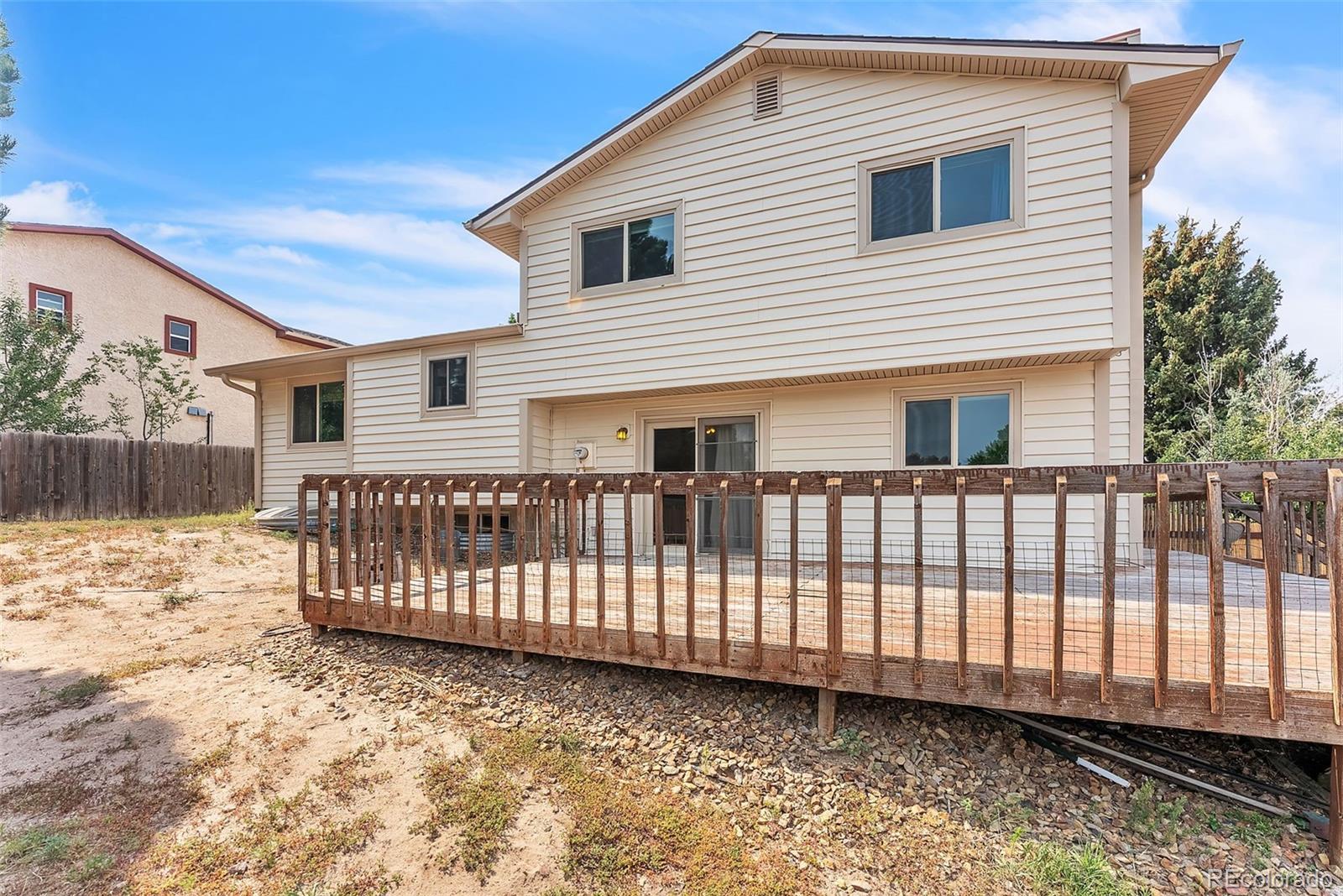 Spacious 5-Bedroom on Corner Lot with RV Parking & Huge Deck This charming 5-bedroom, 2.5-bath home offers room for everyone and plenty of storage, set on a desirable corner lot with an oversized 2-car garage, RV parking, and a large fenced backyard. Step inside to a bright main level featuring a tile entry, a formal living room with French doors, and a dining area that connects to the beautifully updated kitchen with granite countertops, upgraded cabinets, and quality black appliances, including a Kenmore gas 5-burner stove. Upstairs, you will find three bedrooms, including a primary suite with an updated ¾ bath, plus two additional bedrooms and a full hall bath. The lower level boasts a cozy family room with a Schrader wood-burning stove, ceiling fan, and a walkout to the expansive deck—perfect for entertaining. A convenient half bath and laundry are located just off the garage. The finished basement adds two more bedrooms and a mechanical room with a Bryant furnace, humidifier, and 50-gallon GE water heater. Outside, enjoy a massive wood deck (33’x15’ plus a 45’x6’ section), maintenance-free vinyl siding, a dimensional shingle roof, and low-maintenance landscaping with Astroturf and a majestic blue spruce. RV parking is ready for finishing touches, and the oversized garage offers insulated doors and extensive cabinetry for storage or workspace.