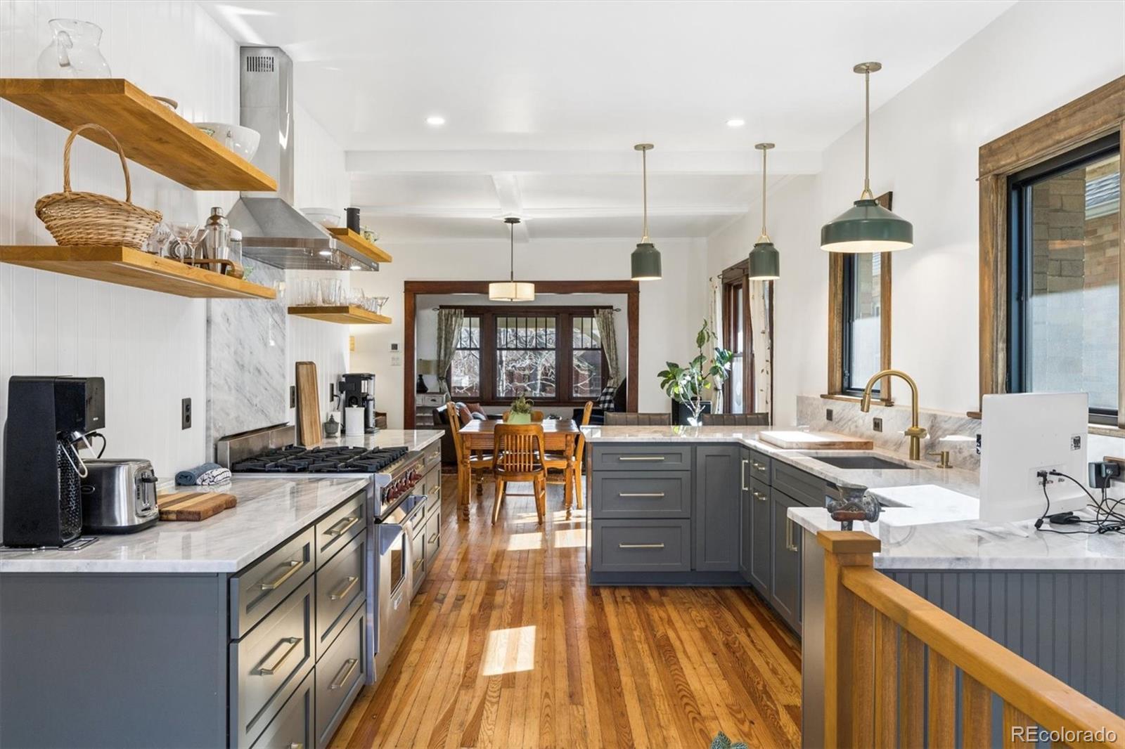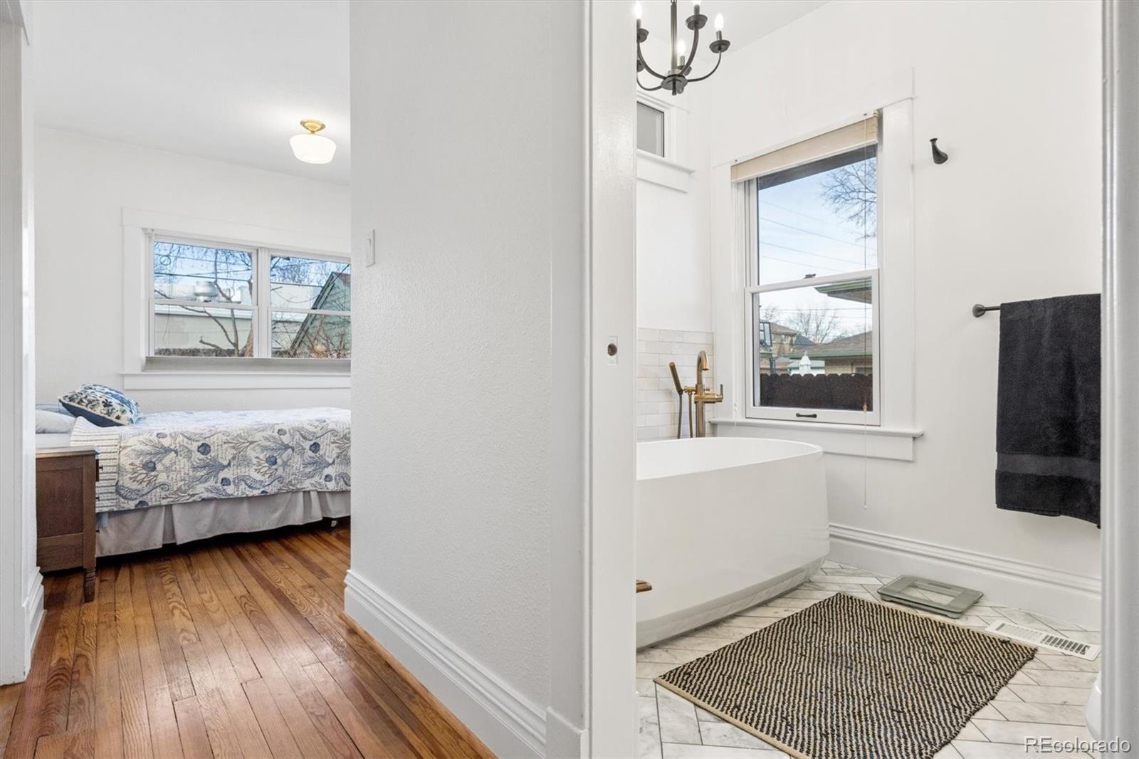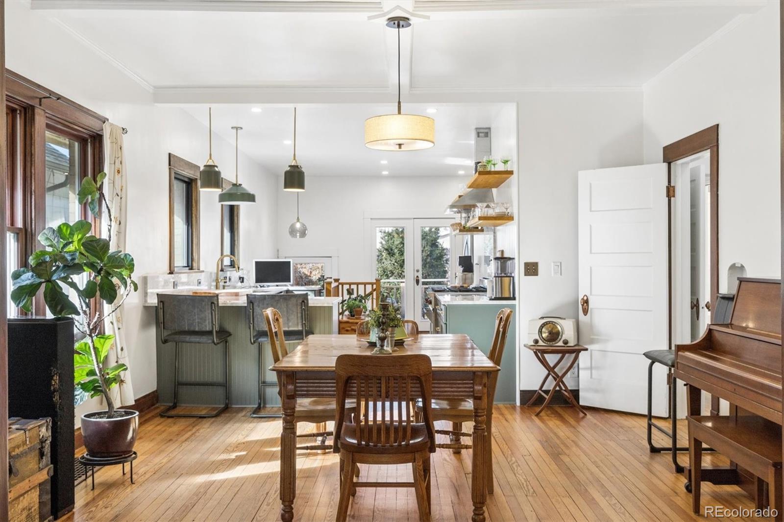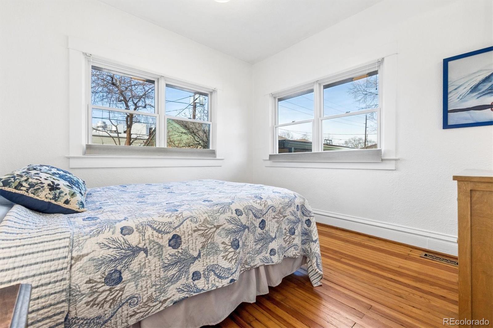 Classic Bungalow in Congress Park with an historic feel, including the thoughtful remodel. Truly it's like everything behind the plaster is new. And, lucky you, this quintessential floor plan has a twist - two bathrooms on the main! The primary bedroom has an en-suite bathroom, a coveted rarity. Plus you'll find an additional bedroom and bath on the main floor. This entire home is completely remodeled and looks fabulous. This is THE classic with an elevated aesthetic. The open kitchen is absolutely stunning. The custom cabinetry in the kitchen is top notch with special storage drawers in the pantry and drawers for plates and glasses to preserve the open shelving look. Six burner gas Wolf range with vent hood. New dishwasher and refrigerator. Each detail delights - the button light switches are period accurate but installed only recently - no knob and tube wiring behind that plate. All of the work was done in the past couple of years, but this is as far from a fix and flip as you can get. The seller did it for himself and spared no expense. Original hardwood floors, original unpainted wood trim, original doors and door hardware (all matching), original mouldings and exterior. Congress Park is perfect for relaxing on your shaded front porch - a sanctuary in the city. In the basement, you'll find a wonderful great room with egress windows, a third bedroom, also with egress windows, laundry and a full bath. There's still room for an office, too. This home is eco-friendly with a high efficiency furnace and central air, and a new roof in 2025 with a 3.6 kW solar shingle system that is low-profile and integrated right into the roofing material. And the best part is that the solar is seller owned - no leases or loans. Walk two blocks to Blue Pan Pizza, The French Press, a local grocery/liquor store, sushi, Mary Martha's gift shop and flowers. Walk a bit farther for upscale Cherry Creek, or head north to Colfax and Natural Grocers, etc. A prime find, book an appointment.