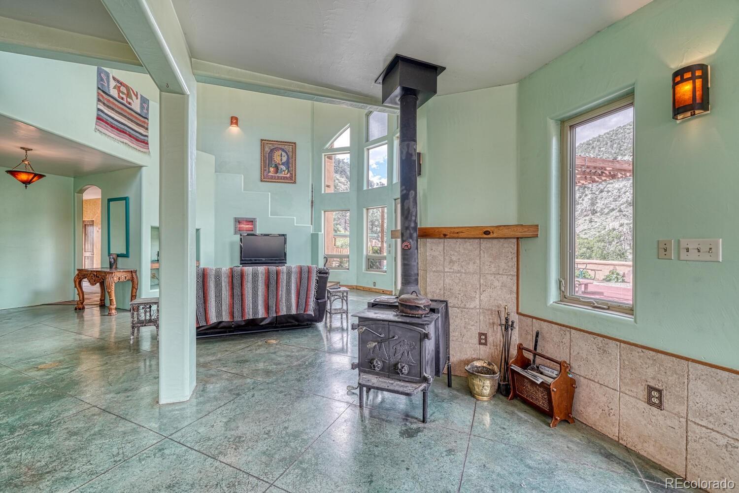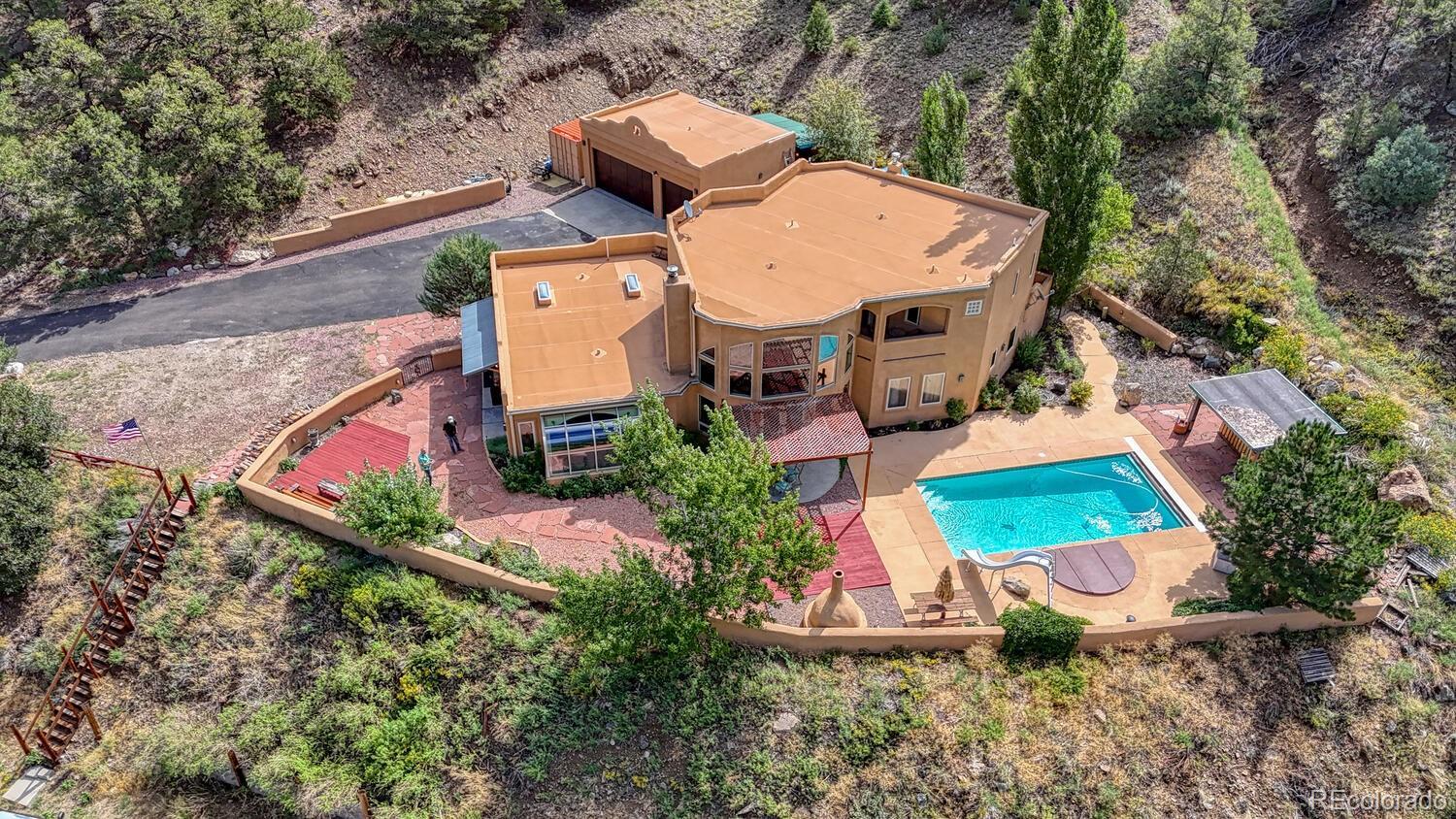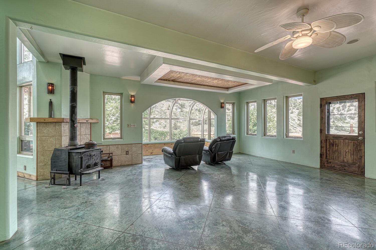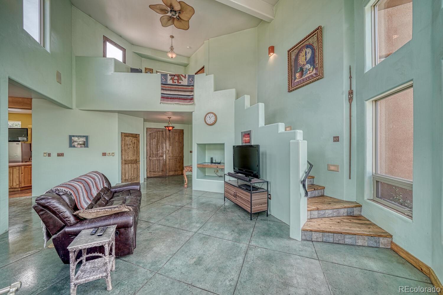 Welcome to this one-of-a-kind custom Spanish-style home, a true gem nestled at the base of Poncha Pass with breathtaking views of the Arkansas River Valley. Situated on over 37 acres, with more than half a mile of Poncha Creek frontage, this 3-bedroom, 3-bath home & 3 Car Garage this property offers the perfect balance of luxury, privacy, and mountain living. The home boasts an open, expansive floor plan with floor-to-ceiling windows and an impressive front room with vaulted ceilings soaring over 26 feet, filling the space with natural light and panoramic views. Whether you’re seeking a peaceful mountain retreat or a permanent residence, this property offers timeless elegance and functionality, with ample space to grow and entertain. The gourmet kitchen is a chef’s dream, featuring a large baker’s island, stainless steel appliances, a gas range & oven, microwave, and dishwasher. Custom alder hardwood cabinetry surrounds the 12’ x 4’ butcher block island, providing ample storage for all your culinary needs. The vaulted ceilings throughout the home create a bright, airy atmosphere, seamlessly blending the living, dining, and outdoor spaces. The back patio is an entertainer’s paradise, complete with a custom-built Kiva fireplace, tiki bar, and in-ground swimming pool & Jacuzzi, offering endless opportunities to host family and friends. All rooms are equipped with ceiling fans, in-floor heating, and central vacuum for ultimate comfort and convenience. The property’s 37 acres is sub-dividable along the creek by following a ROSI (Rural Open Space Initiative - Chaffee County Land Use Plan), allowing for future expansion or development. Additional highlights include private balconies off the master suite, an oversized walk-in closet, a heated garage shower, a dog run, greenhouse, irrigated courtyard, and so much more! Call today to schedule your private tour and make this stunning property your own!