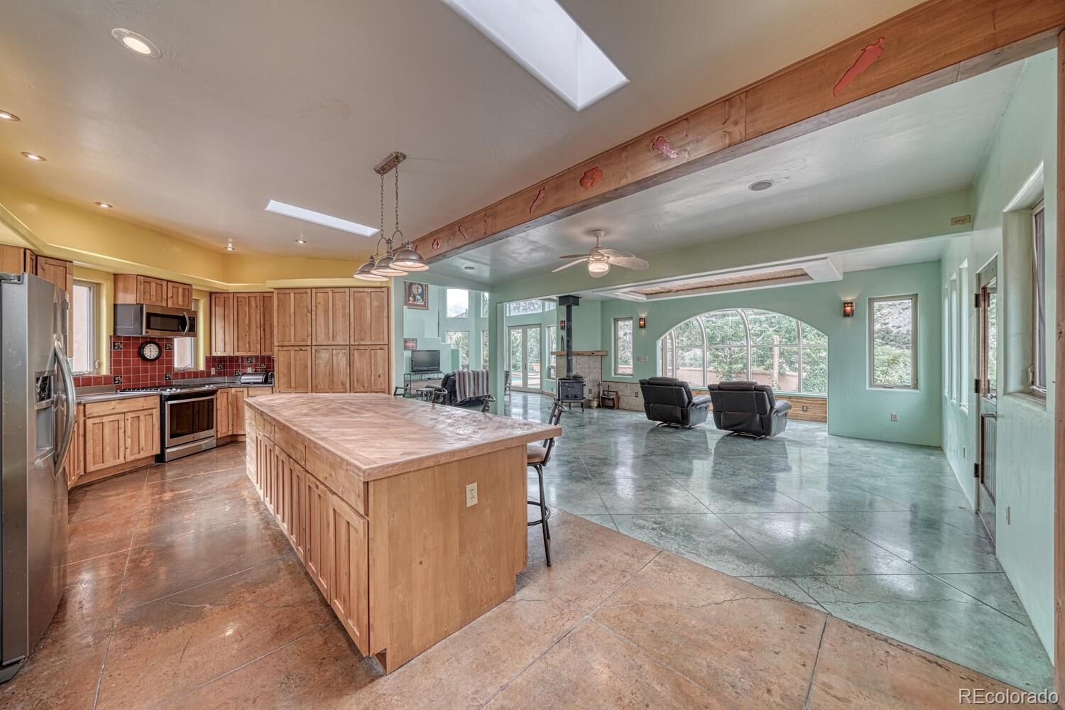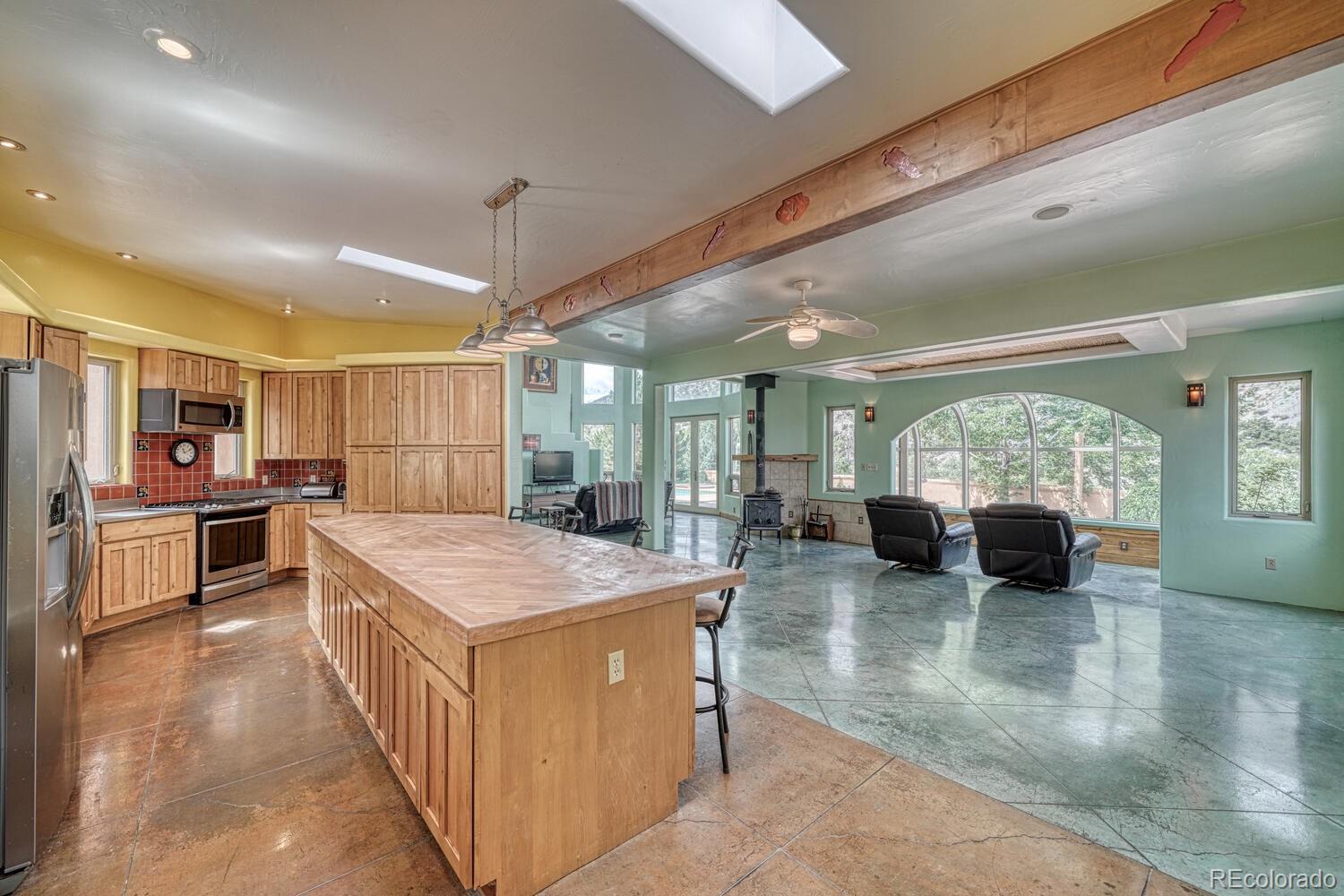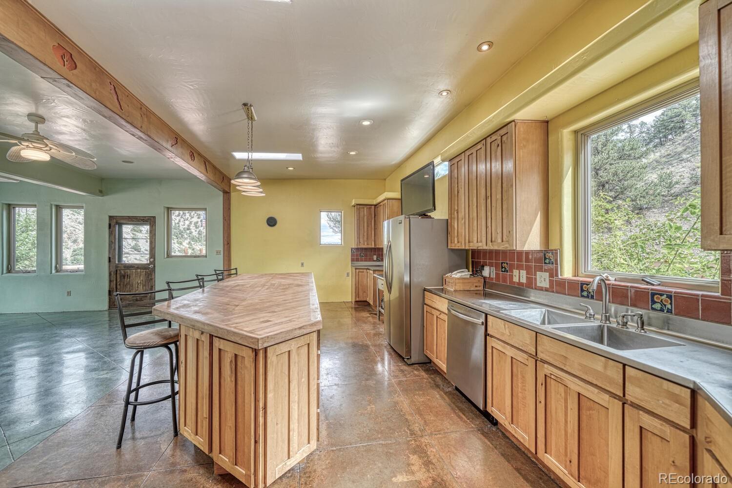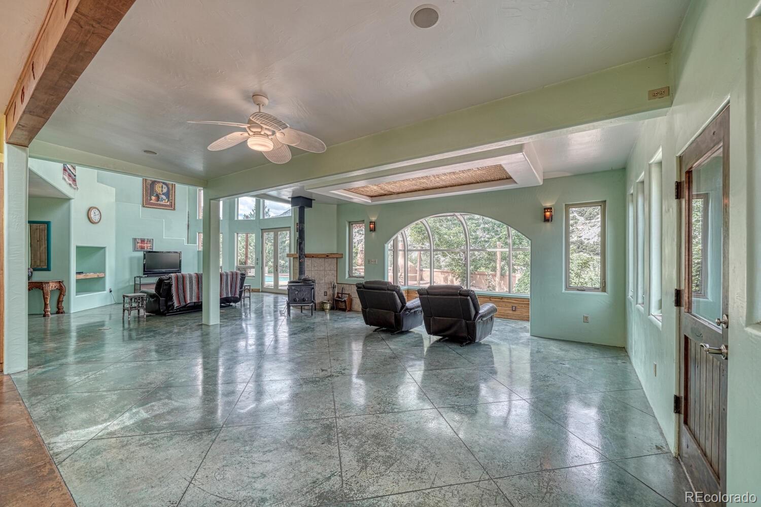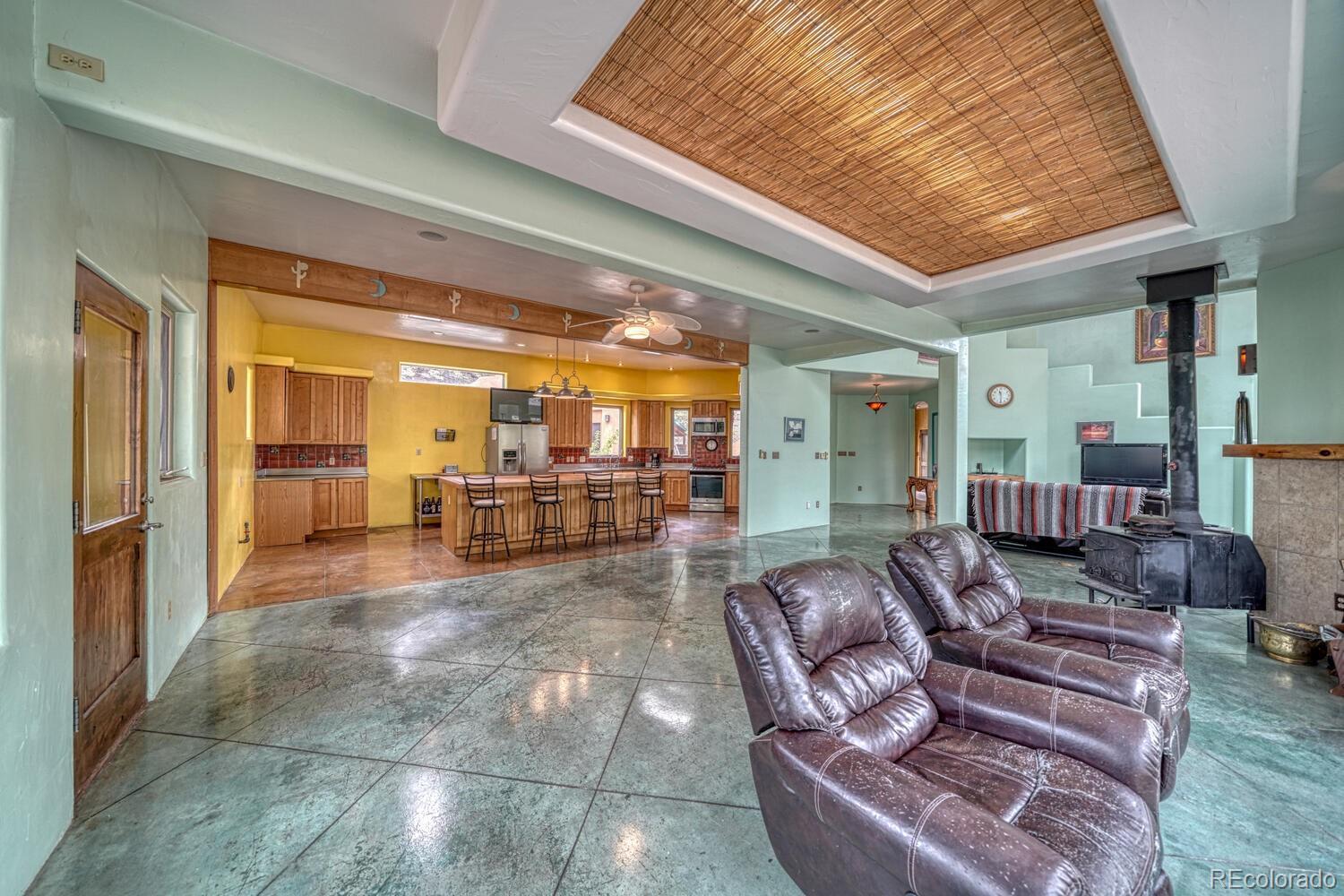 Welcome to this one-of-a-kind custom Spanish-style home, a true gem nestled at the base of Poncha Pass with breathtaking views of the Arkansas River Valley. Situated on over 37 acres, with more than half a mile of Poncha Creek frontage, this 3-bedroom, 3-bath home & 3 Car Garage this property offers the perfect balance of luxury, privacy, and mountain living. The home boasts an open, expansive floor plan with floor-to-ceiling windows and an impressive front room with vaulted ceilings soaring over 26 feet, filling the space with natural light and panoramic views. Whether you’re seeking a peaceful mountain retreat or a permanent residence, this property offers timeless elegance and functionality, with ample space to grow and entertain. The gourmet kitchen is a chef’s dream, featuring a large baker’s island, stainless steel appliances, a gas range & oven, microwave, and dishwasher. Custom alder hardwood cabinetry surrounds the 12’ x 4’ butcher block island, providing ample storage for all your culinary needs. The vaulted ceilings throughout the home create a bright, airy atmosphere, seamlessly blending the living, dining, and outdoor spaces. The back patio is an entertainer’s paradise, complete with a custom-built Kiva fireplace, tiki bar, and in-ground swimming pool & Jacuzzi, offering endless opportunities to host family and friends. All rooms are equipped with ceiling fans, in-floor heating, and central vacuum for ultimate comfort and convenience. The property’s 37 acres is sub-dividable along the creek by following a ROSI (Rural Open Space Initiative - Chaffee County Land Use Plan), allowing for future expansion or development. Additional highlights include private balconies off the master suite, an oversized walk-in closet, a heated garage shower, a dog run, greenhouse, irrigated courtyard, and so much more! Call today to schedule your private tour and make this stunning property your own!