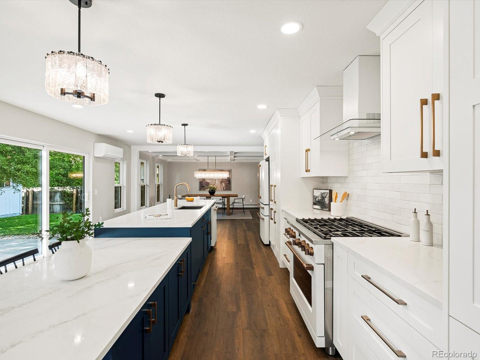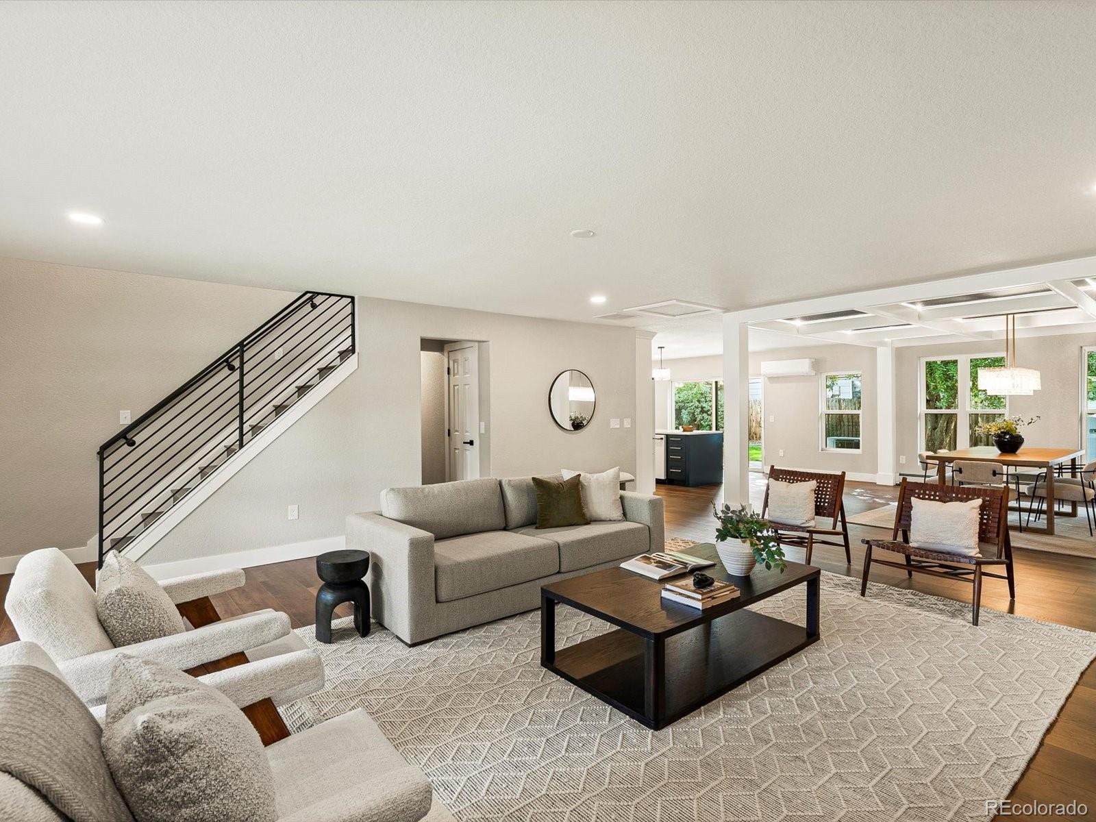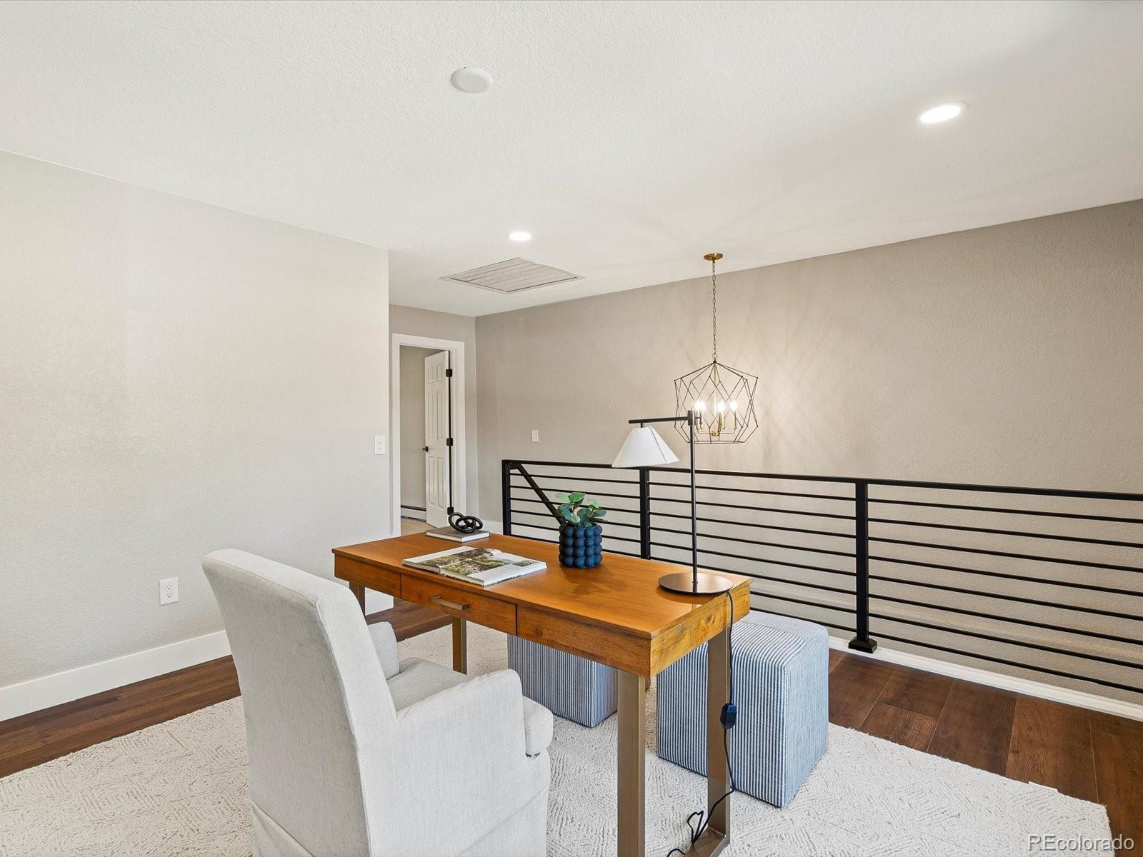 A rare opportunity on Eisenhower Park—this fully reimagined home lives like new construction, blending modern design, thoughtful functionality & elevated luxury. At the heart of the home, the custom-designed eat-in kitchen was created for both daily living & entertaining. Seamless indoor-outdoor flow connects this chef’s space—complete with designer cabinetry, quartz countertops, premium appliances & a hidden walk-in pantry—to a spacious backyard with dual patios. The covered patio, with gas hook-up, invites year-round gatherings. In the dining room, illuminated coffered ceilings, a statement chandelier & expansive windows bathe the space in natural light. Wide-plank flooring, new windows, custom railings & a white oak entry door establish a refined yet welcoming atmosphere. Two additional main-level bedrooms, a full bath & a mudroom with laundry complete the floor with both elegance & practicality. Upstairs, a versatile loft offers the perfect setting for a home office, kid space or fitness retreat. The primary suite is a sanctuary of sophistication, featuring dual sinks, striking quartzite stone, a freestanding soaking tub & an oversized walk-in shower. A custom closet system by Closets by Design elevates both function & style. Extending from the primary suite, the south-facing private rooftop Trex deck crowns the home with sweeping park views & unforgettable sunsets. Upstairs, a generous secondary bedroom includes its own bath & walk-in closet. Peace of mind comes with extensive upgrades: new roof, gutters, fascia, soffits, Trex decking, railings, siding, 3 mini-splits, baseboard hot water registers, hot water heater, plumbing fixtures & more. From its refined interiors to its unmatched park-side setting, this residence delivers a rare blend of luxury, lifestyle & lasting value in one of Denver’s most desirable neighborhoods. Proximity to Eisenhower Park, the Rec Center, High Line Canal, Wellshire Golf Course & endless shopping/dining further elevate its appeal.