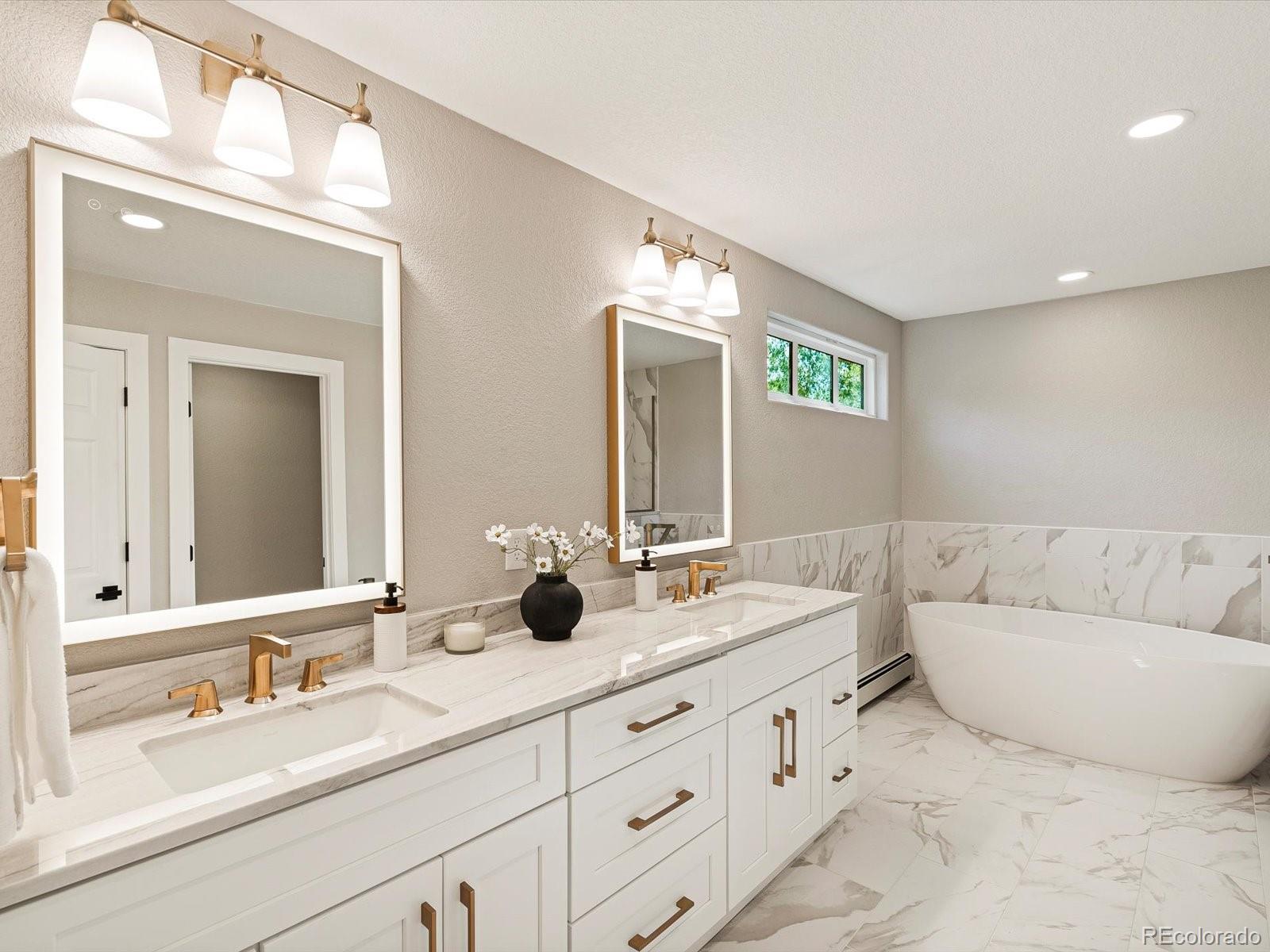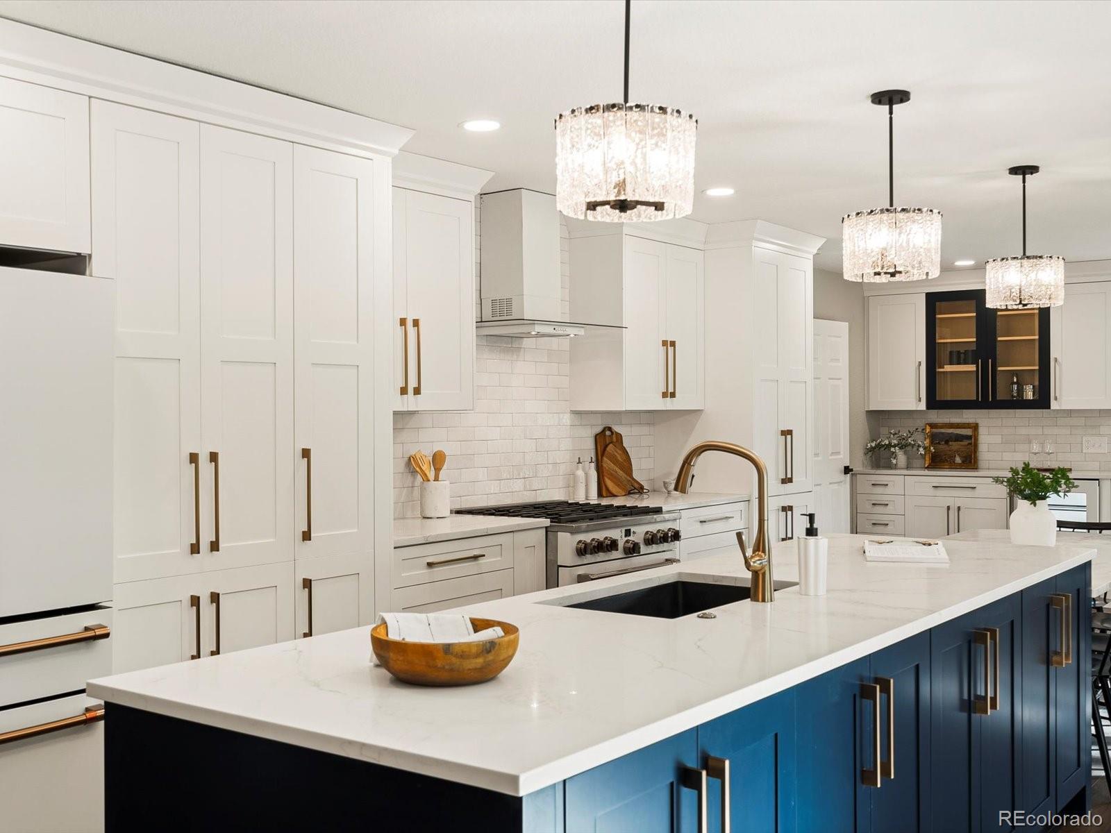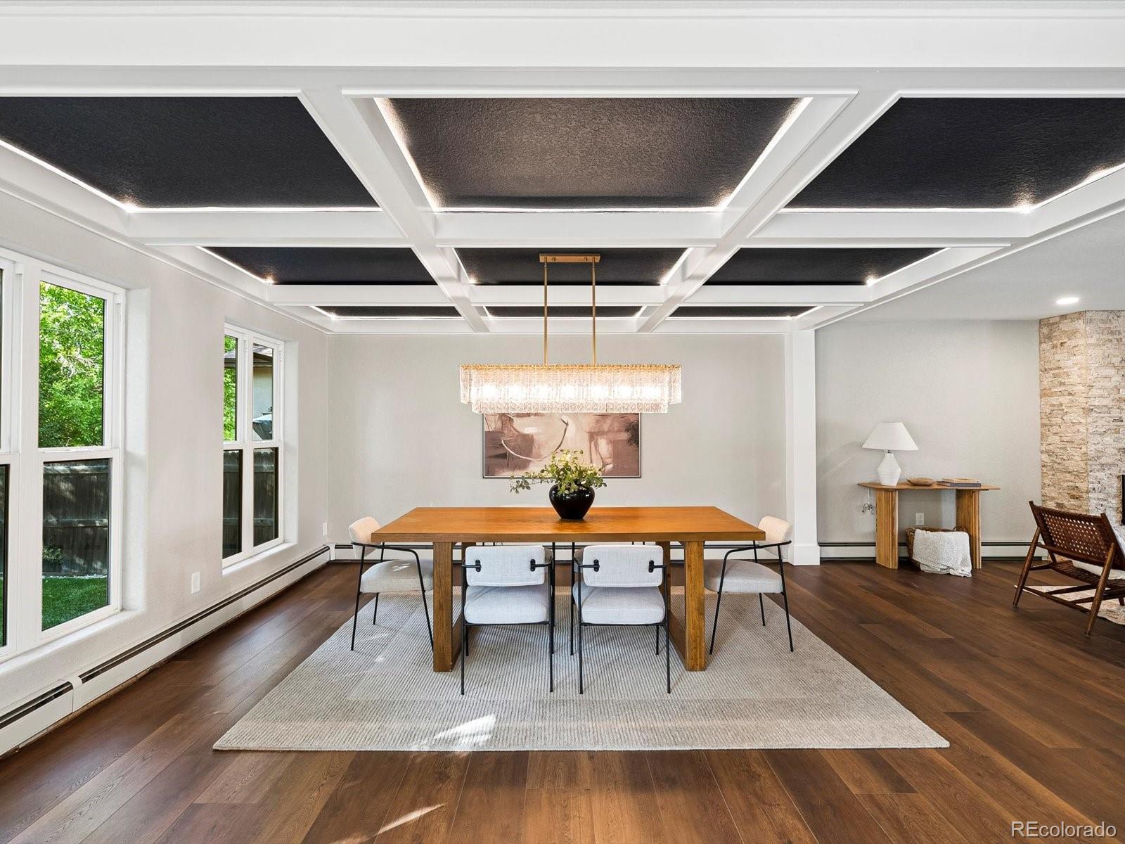 A rare opportunity on Eisenhower Park—this fully reimagined home lives like new construction, blending modern design, thoughtful functionality & elevated luxury. At the heart of the home, the custom-designed eat-in kitchen was created for both daily living & entertaining. Seamless indoor-outdoor flow connects this chef’s space—complete with designer cabinetry, quartz countertops, premium appliances & a hidden walk-in pantry—to a spacious backyard with dual patios. The covered patio, with gas hook-up, invites year-round gatherings. In the dining room, illuminated coffered ceilings, a statement chandelier & expansive windows bathe the space in natural light. Wide-plank flooring, new windows, custom railings & a white oak entry door establish a refined yet welcoming atmosphere. Two additional main-level bedrooms, a full bath & a mudroom with laundry complete the floor with both elegance & practicality. Upstairs, a versatile loft offers the perfect setting for a home office, kid space or fitness retreat. The primary suite is a sanctuary of sophistication, featuring dual sinks, striking quartzite stone, a freestanding soaking tub & an oversized walk-in shower. A custom closet system by Closets by Design elevates both function & style. Extending from the primary suite, the south-facing private rooftop Trex deck crowns the home with sweeping park views & unforgettable sunsets. Upstairs, a generous secondary bedroom includes its own bath & walk-in closet. Peace of mind comes with extensive upgrades: new roof, gutters, fascia, soffits, Trex decking, railings, siding, 3 mini-splits, baseboard hot water registers, hot water heater, plumbing fixtures & more. From its refined interiors to its unmatched park-side setting, this residence delivers a rare blend of luxury, lifestyle & lasting value in one of Denver’s most desirable neighborhoods. Proximity to Eisenhower Park, the Rec Center, High Line Canal, Wellshire Golf Course & endless shopping/dining further elevate its appeal.