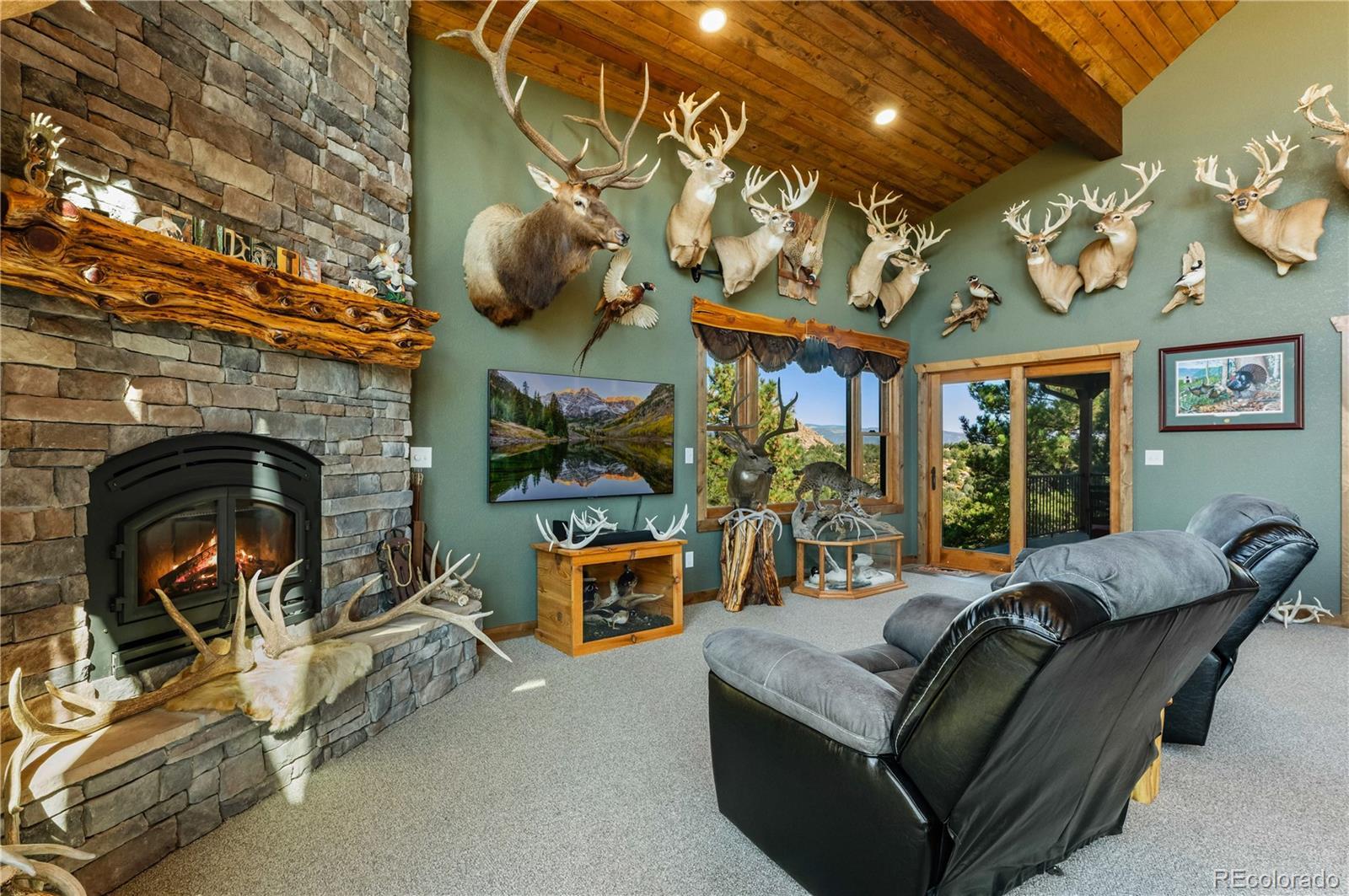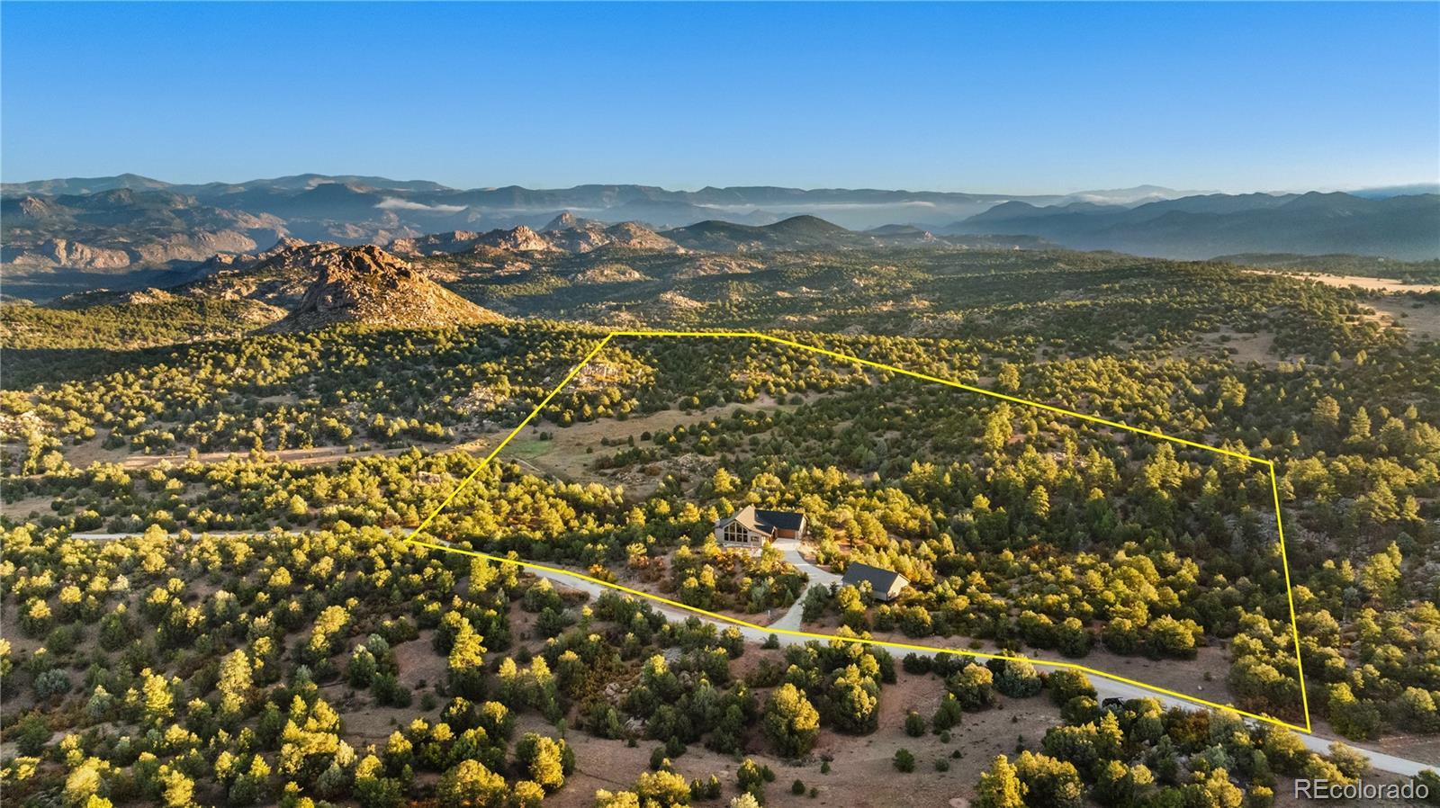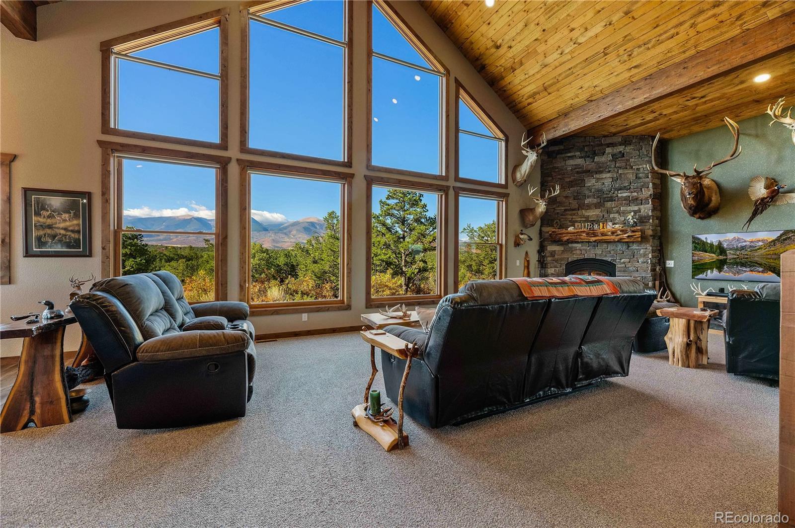 This exceptional custom-built home in the Eagle Peak Ranch area of Fremont County offers stunning mountain views, quality craftsmanship, and direct access to thousands of acres of BLM land. Located near Cotopaxi, Colorado, the property blends privacy with expansive vistas of the Sangre de Cristo Mountains, Pikes Peak, and Greenhorn Mountain. The residence features two bedrooms and two and a half bathrooms with an A-frame vaulted ceiling and floor-to-ceiling windows framing breathtaking views. The open-concept main level highlights wood-clad walls, a stone fireplace with a red cedar mantle, and warm natural finishes. The kitchen and dining area are designed for both daily living and entertaining, while the loft bedroom and office overlook the living area for a cozy, functional layout. Multiple decks and patios capture sunrises and sunsets across the valley, with meadows below perfect for wildlife viewing. Deer, elk, and bear are often seen on-site, and trail camera photos on the listing showcase the area’s abundant wildlife. A deep attached garage and a 40x30 shop/barn provide ample space for vehicles, tools, and recreational gear, ideal for full-time living or a mountain getaway. The property sits in GMU 58, a popular hunting unit, and offers direct access to vast public lands for hiking, hunting, and ATV use. Sold furnished, the home includes quality pieces and modern appliances for immediate use. Access is private yet convenient—just 1.5 miles off Highway 1A on well-maintained gravel roads. Eagle Peak Ranch maintains private roads through a modest $300 annual fee with no restrictive HOA covenants. Nearby recreation includes fishing and rafting on the Arkansas River, skiing at Monarch Mountain, and visits to Cotopaxi, Westcliffe, and Canon City. A perfect balance of comfort, seclusion, and adventure in Colorado’s mountain country.