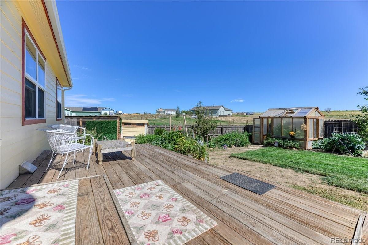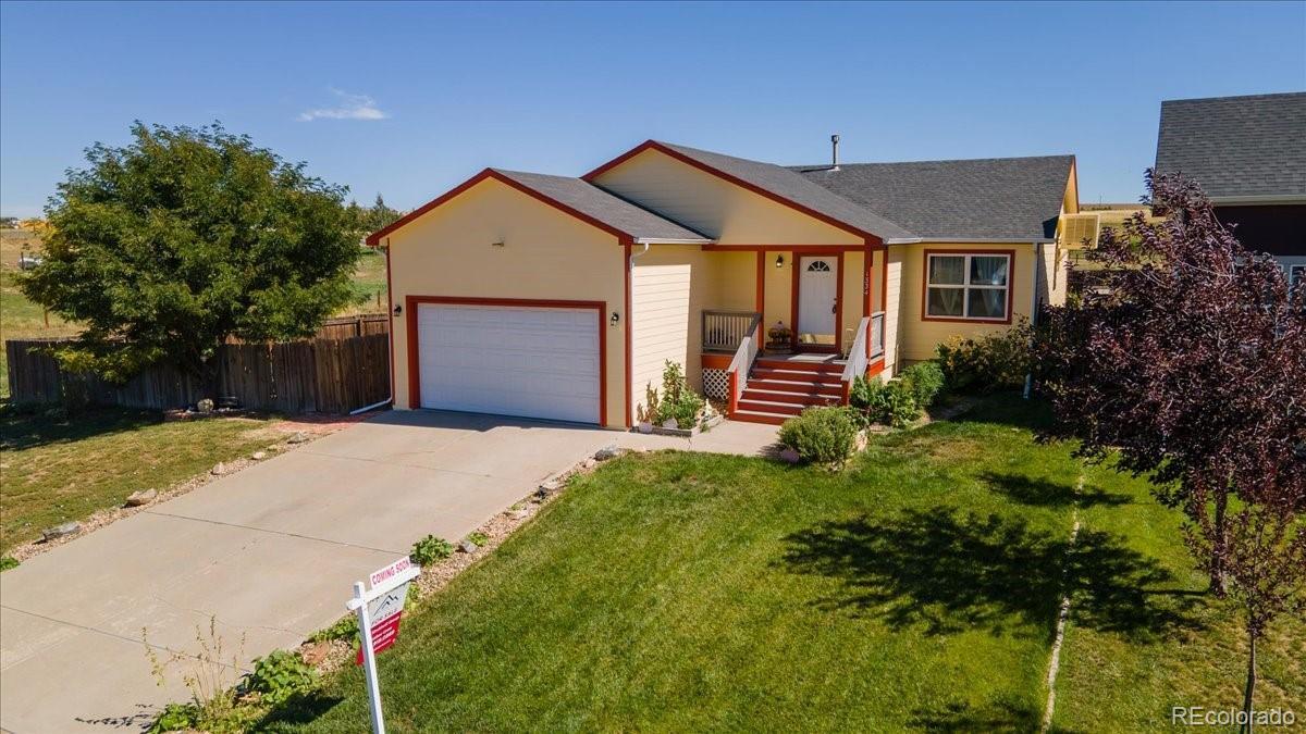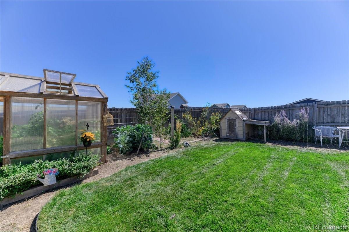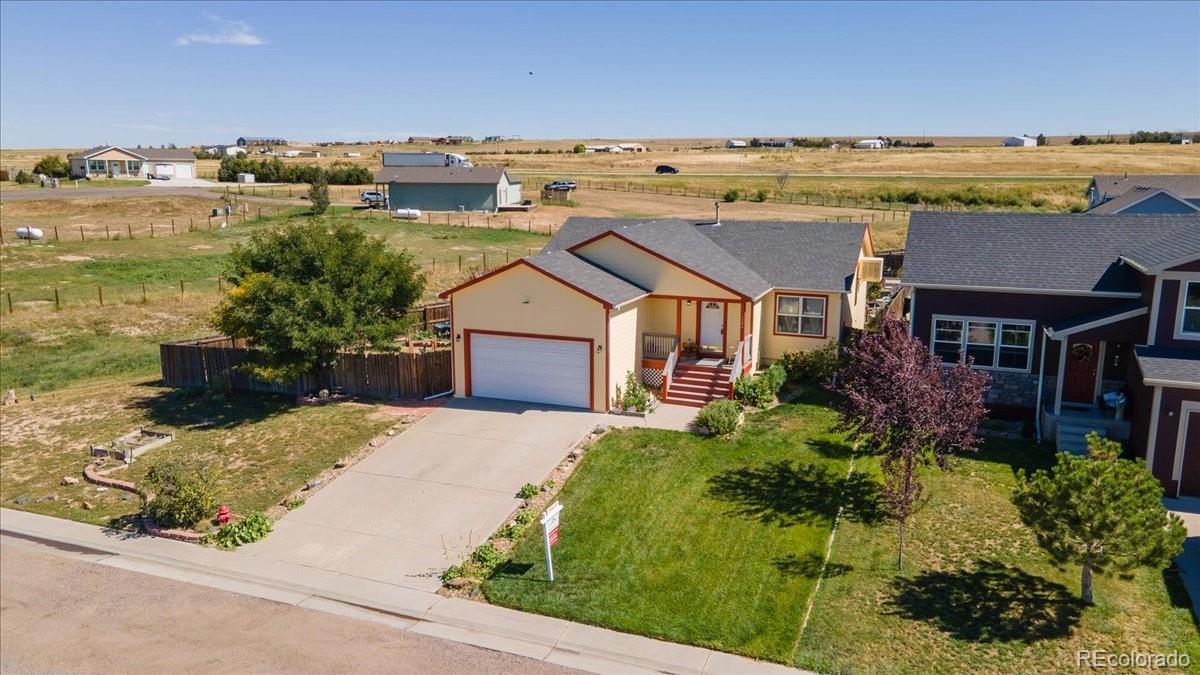 Explore this charming 4-bedroom, 2-bath home, built in 2006, featuring a unique floor plan that sets it apart from others in the area. Modern design elements—such as an interior transom and vaulted ceilings—enhance the natural light flowing from the living room into the kitchen. Set on nearly half an acre, this residence offers ample space and a seamless connection between indoor and outdoor living. The spacious kitchen provides abundant cabinetry, a large pantry closet, and a dining area with a butler’s counter and shelving—perfect for showcasing fresh produce from your garden. The primary suite offers a private 5-piece en-suite bathroom, creating a tranquil retreat at the end of each day. The main floor also includes an additional bedroom, a 3/4 bath, and a laundry room. Head downstairs to the partially finished basement, where you’ll find two conforming bedrooms, an expansive media room, and generous storage space with rough-in plumbing for an additional bathroom. The backyard is a gardener’s paradise—filled with fruits, fruit trees, herbs, and vegetables, and complete with a built-in chicken coop and greenhouse. Even with these abundant features, there is still plenty of yard space for pets, children, or simply relaxing. Located on a corner lot in a quiet neighborhood, this property spans nearly half an acre and includes a generous two-car attached garage with additional parking in front. This delightful small town has much to offer. The newly built K–12 school (2019) operates on a four-day week (Monday–Thursday), with small class sizes and dedicated teachers. Enjoy friendly neighbors in a peaceful community where you might even spot horses strolling by. Experience the perfect blend of rural charm and modern comfort—just an hour from Denver.