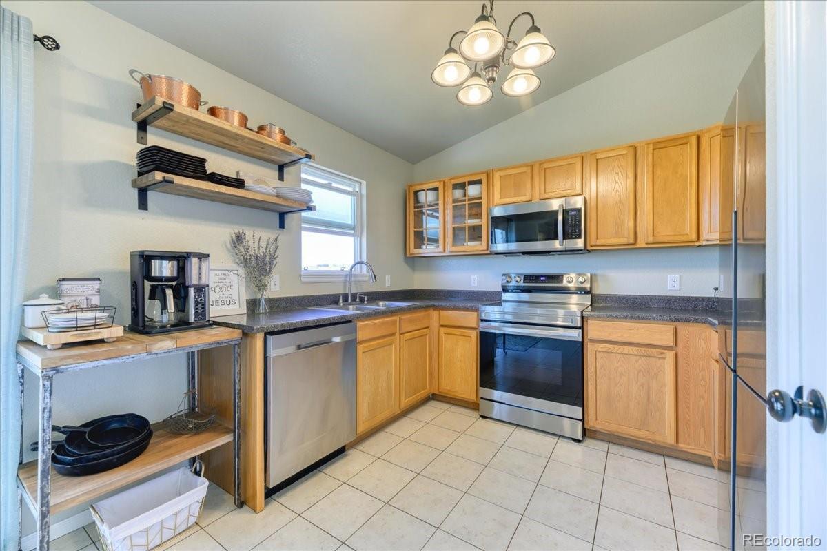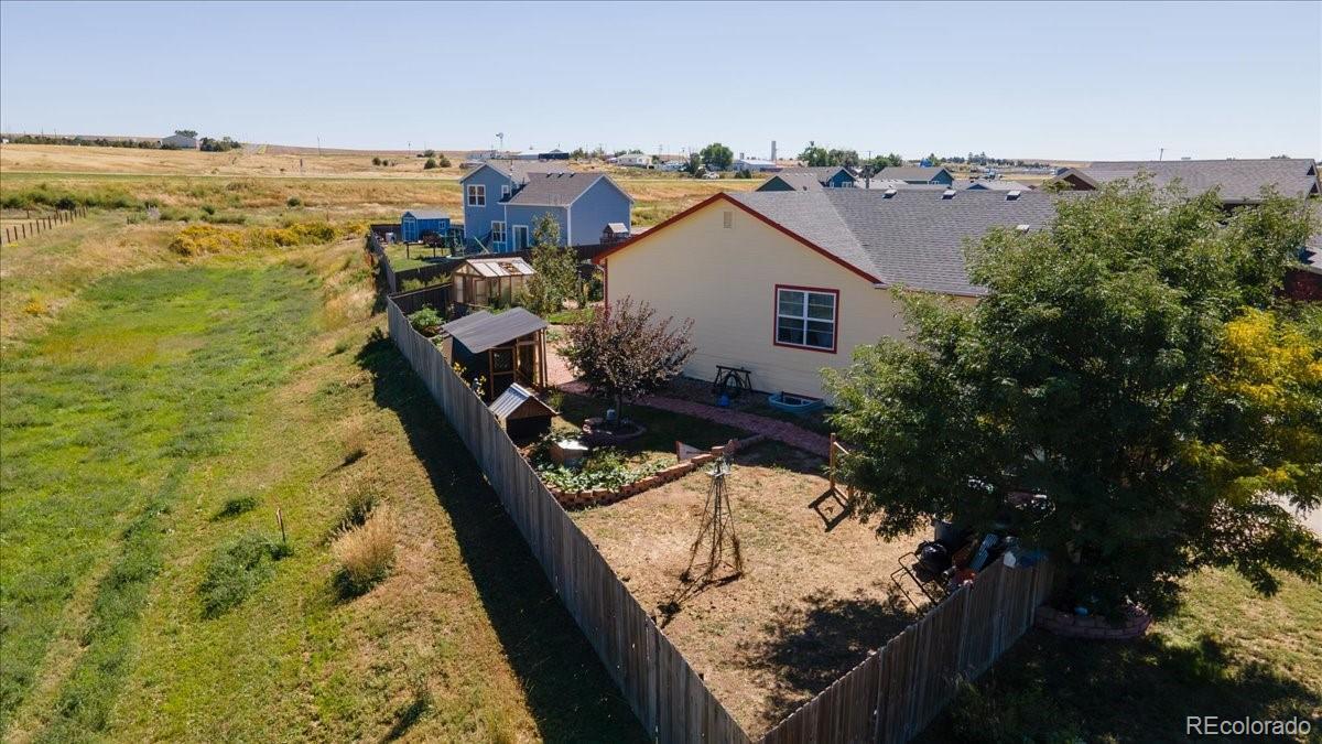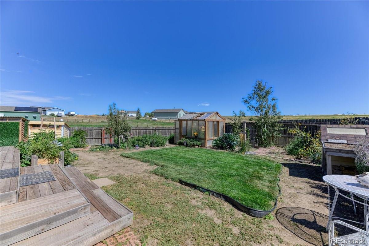 Explore this charming 4-bedroom, 2-bath home, built in 2006, featuring a unique floor plan that sets it apart from others in the area. Modern design elements—such as an interior transom and vaulted ceilings—enhance the natural light flowing from the living room into the kitchen. Set on nearly half an acre, this residence offers ample space and a seamless connection between indoor and outdoor living. The spacious kitchen provides abundant cabinetry, a large pantry closet, and a dining area with a butler’s counter and shelving—perfect for showcasing fresh produce from your garden. The primary suite offers a private 5-piece en-suite bathroom, creating a tranquil retreat at the end of each day. The main floor also includes an additional bedroom, a 3/4 bath, and a laundry room. Head downstairs to the partially finished basement, where you’ll find two conforming bedrooms, an expansive media room, and generous storage space with rough-in plumbing for an additional bathroom. The backyard is a gardener’s paradise—filled with fruits, fruit trees, herbs, and vegetables, and complete with a built-in chicken coop and greenhouse. Even with these abundant features, there is still plenty of yard space for pets, children, or simply relaxing. Located on a corner lot in a quiet neighborhood, this property spans nearly half an acre and includes a generous two-car attached garage with additional parking in front. This delightful small town has much to offer. The newly built K–12 school (2019) operates on a four-day week (Monday–Thursday), with small class sizes and dedicated teachers. Enjoy friendly neighbors in a peaceful community where you might even spot horses strolling by. Experience the perfect blend of rural charm and modern comfort—just an hour from Denver.