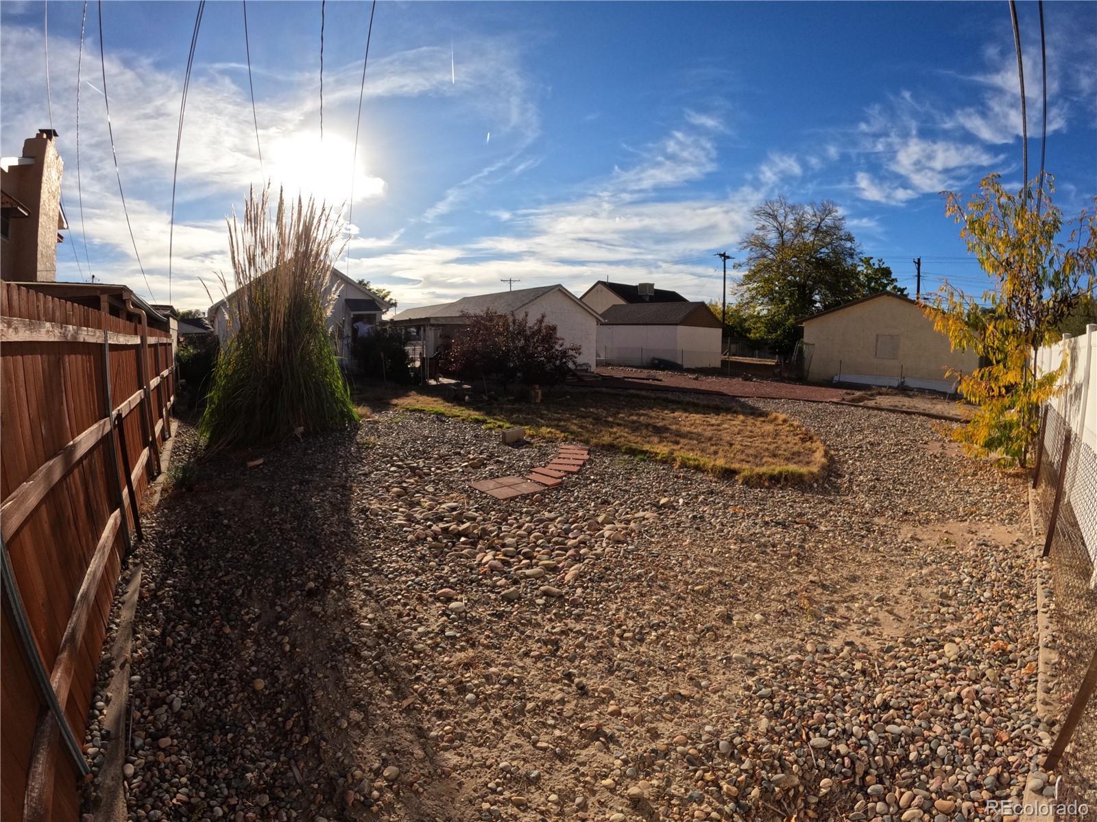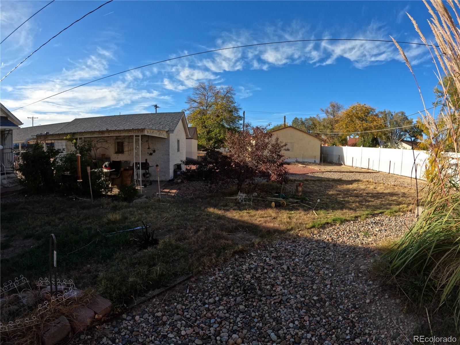 A stucco and concrete 2 bed home on a LARGE LOT in a historic area of Pueblo. This beautiful brick-fronted house features a garage and carport for 2 parking spaces with gravel area on the side where RVs or other large items could be parked. The yard is very well maintained with a combination of pebbles and grassy area, a patio, and a big area in the back of the lot where a storage shed or accessory building could be constructed. This property has amazing potential for a buyer who wants a spacious fenced yard! Prior asbestos was removed professionally by seller's contractor and windows are recently replaced as well. Location is walkable to Henkle Park and the Arkansas Riverwalk area. Full photo set coming soon!