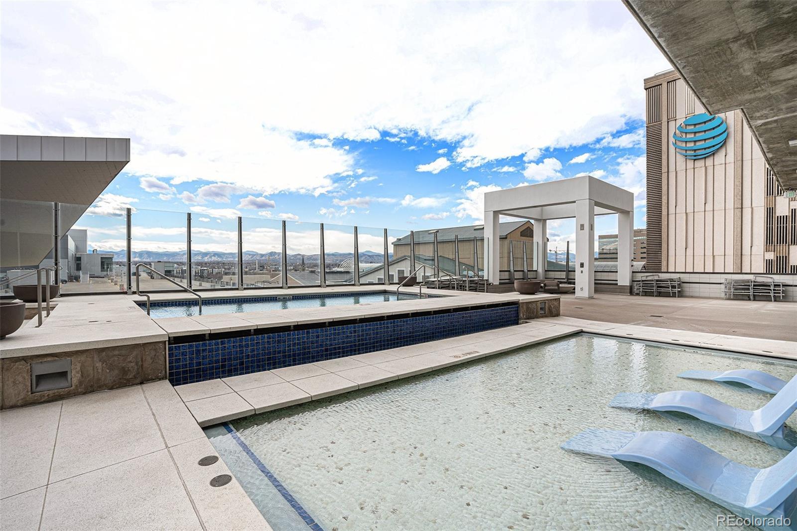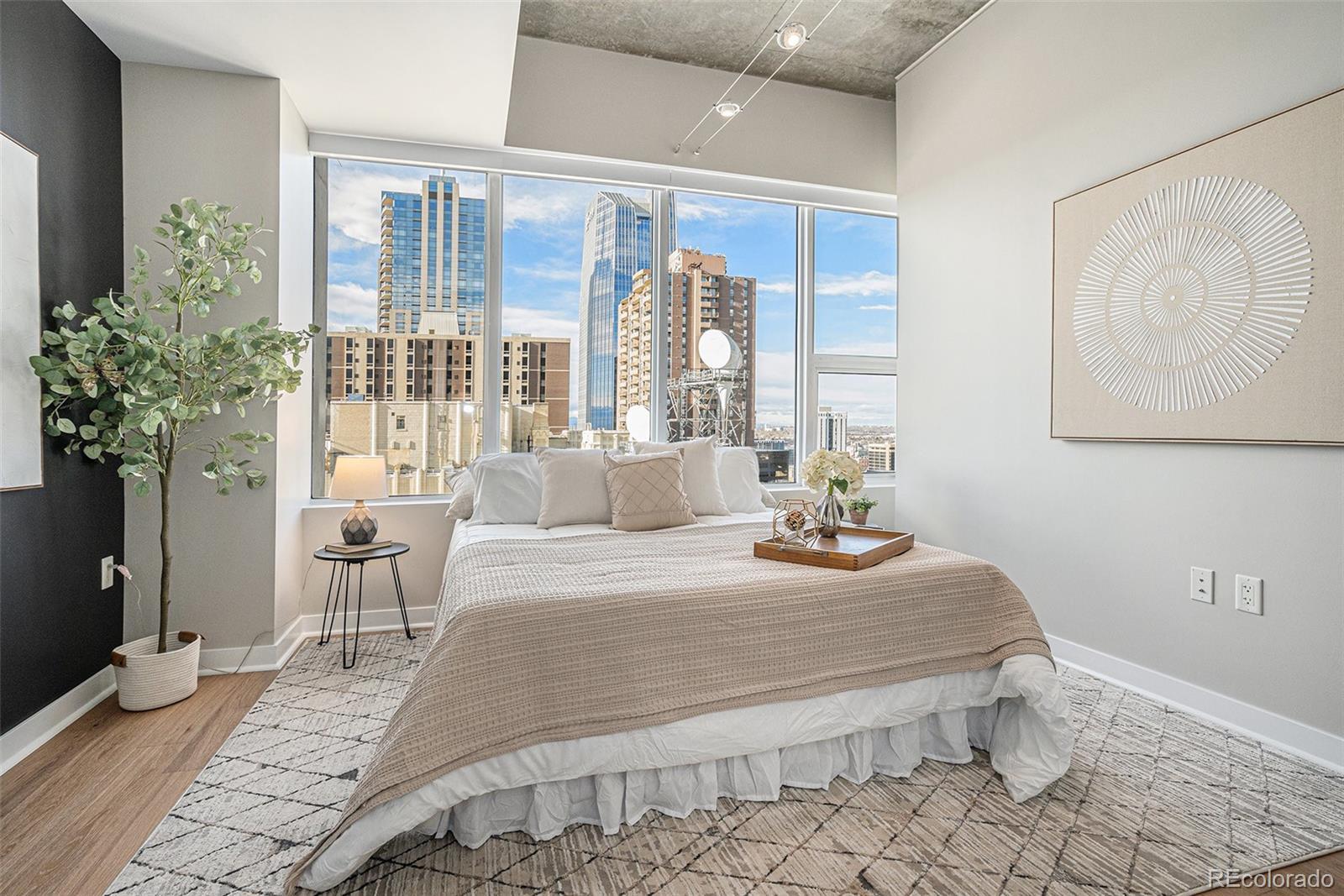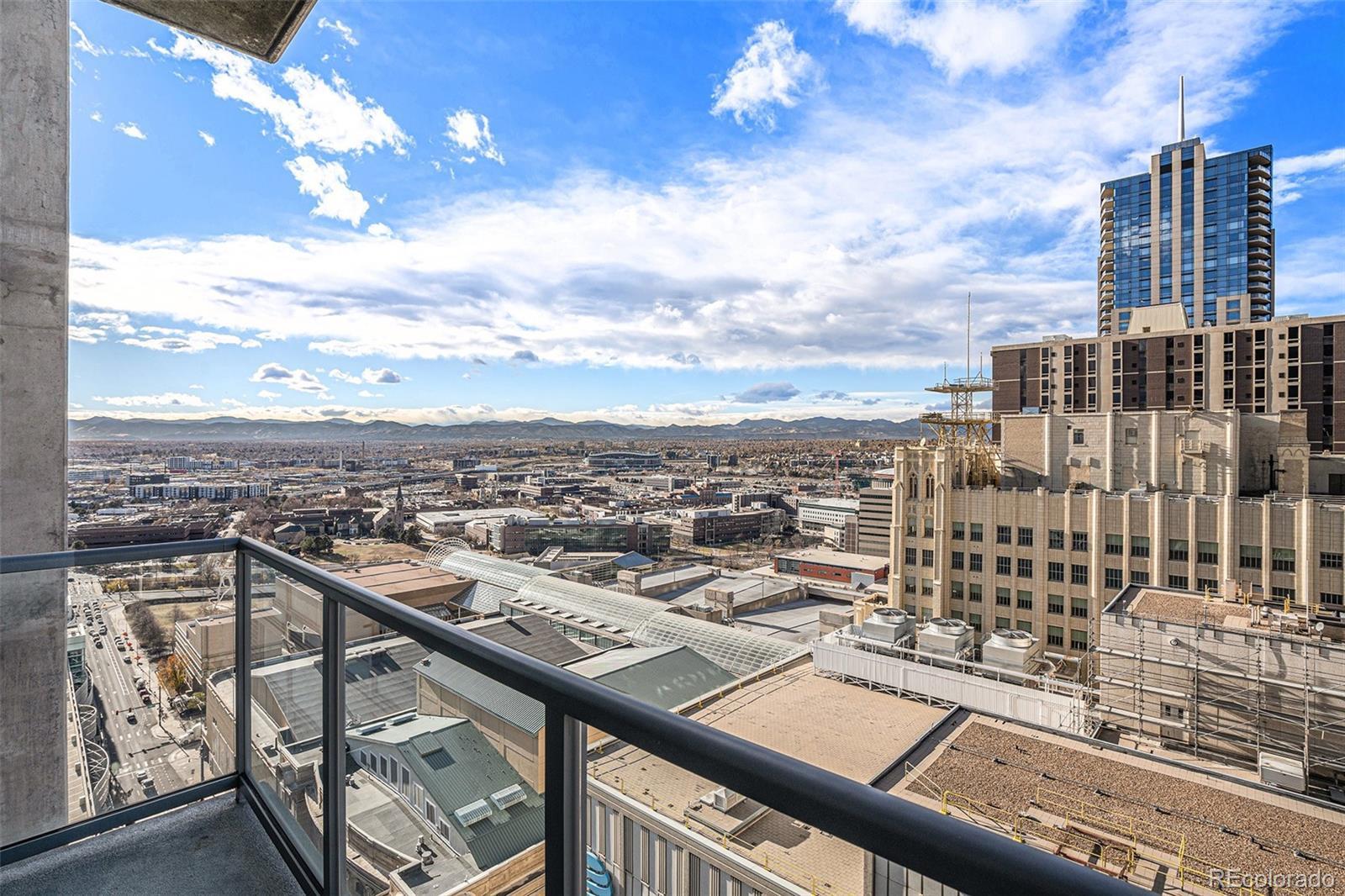 Spectacular residence at SPIRE showcasing floor-to-ceiling views of the Rocky Mountains, Downtown Denver’s vibrant cityscape, and the vast beauty that defines Colorado living. Flooded with natural light, the open-concept layout features soaring ceilings and a warm-yet-modern aesthetic blending cozy comfort with industrial-chic touches, including partial concrete ceilings, brand-new wood flooring, and fresh paint throughout. The kitchen offers a generous island, granite countertops, and stainless-steel appliances, opening seamlessly into the inviting living room and private balcony, perfect for fresh air and taking in the breathtaking panoramas. A built-in desk provides an easy home workspace or transform the second bedroom into a stylish office or guest room. The spacious primary suite is a true retreat, complete with sweeping views, a walk-in closet, and a luxurious 5-piece bath. A well-placed second bathroom ensures ideal convenience for guests. An in-unit washer and dryer (included), one dedicated parking space in the garage, and a storage unit add to the ease of everyday living. SPIRE offers an unmatched amenity package with over 40,000 sq. ft. of lifestyle perks: year-round heated pools, hot tub, fire pit, grilling stations, a state-of-the-art fitness center, co-working spaces, a theater room, residents’ lounge, and even a dedicated dog park. The building also provides 24-hour courtesy desk service, security, and bundled utilities including internet & cable. Situated in the heart of LoDo, you’re just steps from premier dining, shopping, the Convention Center, Light Rail, 16th Street Mall, Performing Arts Complex, Ball Arena, Larimer Square, Coors Field, Union Station, and Denver’s best nightlife. This home offers urban luxury at its finest with the perfect balance of excitement and relaxation.