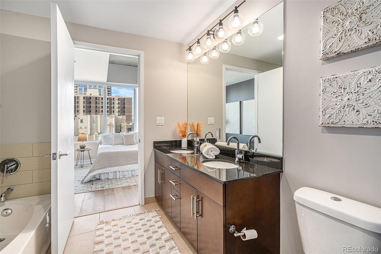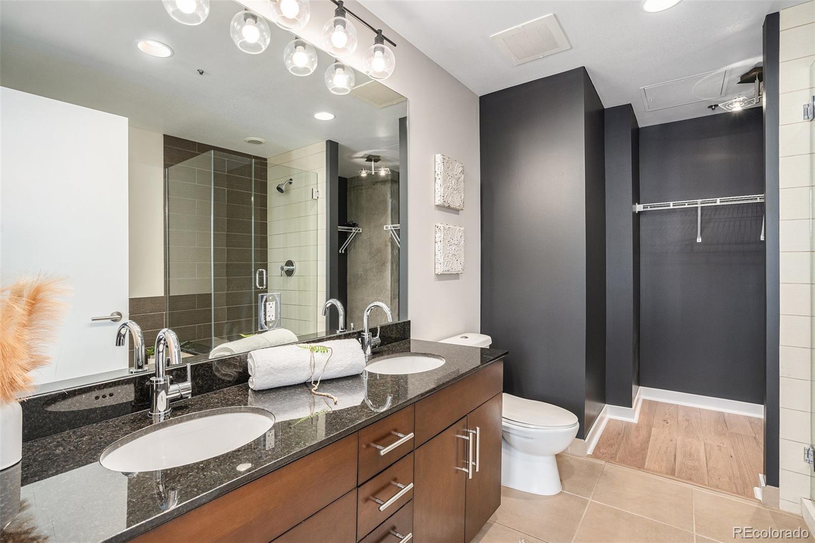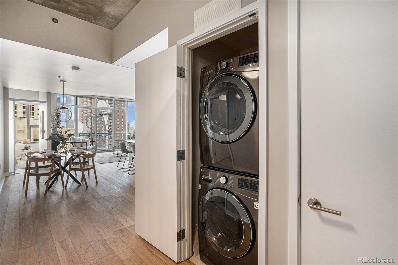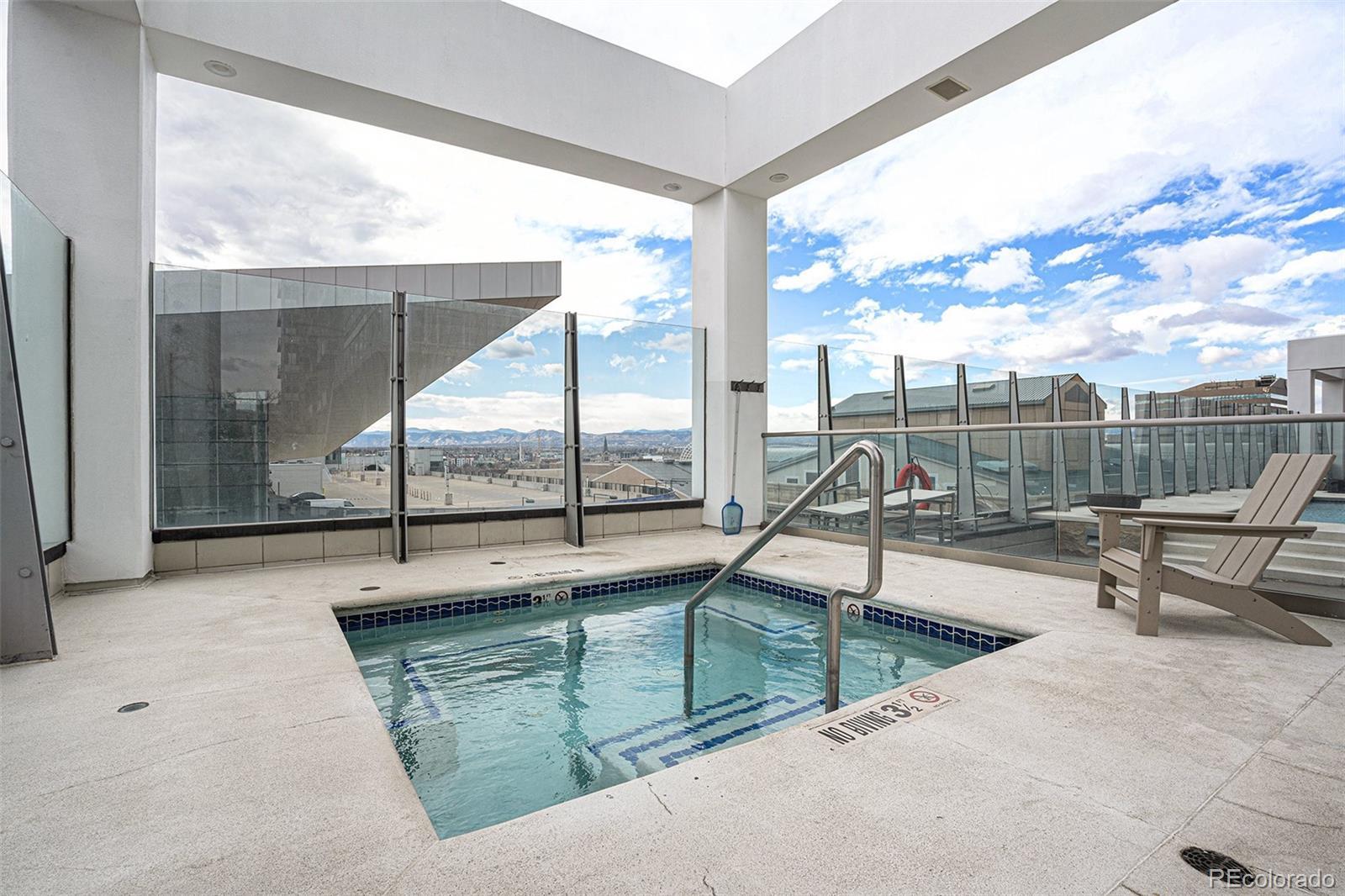 Spectacular residence at SPIRE showcasing floor-to-ceiling views of the Rocky Mountains, Downtown Denver’s vibrant cityscape, and the vast beauty that defines Colorado living. Flooded with natural light, the open-concept layout features soaring ceilings and a warm-yet-modern aesthetic blending cozy comfort with industrial-chic touches, including partial concrete ceilings, brand-new wood flooring, and fresh paint throughout. The kitchen offers a generous island, granite countertops, and stainless-steel appliances, opening seamlessly into the inviting living room and private balcony, perfect for fresh air and taking in the breathtaking panoramas. A built-in desk provides an easy home workspace or transform the second bedroom into a stylish office or guest room. The spacious primary suite is a true retreat, complete with sweeping views, a walk-in closet, and a luxurious 5-piece bath. A well-placed second bathroom ensures ideal convenience for guests. An in-unit washer and dryer (included), one dedicated parking space in the garage, and a storage unit add to the ease of everyday living. SPIRE offers an unmatched amenity package with over 40,000 sq. ft. of lifestyle perks: year-round heated pools, hot tub, fire pit, grilling stations, a state-of-the-art fitness center, co-working spaces, a theater room, residents’ lounge, and even a dedicated dog park. The building also provides 24-hour courtesy desk service, security, and bundled utilities including internet & cable. Situated in the heart of LoDo, you’re just steps from premier dining, shopping, the Convention Center, Light Rail, 16th Street Mall, Performing Arts Complex, Ball Arena, Larimer Square, Coors Field, Union Station, and Denver’s best nightlife. This home offers urban luxury at its finest with the perfect balance of excitement and relaxation.