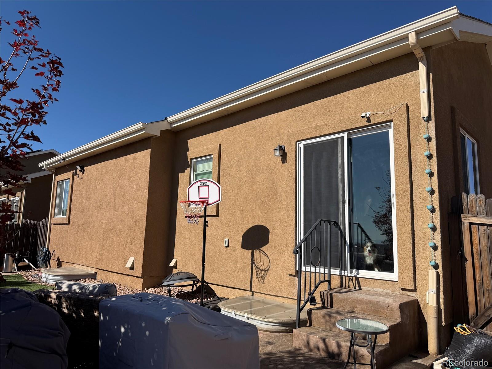 Welcome to this beautifully maintained stucco home offering 3 bedrooms, 3 bathrooms, and a spacious 2-car garage in the desirable Courtyards at Woodmen Hills West. Designed for comfort and convenience, this residence features a main-floor primary suite and ADA accessibility throughout. Step inside to warm wood floors and a thoughtful kitchen with 36" cabinets, granite countertops, and space for cooking and entertaining. The open-concept layout flows seamlessly into the living and dining areas, creating an inviting atmosphere for everyday living. Downstairs, the finished basement boasts a generous great room—perfect for a home theater, playroom, or multi-generational living setup with its own bedroom and full bath. Outside, enjoy a xeriscape backyard with level turf landscaped yard and a pressed concrete patio, fenced for privacy. Front yard is maintained by the HOA for easy, low-stress living, and includes access to community pools and recreation center. Located just minutes from local grocery stores, restaurants, and shopping, with quick access to Woodmen Rd for commuting to military installations or downtown Colorado Springs. This home blends community, every-day easy living and function, and location—ideal for those seeking comfort and accessibility without compromise.