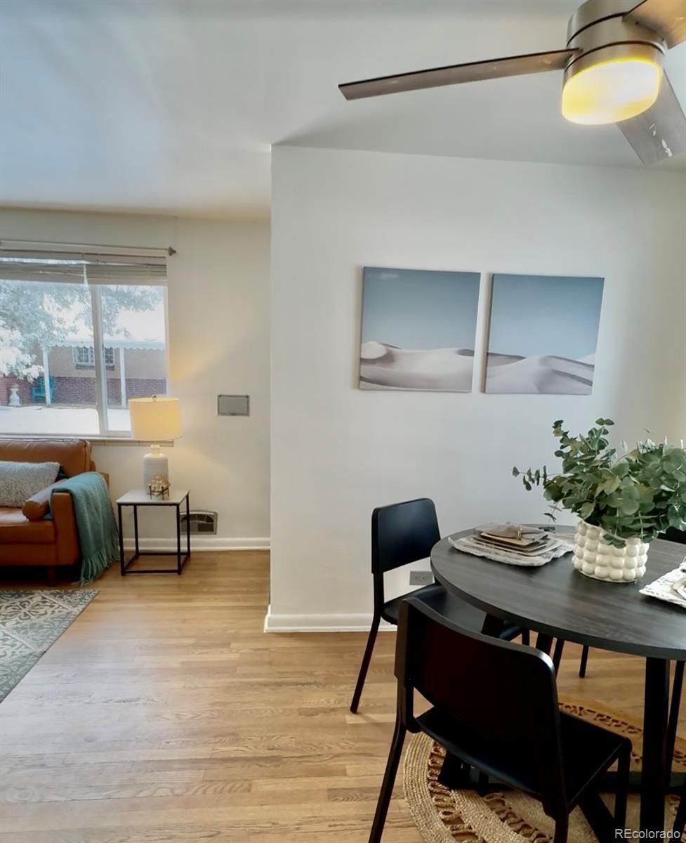 Discover easy living in this inviting, and well-priced 2-bedroom, 1-bath duplex offering comfort, style, and an ultra-convenient location. Located just minutes from neighborhood favorites like Station 26 Brewery (with a rotating lineup of food trucks), Organo Gold Coffee Shop, and Blackjack Pizza, plus the dining, shopping, and grocery options at Quebec Square, this home puts convenience right at your doorstep. The eclectic mix of eateries and businesses at Oneida Park are also just minutes away! Once inside, you're greeted by expansive wood floors throughout the spacious living room that opens to a dining nook making everyday living and entertaining feel effortless. The kitchen shines with granite countertops, stainless steel appliances, and a stylish tile backsplash—the perfect space to cook and unwind. Both bedrooms feature ceiling fans and generously sized closets, and the full bath delivers modern finishes you’ll appreciate. Thoughtful touches throughout—like the full-sized washer and dryer, coat closet at the entry and built-in storage—add even more function to this already well-designed home. Outside, enjoy your private patio strung with café lights, a low-maintenance fenced side yard, and your own garage space - to park your car and store your gear - in the detached garage. A wonderful blend of charm, updates, and location—welcome home!