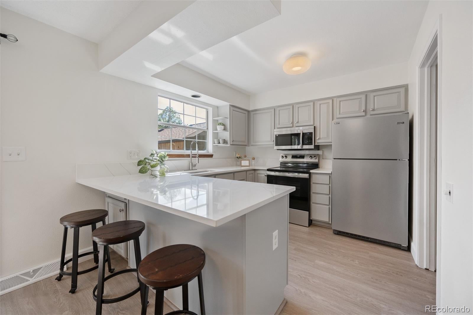 Cherry Creek Meadows Lexington model--the best one ever on market! Best Value! Aggressive Seller. New flooring, paint, quartz countertops, new stainless range, refrigerator, dishwasher and microwave. NOTE: basement has family room, bedroom and bath! Open kitchen with breakfast bar. Dining area with access to deck. Brick gas fireplace in living room. washer & dryer included. 3 bedrooms up with spacious 16 foot primary. Quality bath remodel features large new shower. HVAC serviced and sewer scoped. This community has lush, mature landscaping and broad open spaces- parklike . Cherry Creek Trail is around the corner. A longtime favorite townhome development in semi-secluded spot in south east Denver. Such a good townhome community, owner purchased another one. Ask about the incentive financing available. See supplements.