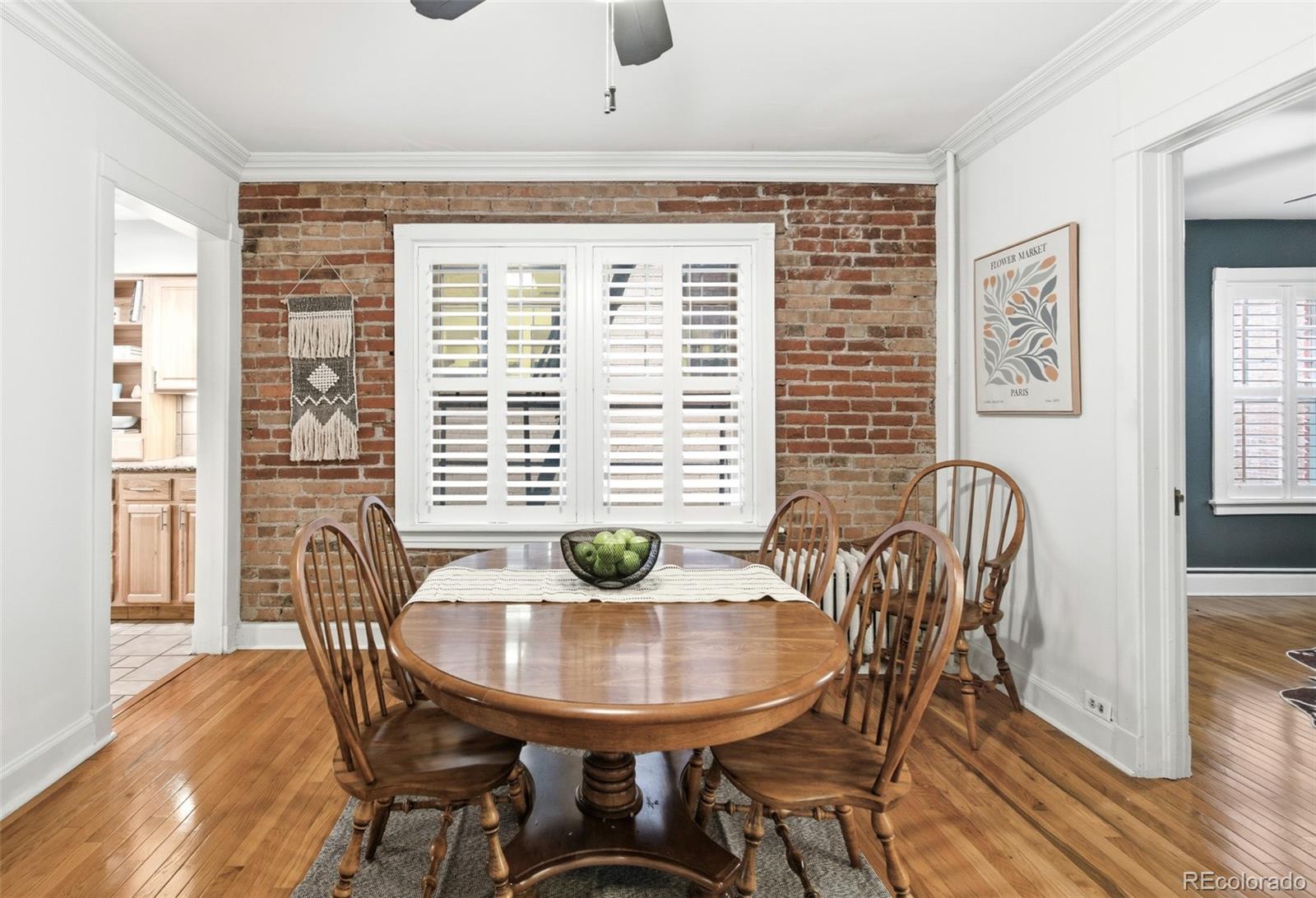 Radiating classic Denver character and refined urban style, this Capitol Hill residence offers a rare blend of historic charm and modern livability. Ideally set within a boutique building, this condo is graced with crown molding, exposed brick and classic shutters, creating a warm, timeless ambiance throughout. Beautifully refinished hardwood floors anchor the living spaces, while the kitchen showcases granite countertops, updated cabinetry and a gas range ideal for culinary creativity. An updated full bathroom with a clawfoot tub adds a touch of vintage elegance, and an in-unit washer/dryer hookup enhances everyday convenience. Natural light and thoughtful details lend a sense of inviting comfort, whether enjoying a relaxing evening or hosting guests. The city allows for 2 permitted street parking permits, a valuable benefit in this desirable neighborhood, effortless access to restaurants, cafés, shops, and museums, and a highly connected location. This Capitol Hill retreat embodies sophisticated city living at its best. Large storage unit in the basement for your Colorado gear. Additionally, the property qualifies for the Community Reinvestment Act (CRA), offering 1.75% of the loan amount as a credit toward closing costs, available for both owner-occupants and investors.