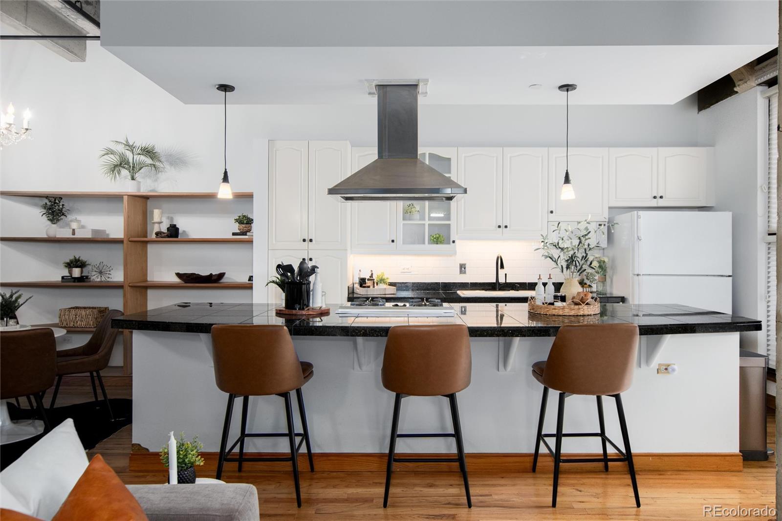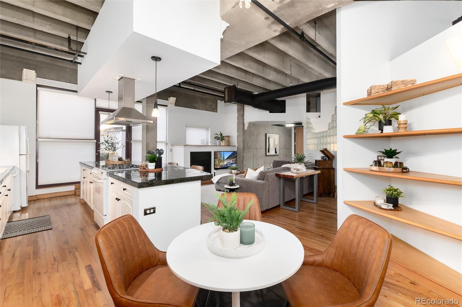 Discover the perfect blend of modern sophistication and urban convenience in this exceptional loft. Featuring an expansive open floor plan with soaring 12-foot ceilings and rich hardwood floors, this residence offers a spacious, airy ambiance ideal for both relaxing and entertaining. The kitchen is equipped with abundant storage, generous counter space, and a large island—perfect for hosting gatherings. All appliances, including a washer and dryer, are included for your convenience. Enjoy an abundance of natural light from a wall of windows, which opens to your private 600 sq ft patio —an inviting space for morning coffee or evening cocktails. The living area boasts exposed concrete and ductwork for an industrial-chic vibe, complemented by a cozy gas fireplace for winter nights. Custom glass blocks illuminate the primary bedroom and bonus office nook with soft, ambient light. Retreat to the spacious primary suite, complete with a walk-in closet and a full bathroom. Guests will appreciate the stylish powder room, while you benefit from a dedicated parking space just steps to the elevator. 7 x 10 deeded storage space on same level as loft. Community amenities include a rooftop pool, fitness center, community room, and conference facilities. Enhanced security features, such as resident-only elevators on the second floor, provide peace of mind. Step outside and explore all that Denver has to offer—dining, entertainment which includes the Denver Performing Arts Complex, Coors Field, Ball Arena, LoDo, and many other cultural attractions are just moments away. This luxury loft is more than a home; it’s your gateway to the vibrant downtown lifestyle