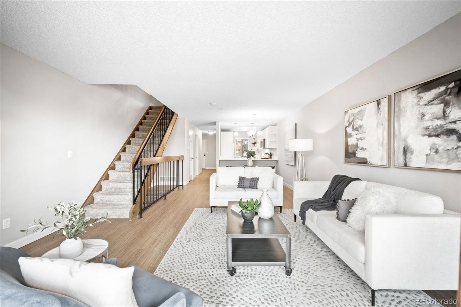 Incredible mountain views from every level set the tone for this beautifully updated townhome, backing to open space. Fresh interior paint, an updated kitchen, and renovated bathrooms create a truly move-in-ready home. The main living and dining areas flow seamlessly into the brand-new kitchen, featuring crisp white cabinetry, a built-in pantry, quartz countertops, and stainless steel appliances—perfect for both everyday living and entertaining. Upstairs, the spacious primary bedroom captures breathtaking mountain views and includes a walk-in closet and access to a tastefully updated full bathroom shared with the second bedroom. A conveniently located upstairs laundry closet enhances the home’s thoughtful and functional layout. The walk-out basement offers nearly 600 square feet of flexible living space and functions beautifully as a guest suite with a private bathroom and patio access to the adjacent open space. Ideal for a home office, fitness area, art studio, or media room, this versatile level easily adapts to your lifestyle. Directly across the street, Wright Park is undergoing a million-dollar renovation, including the addition of a new dog park—further enhancing this already desirable neighborhood. Ideally positioned between Wright Park and Union Ridge Park, the home borders Union Park Trail which connects to a larger trail system and enjoys sweeping mountain views from each floor. Community amenities include a pool, hot tub, and clubhouse. Enjoy easy access to the mountains, Golden, and downtown Denver with close proximity to 6th Avenue and the RTD W Line. Nearby amenities include dining, shopping, schools, colleges, hospitals, trails, playgrounds, and local businesses. A rare opportunity for a turnkey, low-maintenance home with unforgettable mountain sunsets.