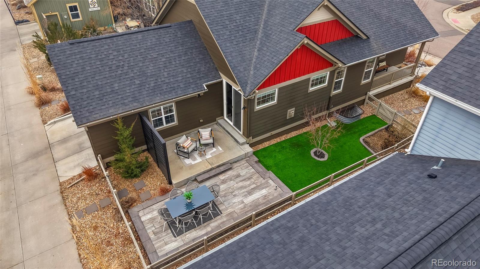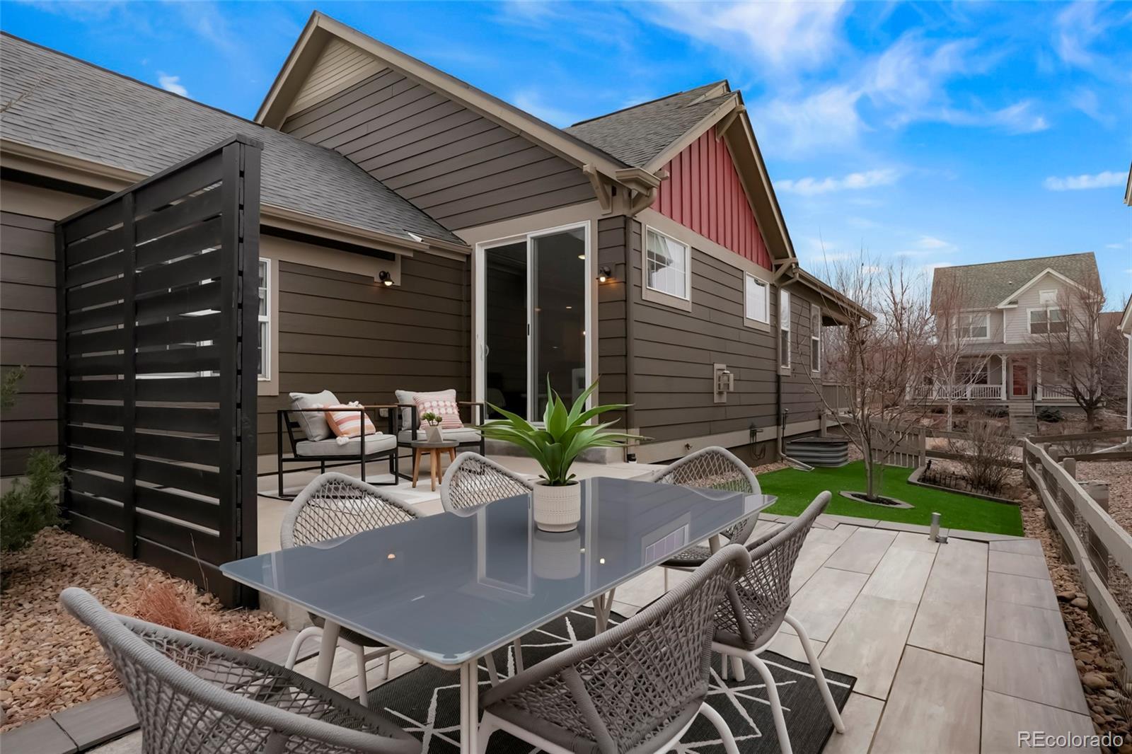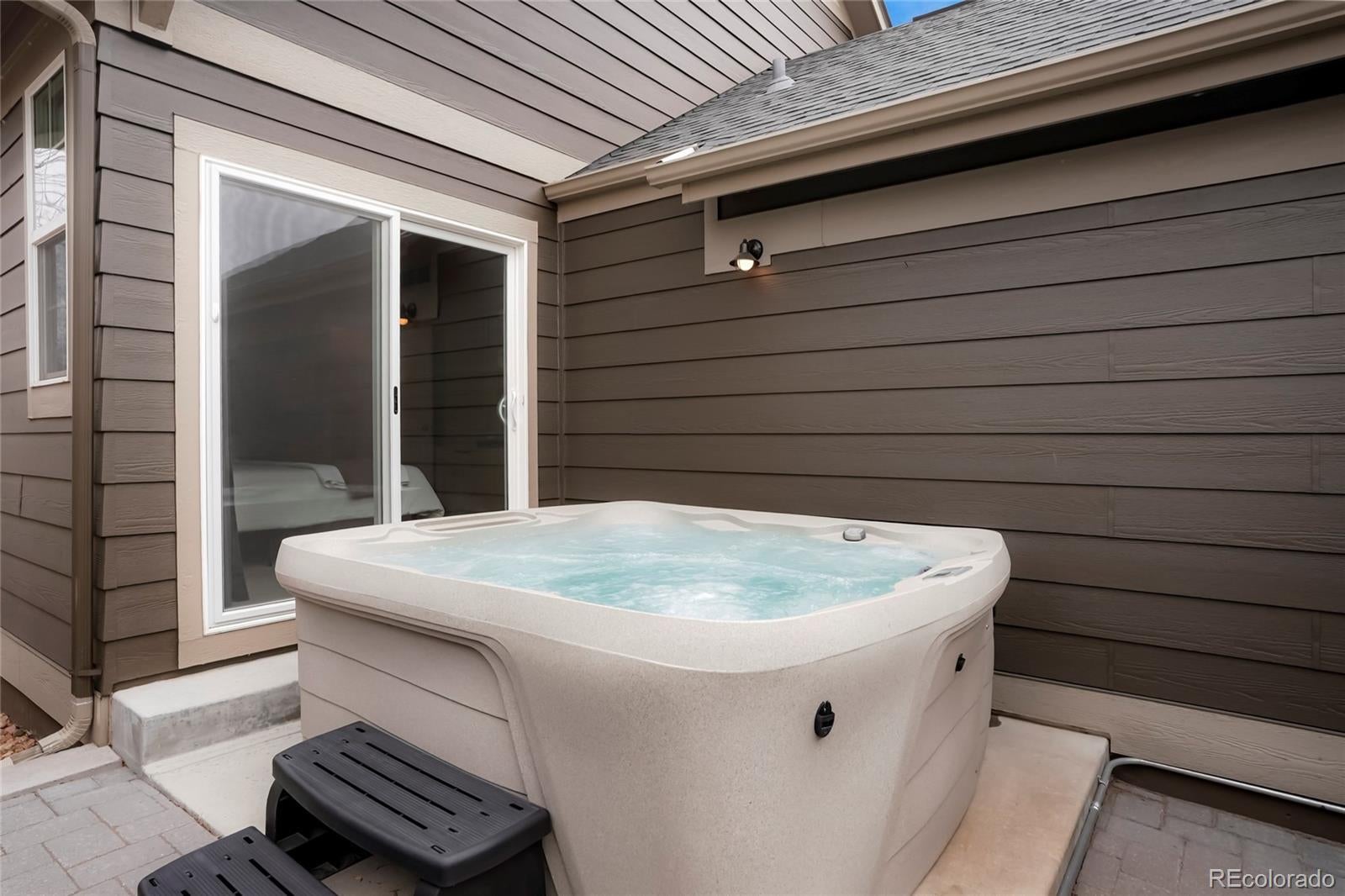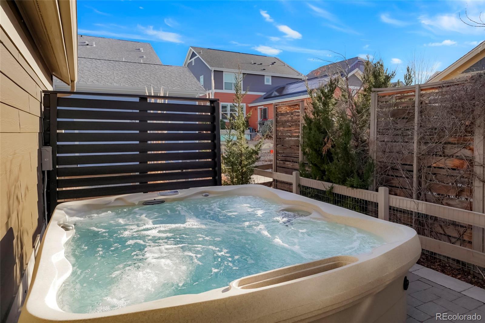 OPEN HOUSE Saturday, February 7th from 12-2 PM. Welcome to easy living in Indian Peaks South! This popular McStain Hawthorn Traditional Collection home blends beautiful upgrades with timeless style and fabulous indoor-outdoor connection. Stay cozy by the fireplace in your vaulted ceiling living room with custom shades. Cooking enthusiasts will love the spacious kitchen, complete with soft-close white cabinetry and smokey grey quartz counters, gas cooktop, wall oven and microwave. The large kitchen island brings plenty of counter space for hosting and prep work. Your main floor primary suite features a lovely five-piece bath and walk-in closet, along with direct access to your soothing private hot tub. Entertain with ease on two large patios, one with Italian porcelain tile. Low-maintenance artificial turf means more time for mountains and trails, along with reduced water usage. Newer impact resistant roof (2019) adds durability and possible insurance savings, while the upgraded landscaping and fresh paint add curb appeal. A permitted, finished basement expands your living space to include a new recreation room, guest suite and luxe bathroom (with frameless glass, floor-to-ceiling tile and Portuguese-inspired floor design.) Energy efficient touches abound, in typical McStain sustainable fashion: HERS 54, EPA Energy Star Version 3.0 rating, thanks to green construction methods and materials. Walk or bike to downtown Louisville for coffee, shops, books and vibrant restaurants. Just 15-minutes to Boulder and 35-minutes to Denver. Looking for new ways to beat the heat in summer? Stroll two blocks to the refreshing community pool and green space park. This home is built for your Colorado lifestyle. From kayaking to mountain biking to skiing, all your outdoor toys will fit in the convenient attached (drywalled and painted) 2-car garage.