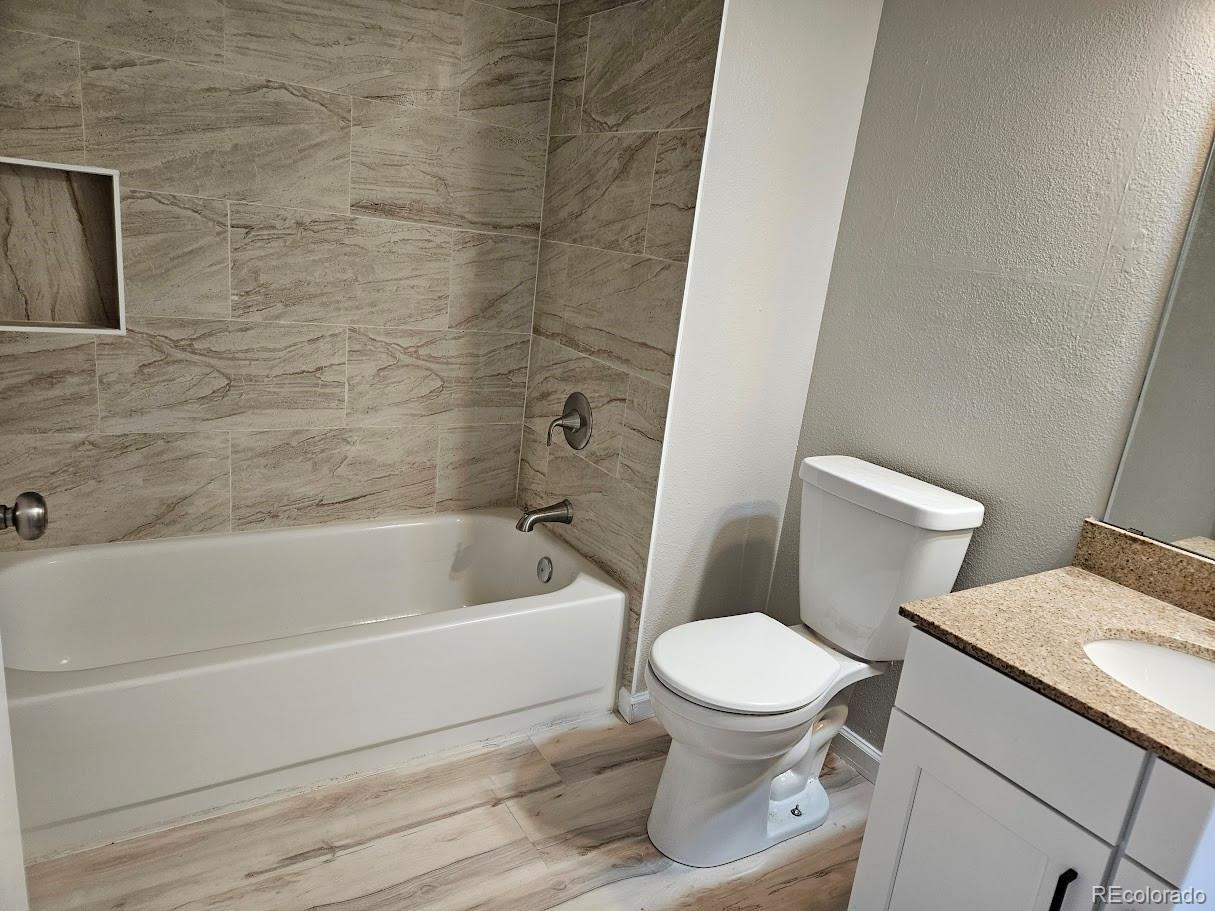 Stunning Fully Remodeled 2-Story Home. Move-In Ready! This beautifully remodeled 2-story home feels brand new from top to bottom! Updates include a new roof, fresh exterior and interior paint, new carpet, and refinished hardwood floors that add warmth and charm throughout. The modern kitchen features new quartz countertops, a large island, brand-new stainless-steel appliances (refrigerator, stove, dishwasher, and microwave), and refaced cabinetry for a clean, updated look. Both the primary suite and second bathroom have been completely renovated with new tile showers, flooring, quartz counter tops, refaced vanity, light fixtures, and shower pan. Additional upgrades include all new lighting throughout, a new concrete patio, and a freshly stained deck, perfect for relaxing or entertaining. This spacious home offers 3 bedrooms, 2.5 bathrooms, and an open finished basement. The bright, open-concept living room boasts vaulted ceilings and large windows that fill the space with natural light. Enjoy cozy evenings in the family room with a gas fireplace, ideal for gatherings and family time. Convenience is key with a main-floor laundry area featuring front-loading washer and dryer. Located in a prime area close to grocery stores, shopping, restaurants, parks, the library, post office, and Southlands Mall, this home is also in the highly rated Cherry Creek School District. Everything has been done, just move in and enjoy your new home!