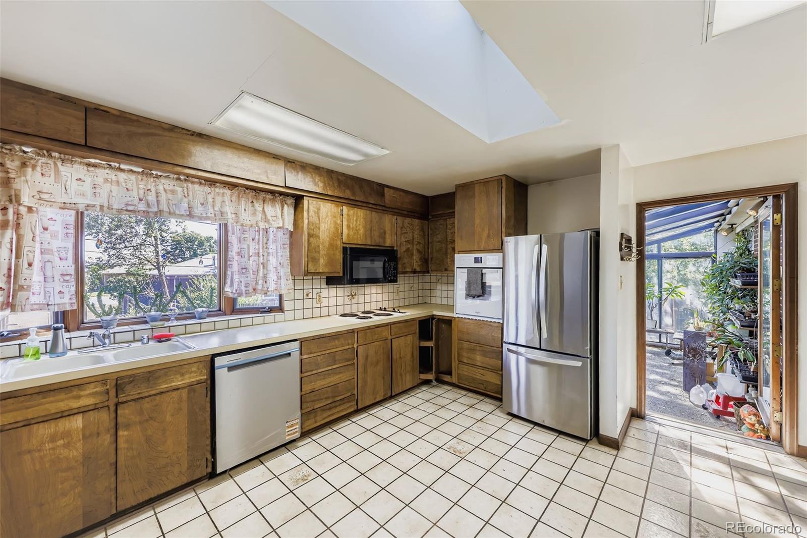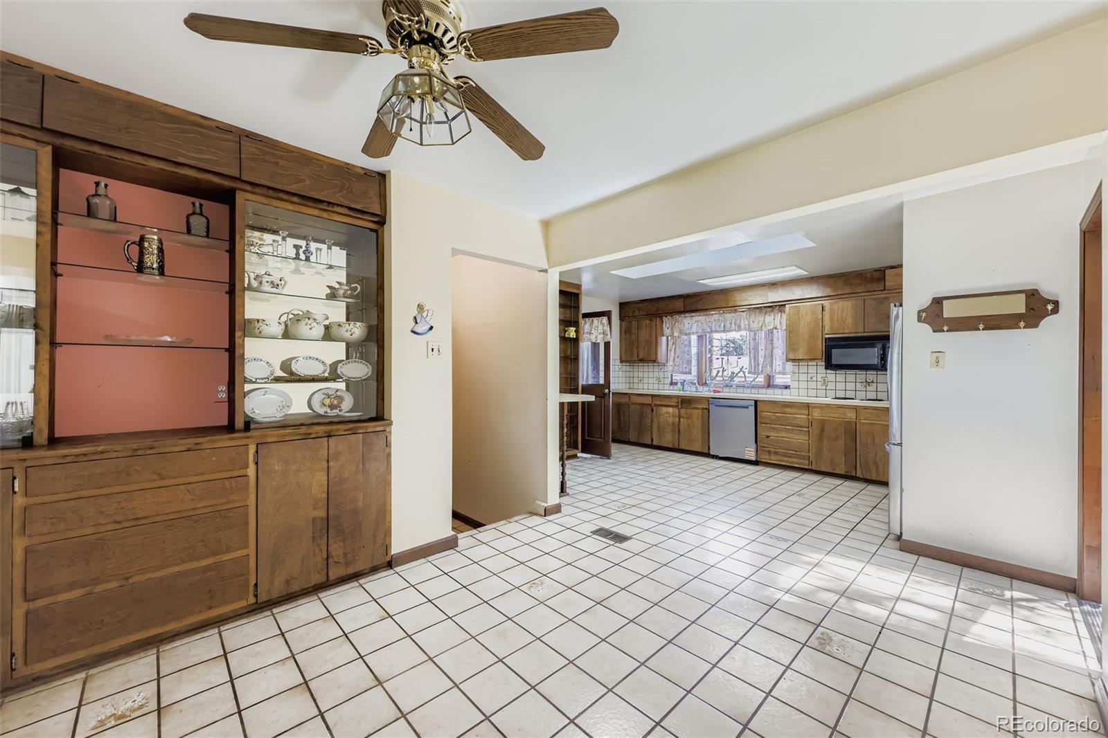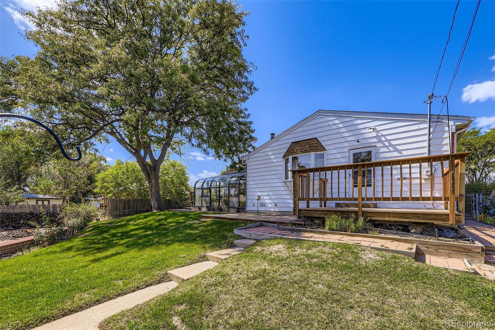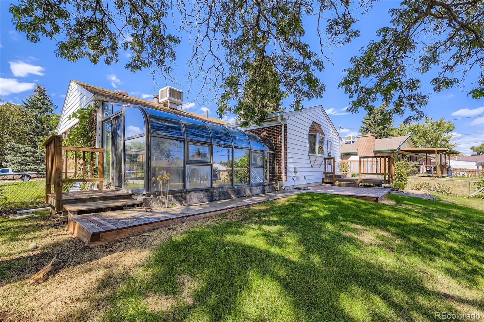 Seller if offering to pay $5000 at time of closing for buyers closing costs. Fantastic opportunity on this solid brick ranch in Northglenn. Huge kitchen and formal dinning area due to an addition added years ago. The home had the same owner for over 40 years. It is dated but is in great shape with excellent square footage. There is also an attached greenhouse which is not included in the square footage. Some improvements include a newer Roof, Newer Front door and bay window, Newer Hot water heater, Stainless Refrigerator and Dishwasher. The Furnace is older. There is hardwood in the bedrooms and under the carpet in the living room. All appliances and the washer dryer are included. Good sized master, jetted tub in main floor bath. Basement bath is a 3/4. The basement bedroom does not have an egress window. Fantastic and well kept yard with a lower patio area and a two tiered deck. The garage is very deep with a heater and a small work bench.