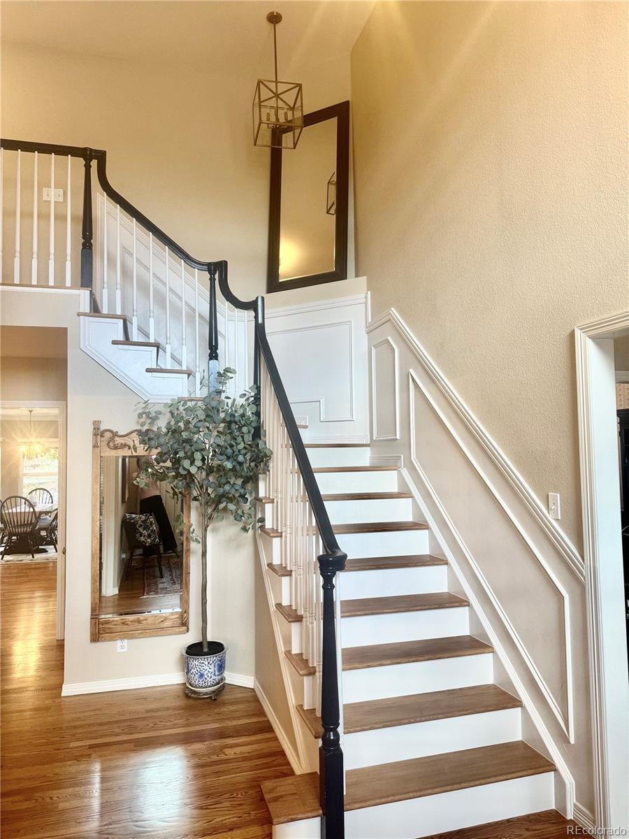 Tucked away on a quiet cul-de-sac in the coveted Weatherstone community, this beautifully cared-for home sits on an oversized lot with mountain views from the backyard and front bedrooms. This 6 bed 5 bath house, plus a main floor office, features a beautiful kitchen with quartz counters and stainless steel appliances. The home offers both generous space and a thoughtful layout designed for comfortable everyday living and effortless entertaining. A stunning wood staircase with detailed moldings greet you upon entry, setting the tone for the craftsmanship and care found throughout the home. The open and inviting living spaces are enhanced by quality finishes including quartz and granite countertops. The walk-in closets are thoughtfully designed with California Closets for both style and organization. The primary suite is a true retreat, featuring a beautifully remodeled spa-like bathroom finished in authentic Carrera marble, complete with a soaking tub, dual vanities, and a spacious walk-in closet. Each bedroom is designed with comfort and privacy in mind, with attached bathrooms, creating ideal accommodations for family and guests. The fully finished basement expands the home’s versatility with two additional bedrooms and a welcoming entertainment area with fireplace. Gather around and enjoy the open family room, wet bar, game space, and more: perfect for movie nights, gatherings, or extended guest stays. Step outside to a backyard that feels like it belongs in a Pottery Barn catalogue. The outdoor living space is designed for year-round enjoyment with a charming pergola, built-in grill, and a cozy outdoor fireplace—creating the perfect setting for relaxing evenings, weekend barbecues, and memorable gatherings under the Colorado sky. Combining mountain views, timeless finishes, exceptional care, and a prime Weatherstone location, this is truly a dream home to love.