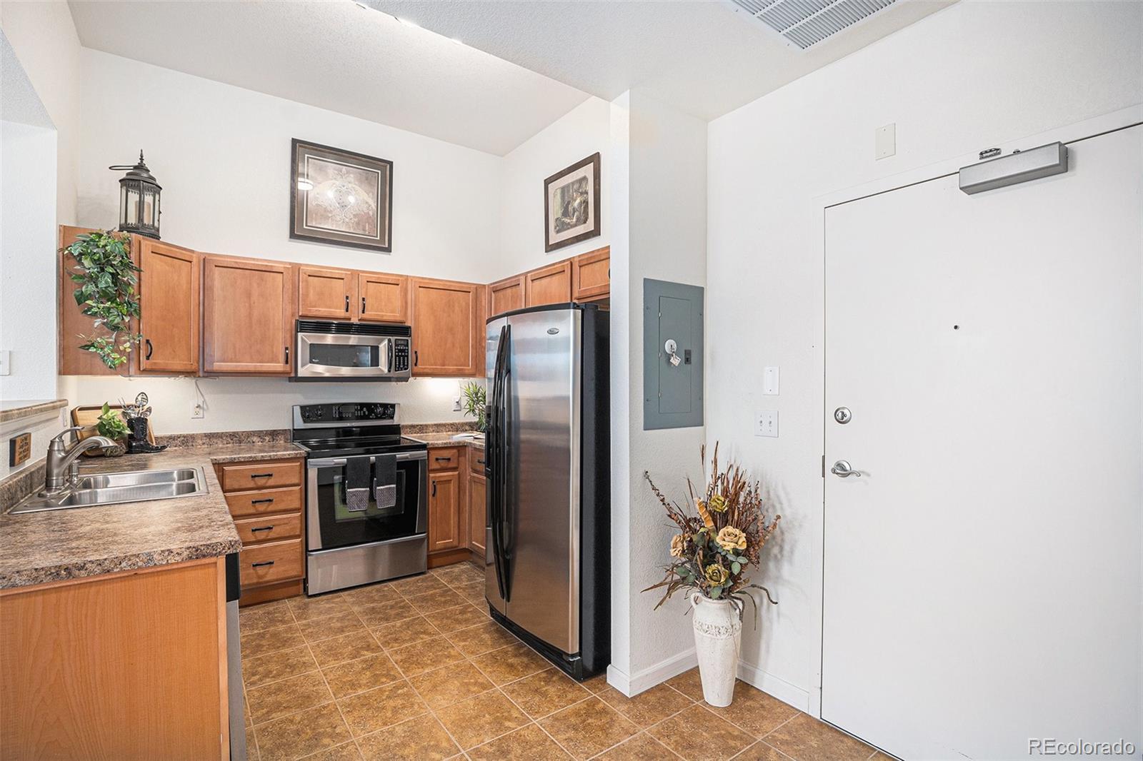 New carpet! Be the envy of your friends and family as the owner of this fabulous condo in Olde Town Arvada! Although this condo comes with a reserved, heated garage parking spot, you may never need to start your car! Right outside your door are the countless shops, bars and restaurants in Olde Town in addition to the light rail stop that will whisk you away to enjoy all that downtown Denver has to offer. When you need to take a break from your active social life, this top floor condo becomes your peaceful sanctuary. Enjoy the mountain views from your private balcony, take a dip in the community pool, or get in a quick workout at the clubhouse fitness center. The efficient layout of the living spaces and the high ceilings give this condo a roomy feel for everyday living. Book your private showing today and start living your best life!