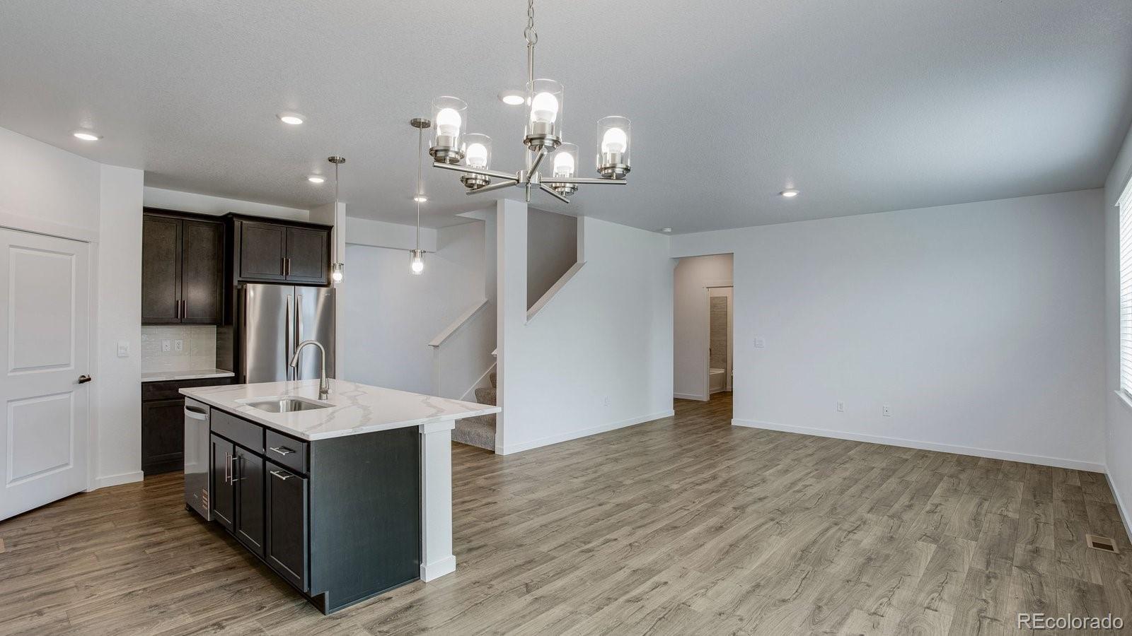 Backing to open space and trails, your new home awaits you in the Hansen Farm community located in Fort Collins, CO. The Henley floor plan is an open concept 2-story home that features 5 bedrooms, 3 full bathrooms and 2,652 sq. ft. of living space and an unfinished basement of 1056 sq. ft. totaling 3,708 sq. ft. to enjoy! As you enter your new home from the front door and walk through the foyer you will see the spacious main floor bedroom and a full-size bath. Additionally, as you walk further into the home you will experience the open concept great room, dining, and kitchen area. As you step into the heart of your new home you will enjoy the spacious kitchen that features premium cabinetry with new LUXE kitchen appliances, a corner walk-in pantry and an expansive island that is great for meal prepping, dining or entertaining. Upstairs is the oversized spacious primary bedroom that includes a bathroom with double vanity sinks, a private room for the toilet and an expansive walk-in closet with additional storage. In addition, an upstairs laundry room and 4 secondary bedrooms. One of the 4 secondary bedrooms has its own en-suite full bath that offers amazing flexibility in your homes comfort. ***Interior photos of actual home. Exterior photo is representative of actual property. ***