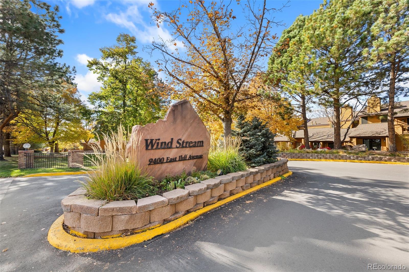 Unit #125 is a large open floor plan with only 1 common wall (end unit) which give the property a sense of privacy. The main floor features dining room and living room with wood burning fireplace, generous kitchen with eating space and a bedroom (currently used as an office), and 1/2 bath. Upper floor has a primary bedroom with attached 5 piece bath. Second bedroom and additional full bath. Basement has a bedroom, and big laundry room and lots of storage. The grounds in Wind Stream are absolutely gorgeous. Wind Stream also has a swimming pool and hot tub and lots of guest parking through out the complex. Wind Stream is located within walking distance to the High Line Canal and is close to DTC, restaurants and shopping. The square footage and floor plan in this home is great and a little or more updating would work wonders!!!!