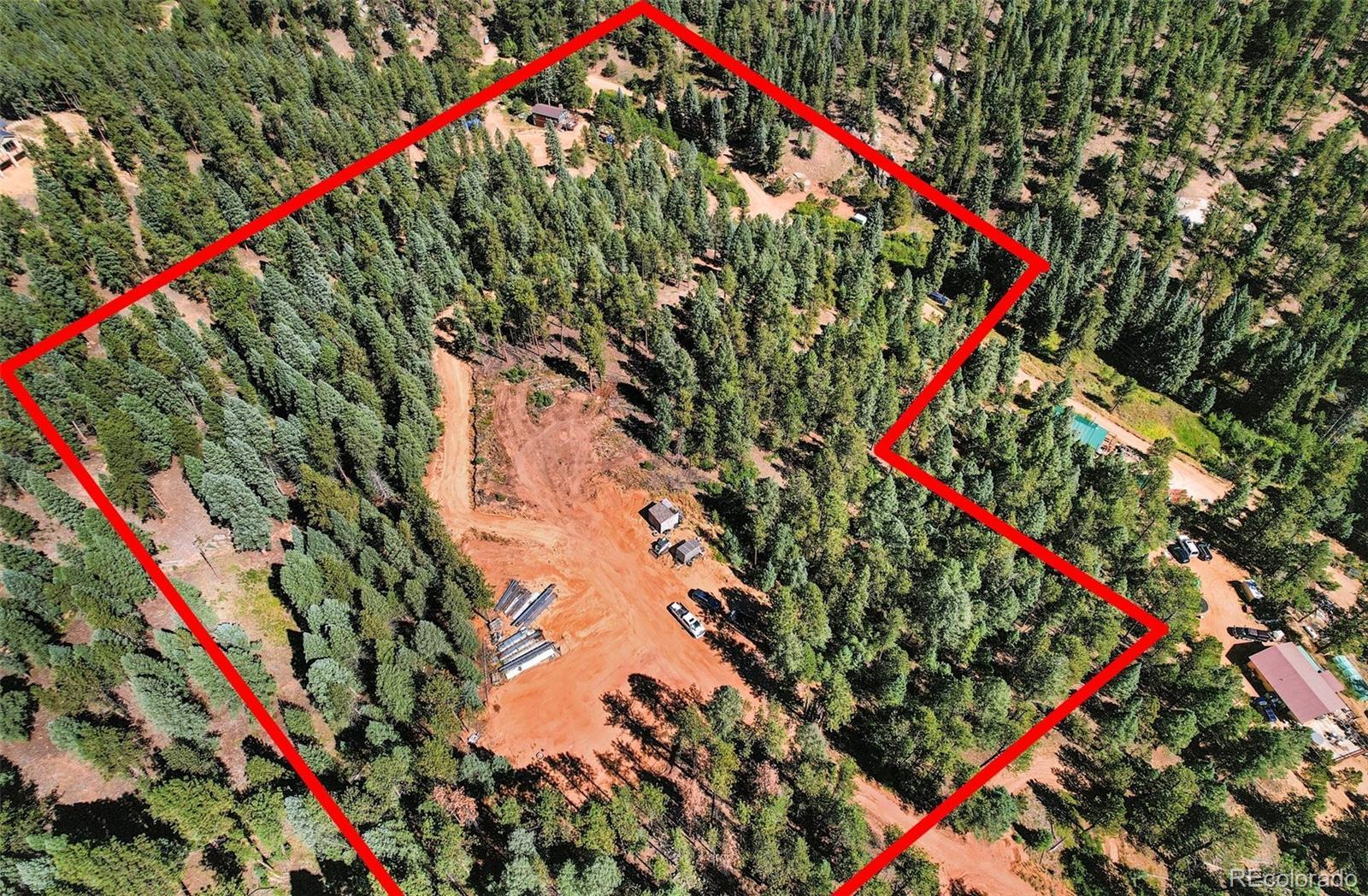 Your mountaintop retreat homesite awaits!! This 8.36 acre parcel offers the opportunity to build one custom main home plus several secondary structures such as barns, steel buildings, Air BnB units / Mother in Law / Carriage Homes, and more! Conveyed with sale: two sets of main home plans (one modern, one mountain rustic), 50x60 steel building plans, AND the frame pieces for the steel building, onsite! Build peace and seclusion with views from 3 building sites on your private hilltop, plus a 4th potential building site at the bottom of the hill, creekside! Two access roads. Wild turkeys and other wildlife are plentiful! The property has a Sedalia address in coveted Douglas County, but is closer to Deckers and its famous world class fishing. Peace and quiet yet surrounded by activities, the property is only 1.2 miles from live music and dining at Sprucewood Inn, and one of the Rampart Range OHV trail entrances! Columbine public archery lies only 2.5 miles away, Indian Creek Campground, Equestrian Campground & Trailhead is only 4.2 miles from your home. Rampart Range Road & Recreation Area entry is 4.5 Miles away with world class trails leading all the way to Colorado Springs! Wide Open Saloon is a mere 14.7 Miles, and only 20.5 miles to I-25. This property is the perfect blend of seclusion yet still a very short drive to highway access to Castle Rock, DTC, and Denver. Colorado mountain home sites with these features have become highly sought after post pandemic for their “breathing room” and seclusion, yet surrounded by recreation and convenient to shopping and business centers. Build one home for yourself and 2-3 Air BnB units to cash flow? Contact us today! Trailers or Campers onsite not included.