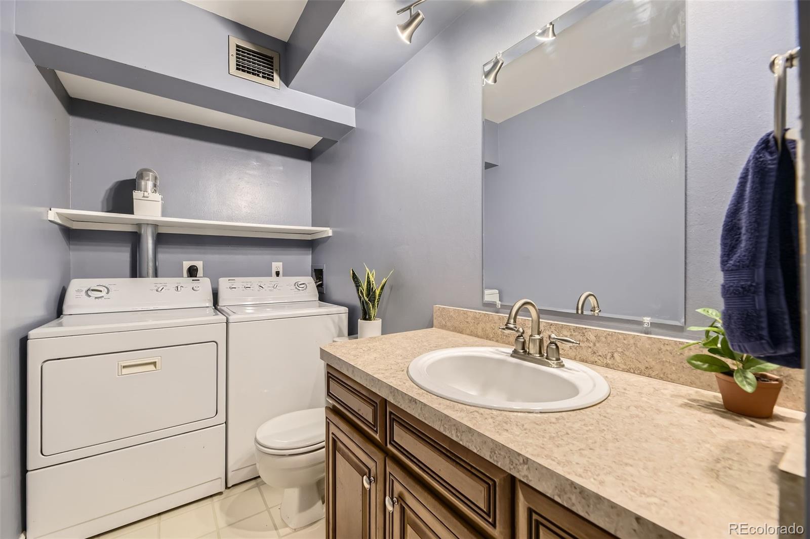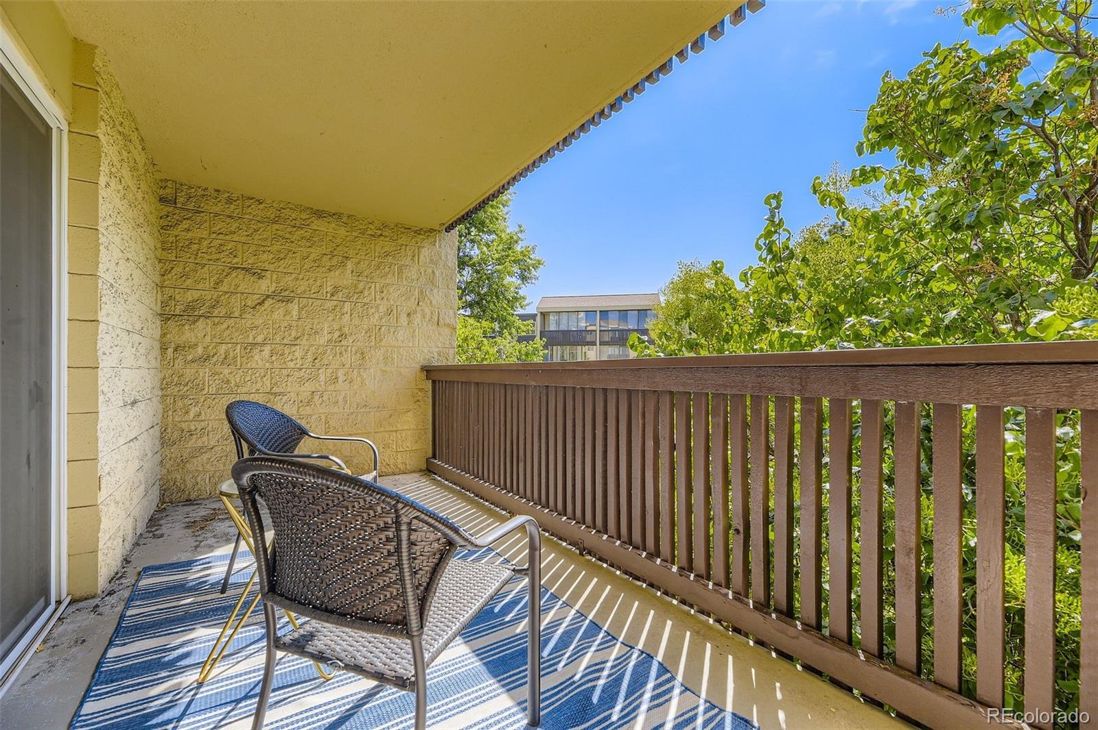Very few condos include two-levels in this quiet, comfortable, updated condominium with IN-UNIT LAUNDRY, TWO COVERED PRIVATE BALCONIES, TWO PARKING SPACES, TWO STORAGE UNITS, new Gravina triple-pane windows with a tree-level pretty views. Once entering, you will love the flow of the first floor with it’s spacious kitchen with updated tasteful cabinets, ss appliances, pantry with slide out shelves, new hood over the range, and bright tile. The dining room and family room allows for plenty of space to gather with friends and family. Off the dining is a slider to the private covered balcony, providing serene grassy green, well maintained common area. You will find the laundry and powder room in the same room on the main level. Upstairs the primary is quiet a large retreat with it’s own private balcony, walk-in closet with built ins, and beautifully tiled primary bathroom with new shower installed. The bathroom boasts plenty of counter space and additional storage. The second bedroom could also work for your home office and directly across the hall the second upstairs bathroom. This home has plenty of storage plus access to 2 large storage spaces! Two underground secured parking spaces is reserved for the home. The pool and amenities are well maintained too. Whole Foods, Target, CVS Pharmacy,& great restaurants are within walking distance! Easy access to I-25, Denver, 225, Denver Tech Center, and DIA. The convenience and all this home offers is well worth exploring and making it your perfect place for home ownership!