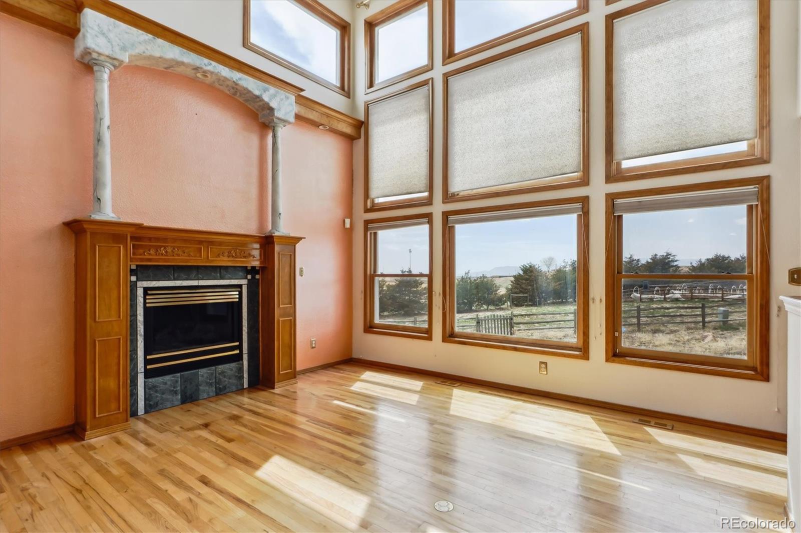SELLER OFFERING 5K in CONCESSIONS FOR BUY DOWN RATE. Charming listing in Peyton! This home was once named the Parade of Homes People’s Choice Award. It was the model showcase home when built. Generous rooms with lots of natural light shining in. Main floor includes office space, laundry, and vaulted family room with a wall of windows. Kitchen holds ample cabinet storage and walk in pantry. Formal dining and living space also located on main level. Beautiful hardwood floors throughout. The second floor open hallway features a peaceful bonus space with outside balcony to enjoy your Mountain Views. Spacious Primary bedroom includes a wood stove and en suite full primary bath. Walk in closet is quite large with adequate shelving. Two additional bedrooms with vaulted ceilings and one full bath complete the second floor layout. The basement offers a wet kitchen with Granite tile countertops, wine fridge, and dishwasher. Enjoy movies, sports, or your favorite shows in the Theatre room (TV and Speakers stay). The hutch in basement living room leads to a secret storage room. 4th conforming bedroom located in the basement. Bonus upgrade - roof has hail impact shingles. Over 1/2 acre lot with fenced in back yard for your pets and kids. Three car attached garage and side shed. Falcon Middle School visible and accessible from property backyard. Elementary and High School conveniently located. Don’t miss your opportunity to own this great property surrounded by Colorado views.