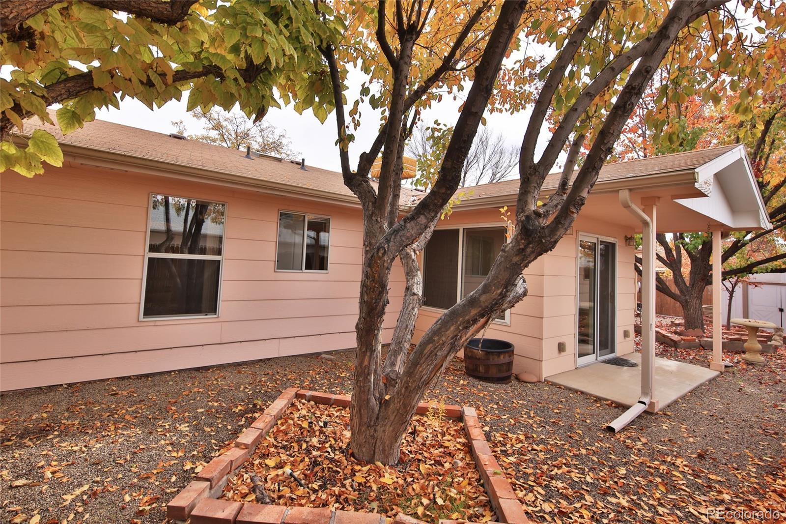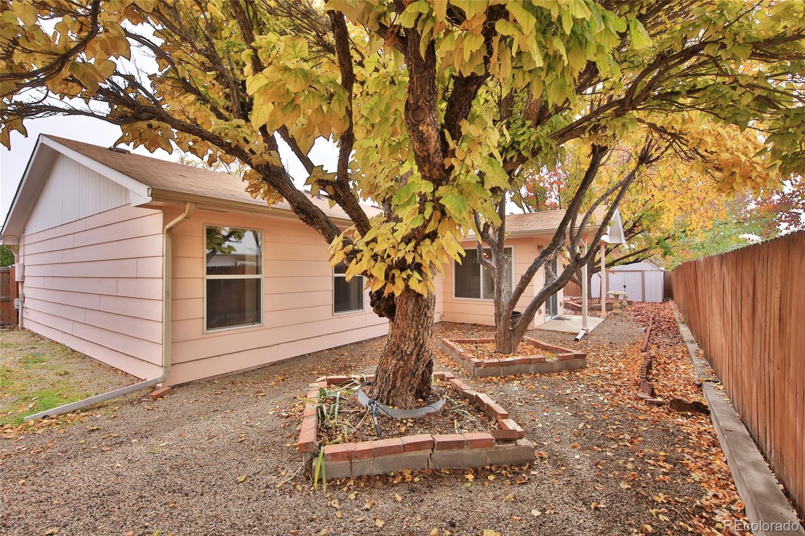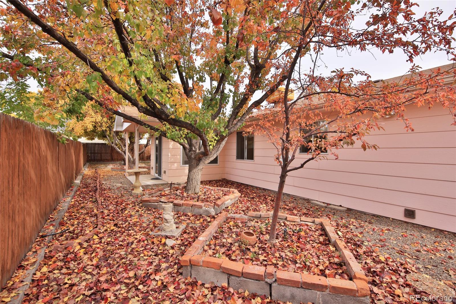 Centrally located on the Western Slope of Colorado in beautiful Grand Junction, this charming 3-bedroom, 1¾-bath home sits in a quiet cul-de-sac neighborhood. Enjoy outstanding curb appeal with a beautifully landscaped yard, mature shade trees, a Rainbird underground sprinkler system, concrete walkways, and yard edging. The low-maintenance xeriscape backyard features a storage shed and privacy fence—perfect for Colorado living. Step through the covered entryway into a well-designed floor plan offering year-round comfort and energy efficiency. The home includes hot water baseboard heat, a Breezair swamp cooler, ceiling fans, and individual thermostats in each room. The kitchen features custom-built oak cabinets, ample laminated counter space, appliances included, and a convenient pantry. The laundry room comes equipped with a washer and dryer. The large primary bedroom offers a spacious walk-in closet and full bath. A bright sunroom with sliding glass doors opens to the backyard—ideal for a home office, playroom, or hobby space. The two-car garage includes an automatic door, built-in storage closet, and workbench. Additional highlights include carpet and vinyl flooring, a skylight for natural light, and thoughtful details throughout. Conveniently located near schools, parks, shopping, and local amenities, with easy access to residential services. Experience the best of Colorado living, where recreation awaits in every direction—from high desert trails to mountain adventures.