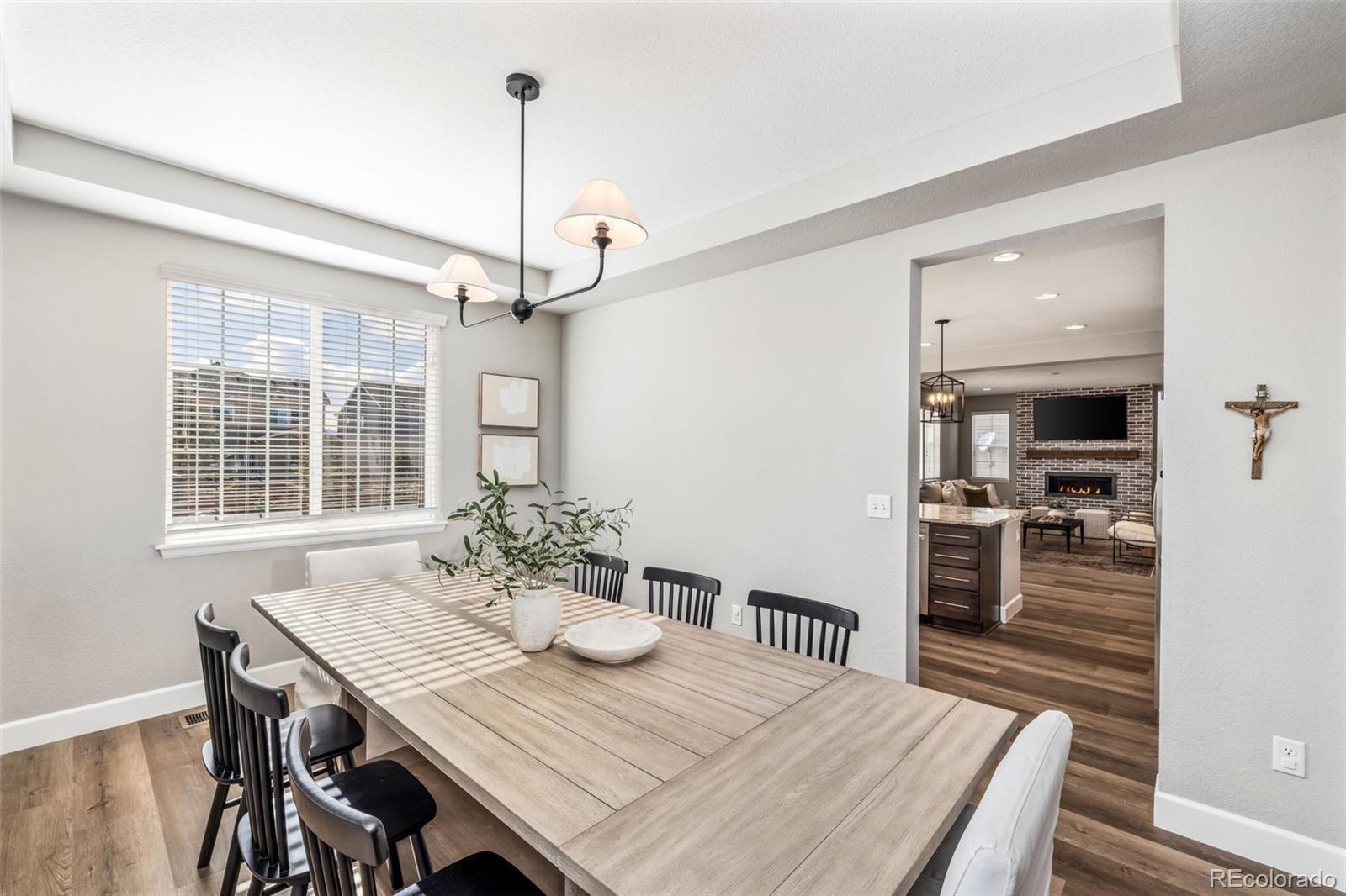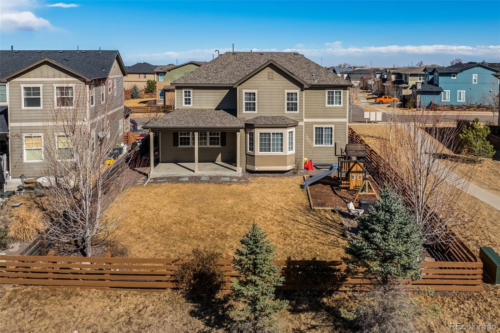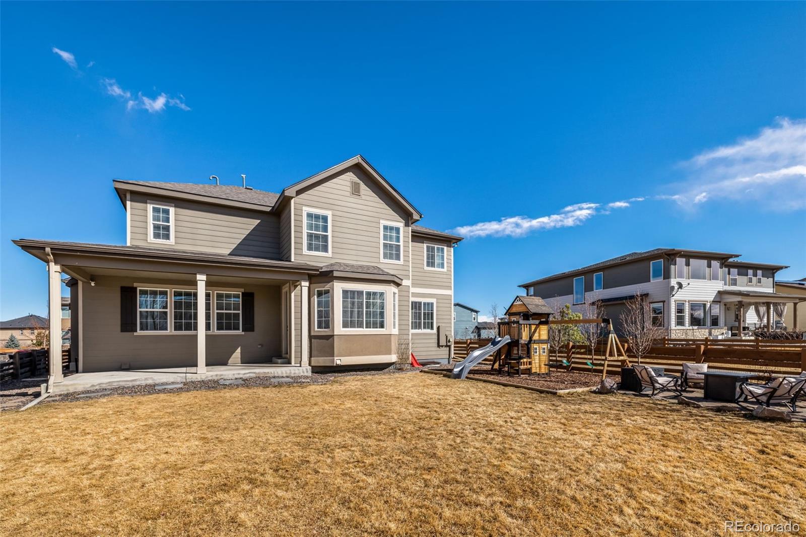 Rare 4-car garage and a premium greenbelt lot set the tone for this exceptional home at 204 Horizon Ave in Erie. Backing and siding to greenbelt and walking trails, this 5 bedroom, 5 bathroom property offers privacy, views, and direct access to miles of paths right outside your door. Step inside to a grand foyer with a sweeping spiral staircase and new LVP flooring throughout the main level, complemented by new baseboards for a clean, updated feel. The main floor office features French doors and custom built-ins, ideal for working from home. Soaring ceilings elevate the living room, which flows seamlessly into the formal dining room for effortless entertaining. The kitchen is appointed with stainless steel appliances, two-toned cabinetry, a large island, and a bright dining nook with a bay window overlooking the backyard. The adjacent family room is anchored by a Cosmo fireplace with brick surround, creating a comfortable gathering space. A main floor laundry room with included washer and dryer adds everyday convenience. Upstairs, the spacious primary suite features a five-piece ensuite bath with separate vanities, soaking tub, walk-in shower, and a large walk-in closet. Three additional bedrooms and two bathrooms complete the upper level, including a true Jack and Jill bath with separate vanities. The finished basement offers a generous flex space, an additional bedroom, and a bathroom—perfect for guests, a home gym, or media room. Outside, enjoy a large backyard with a covered patio and playground. Located in a highly desirable community with two clubhouses, fitness centers, pools, and miles of walking trails, this home combines space, functionality, and lifestyle in one remarkable opportunity.