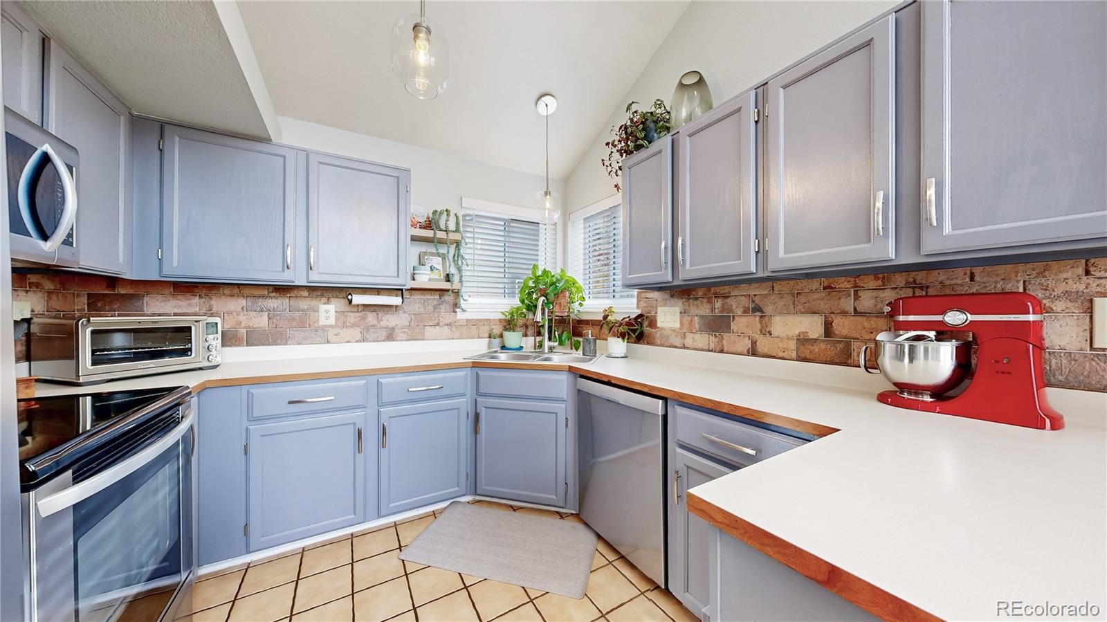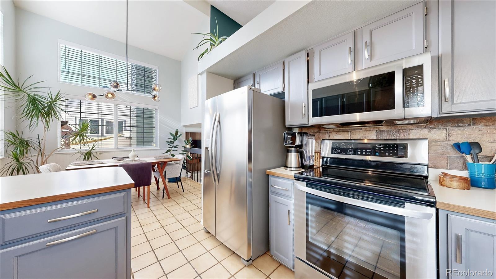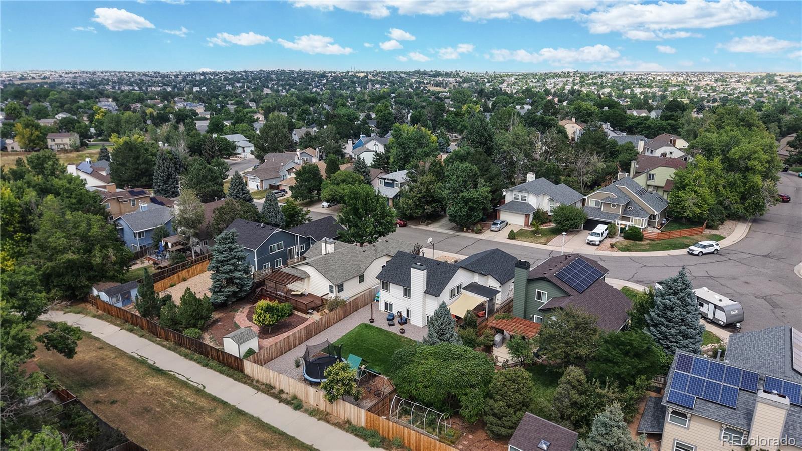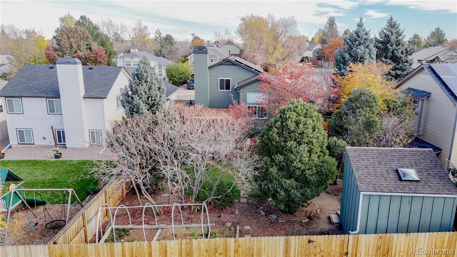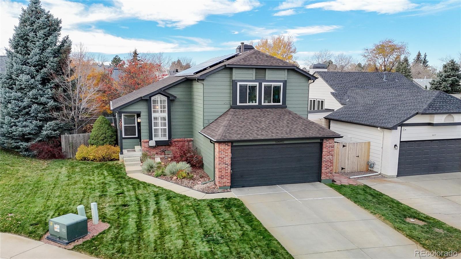Well-appointed home with great landscaping and private yard, backing to greenbelt area and pathway in Aurora’s Hampden Hills neighborhood. As you step inside, vaulted ceilings and large windows draw natural light into the formal living area. The kitchen features stainless-steel appliances, roll-out storage trays in cabinets, and a convenient layout adjacent to the dining room with designer lighting. Easy access to the upper and lower levels creates a quiet separation for living, work, and rest. There are three bedrooms together on the upper level including a peaceful primary bedroom with a walk-in closet (complete with designer closet organizer) and direct access to the remodeled bath with stylish décor, tiled shower / tub surround and double vanity. The lower-level living space offers the perfect place to relax, complete with a wood-burning fireplace and floating media center. Step outside to the outdoor entertaining area complete with shade sail and bistro lighting. The spacious fenced yard and mature trees provide both privacy and year-round outdoor enjoyment. Convenient parking and storage with a two-car garage and 12’x8’ garden shed with loft. Located just blocks from Sunrise Elementary and Horizon Middle Schools, with Smoky Hill High School also nearby, this home puts you within reach of parks, walking paths, retail centers, and commuter corridors to downtown Denver, Buckly SFB, DIA, & Southlands Mall. This residence offers timeless design, adaptable spaces, and a central Aurora location all wrapped into one compelling, move-in-ready package. No HOA fees and lower property taxes without a metro district tax. **Save $$ on your electric bill with energy efficient solar system and assumable solar loan at 2.99% ** New roof and gutters (2023) ** New patio door and many new windows ** Wi-Fi / smart thermostat, garage door opener, and sprinkler system for front yard, back yard, and garden. **3D Tour: https://my.matterport.com/show/?m=PtPPvWjMfgL