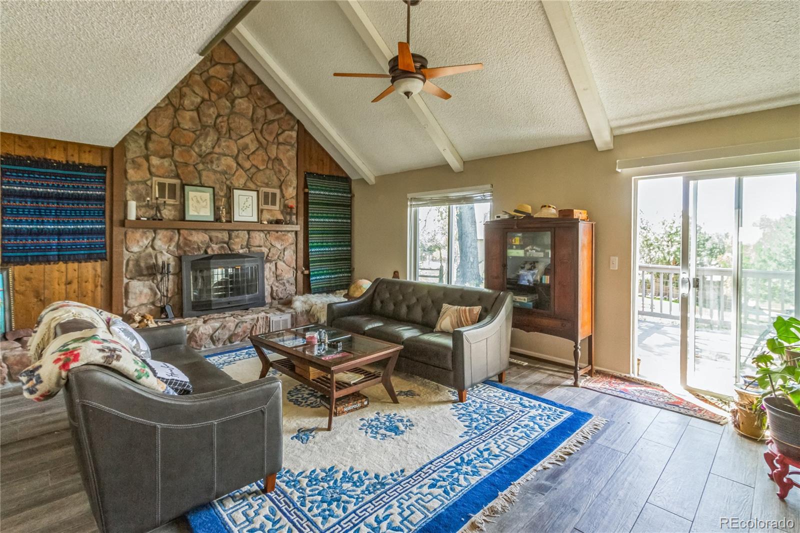 Welcome to 7209 N Hyperion Way—where mountain views, character, and community converge. This charming 3-bedroom, 2.5-bath home offers nearly 1,800 sq ft of bright, open living with vaulted ceilings and a flowing layout that connects each room with ease. The airy design is perfect for entertaining or relaxing, and the cozy wood-burning fireplace adds warmth and comfort to your everyday routine. There’s a touch of quirky flair throughout the home that gives it personality and sets it apart. Step outside to not one, but two spacious Trex decks—perfect for sipping your morning coffee while soaking in uninterrupted views of the Rocky Mountains, or winding down with friends as the sun sets behind the trees. The flat, tree-lined lot creates a private, peaceful setting where you’ll often spot deer wandering by. Beyond the property, you’ll enjoy everything that makes The Pinery such a sought-after neighborhood—miles of scenic trails, open space, and easy access to local breweries, cafes, and downtown Parker’s lively community scene. And here’s the kicker: this home is one of the few in the area with a relaxed HOA—only $33/month—covering trash service and keeping things simple, with no unnecessary restrictions. If you’re looking for a home with soul, space, and scenery, this is one you won’t want to miss.
