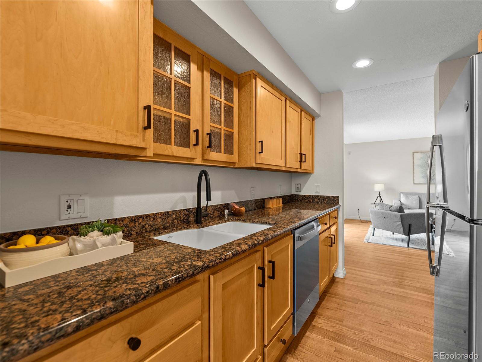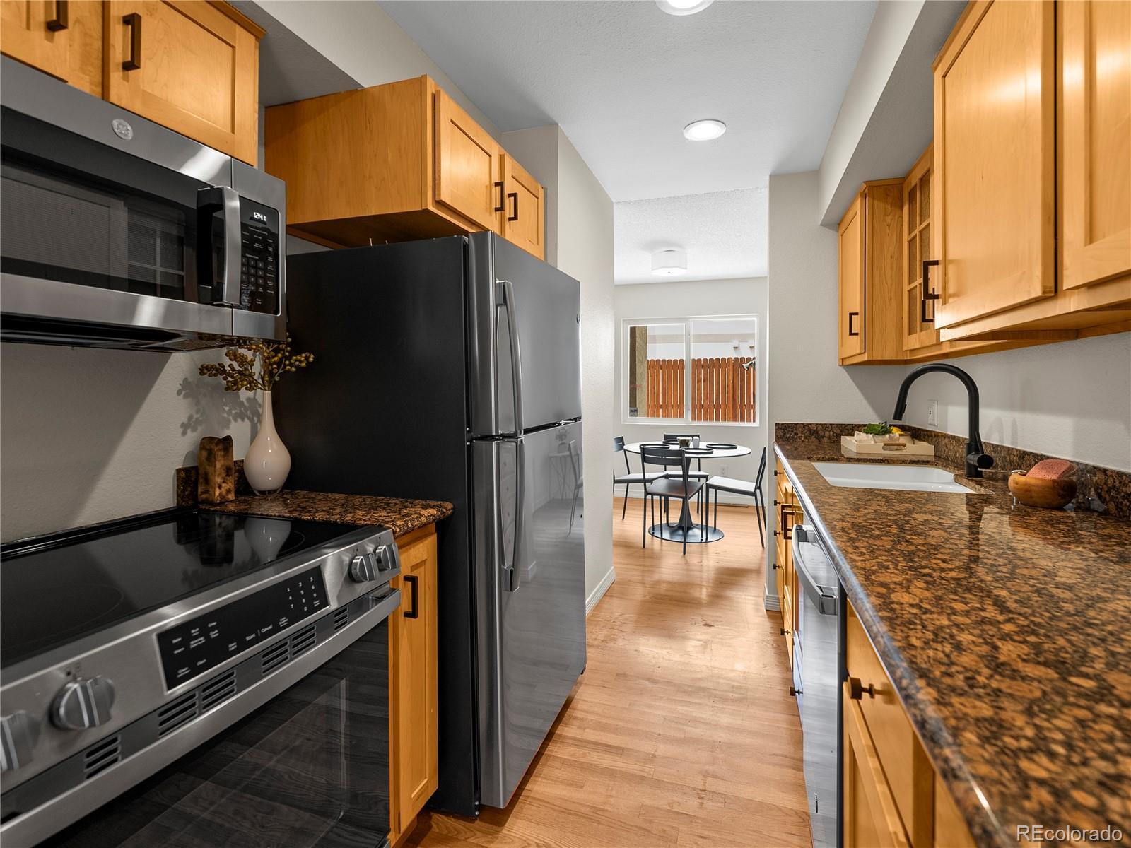 All the goodies one wants in a TH with 1,178 square feet of well-planned space! What you get is a home that offers two spacious bedrooms & two updated bathrooms. The primary bedroom features new recessed lighting and a versatile bonus room perfect for a home office or cozy retreat. Step inside to find fresh interiors with new carpet and hardwood floors, complemented by contemporary paint throughout. The living area flows seamlessly to an outdoor patio, creating an ideal setting for relaxation or entertaining. The modern kitchen is complemented by new stainless steel appliances and modern hardware to give a zen like cooking space. Large dedicated laundry area for added convenience with storage and space to hang dry! Enjoy year-round comfort with a newer central AC unit and efficient gas heat, while the included carport and additional storage room enhance functionality. Pet owners will appreciate this pet-friendly community, complete with nearby access to the scenic High Line Canal Path. With covered parking included, this townhouse on South Parker Rd. is a smart choice for those seeking a blend of style and convenience. Don't miss the opportunity to make this updated gem your home!