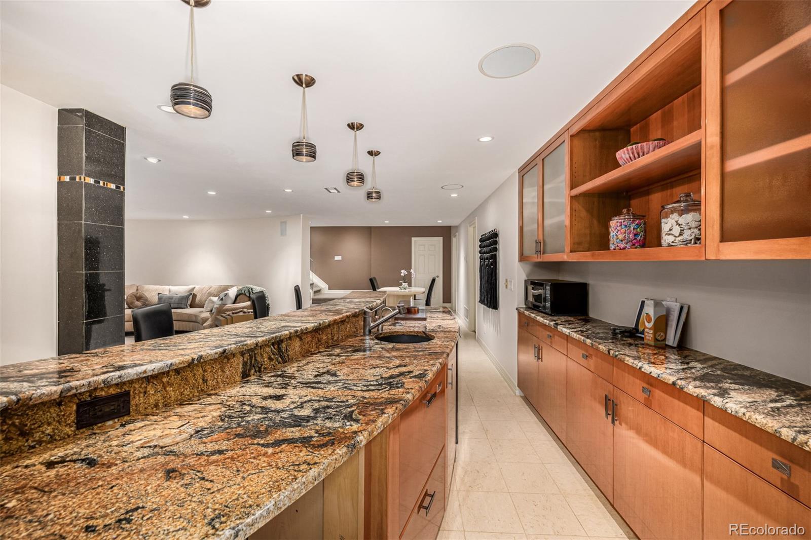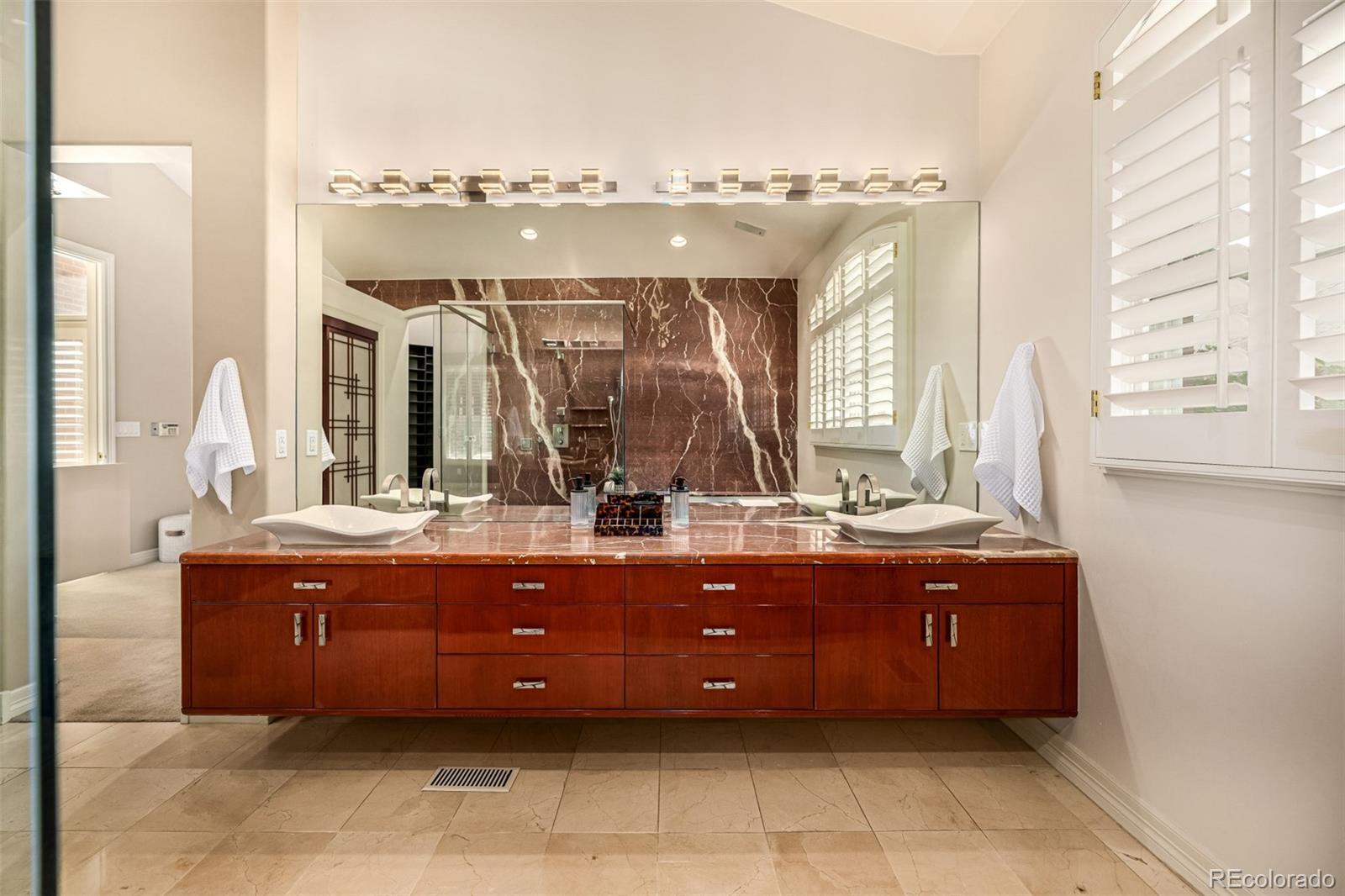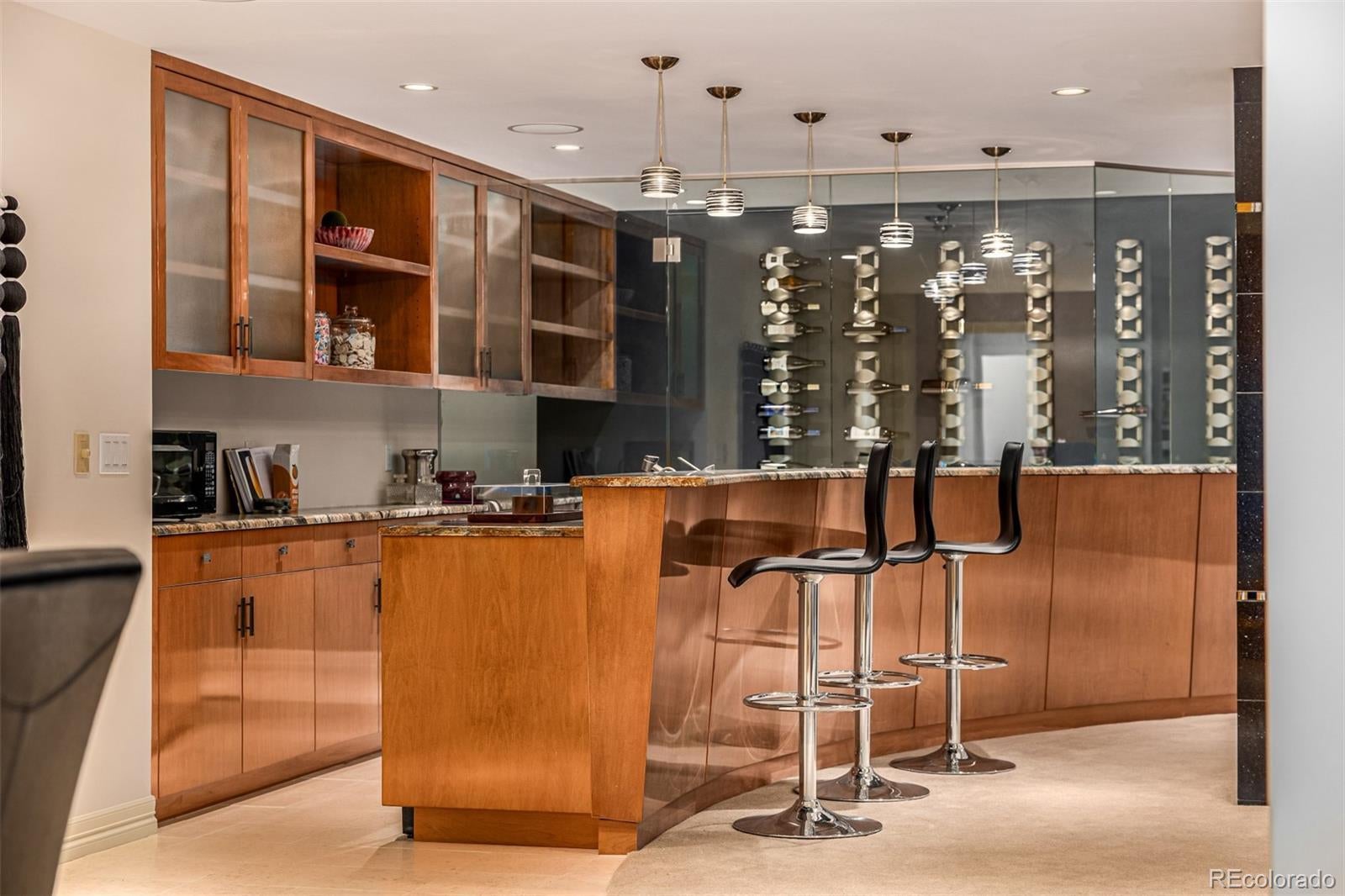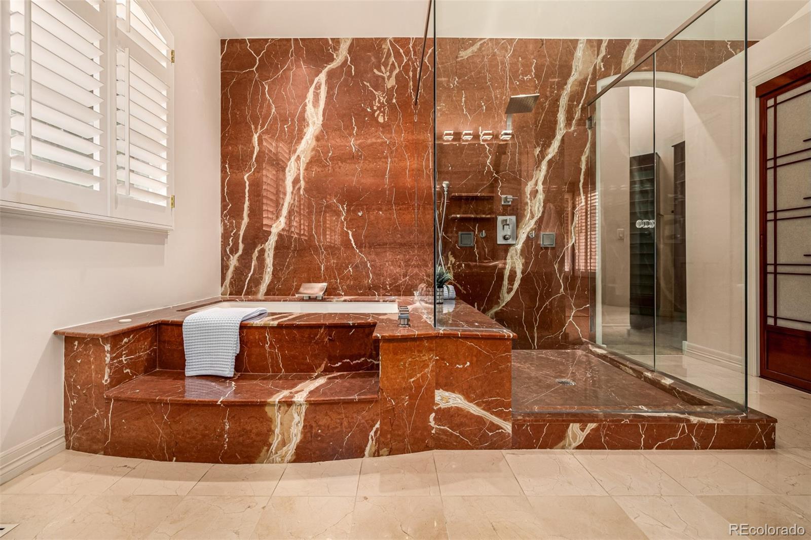 Welcome to an exquisite residence in the highly coveted Hyde Park at Polo Club, an exclusive gated community just moments from Cherry Creek’s premier dining and shopping. This elegant ranch-style home offers nearly 6,900 square feet of refined living space, thoughtfully designed for both comfort and sophistication, with a new roof completed in 2024. From the moment you step inside, soaring ceilings, abundant natural light, and carefully curated finishes set the tone. The gourmet kitchen is a chefs dream with its own wine cooler, professional-grade appliances, including Wolf double oven/microwave, an amazing GE Profile 5-burner gas cooktop. Stunning granite countertops, a spacious walk-in pantry, and an inviting outdoor breakfast nook through the double doors off of the kitchen, making it a true culinary centerpiece. The luxurious main-floor primary suite is a private retreat with dual walk-in closets, a spa-inspired bath with heated floors, Rojo Alicante Marble, and serene garden views. Designed for entertaining, the lower level is complete with a theater-style great room, a striking bar with wine display, ice maker, dishwasher, two additional wine refrigerators and, a remarkable gym with all of the equipment included and wellness area featuring a sauna and steam room. The lower level not only has additional bedrooms, but 3 large storage closets in addition to an amazing cedar closet. Outside there are beautifully landscaped grounds, an open patio with custom retractable awnings, and multiple garden spaces create an oasis for relaxation or gatherings. With new mechanicals, a secure gated entrance, and concierge service, this property combines timeless elegance with modern convenience. A rare opportunity to experience luxury living in one of Denver’s most prestigious neighborhoods.